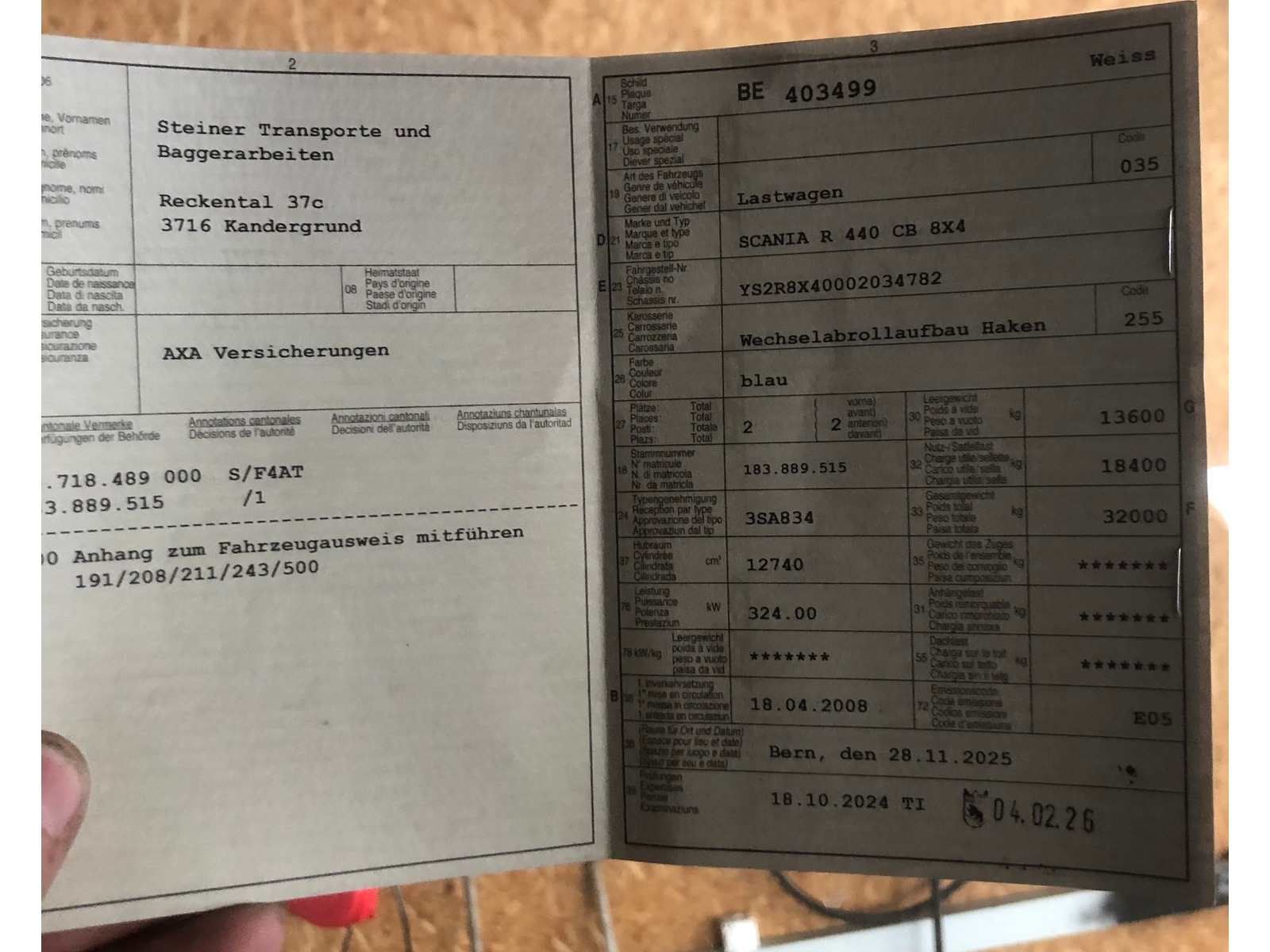 | Zubehör | Zentralverriegelung, El. Aussenspiegel, El. Fensterheber, Retarder/Intarder, Dieselpartikelfilter, Hydraulik (Nebenantrieb), Differentialsperre, Traktionskontrolle, ABS, Nebellampen, Fahrtenschreiber, Radio / CD, Klima, Multifunktionsanzeige, Tempomat |