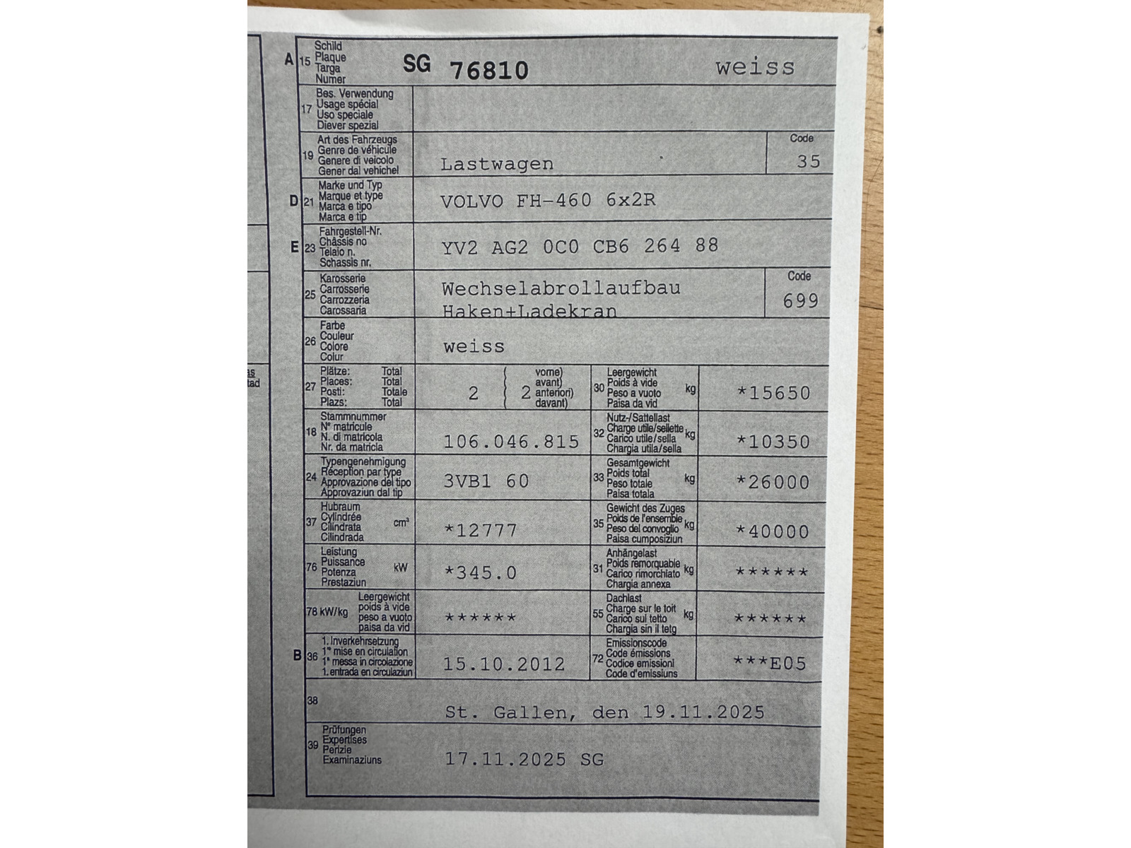 | Zubehör | Retarder/Intarder, Kran, Hydraulik (Nebenantrieb), Anhängerkupplung, Differentialsperre, Traktionskontrolle, ABS, Nebellampen, Fahrtenschreiber, Radio / CD, Klima, Tempomat, Zentralverriegelung, El. Aussenspiegel, El. Fensterheber, Ohne Mulde oder Container |