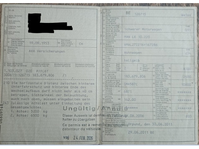 | Bemerkung | Unser Wohnkoffer bekommt ein neues Chassis. Dazu gibt es viele Ersatzteile, Filter und einen Laptop mit dem Mantis Programm von MAN.