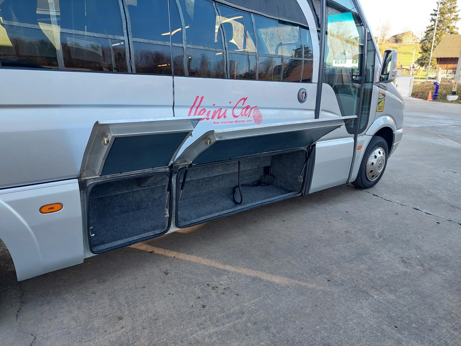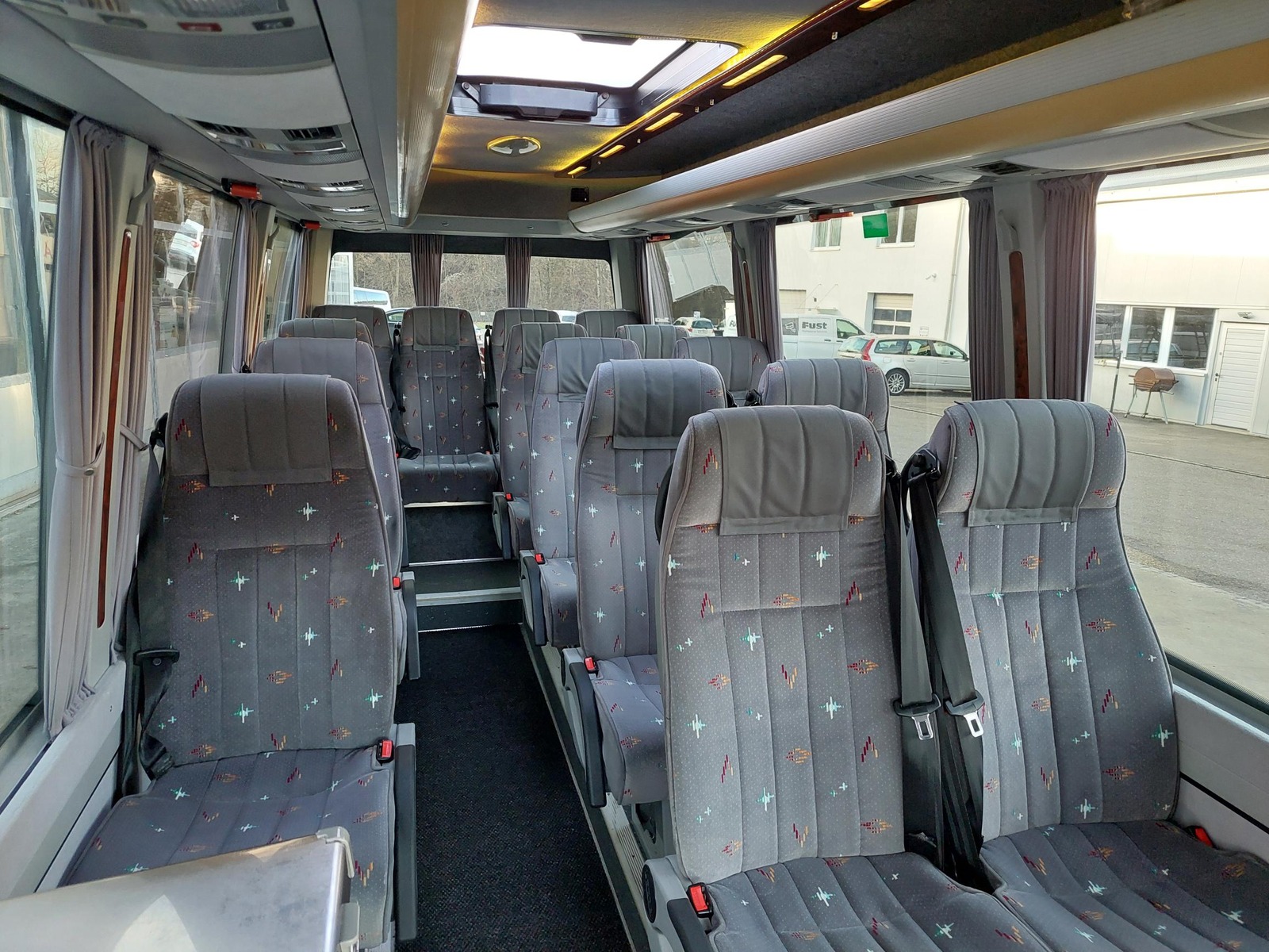 | Bemerkung | Grosser Kofferraum im Heck und seitlich, elektrische Schwingtüre, Panorama-Doppelverglasung dunkel, Sitze mit 3-Punktgurten, Rückenlehne verstellbar, 220V mit grossem Kühlschrank, Standheizung, Klima, Kilometer Original, neuer EU-Tachograf (1.2025), Sommer- und Winterreifen, Anhängerkupplung 2000kg |