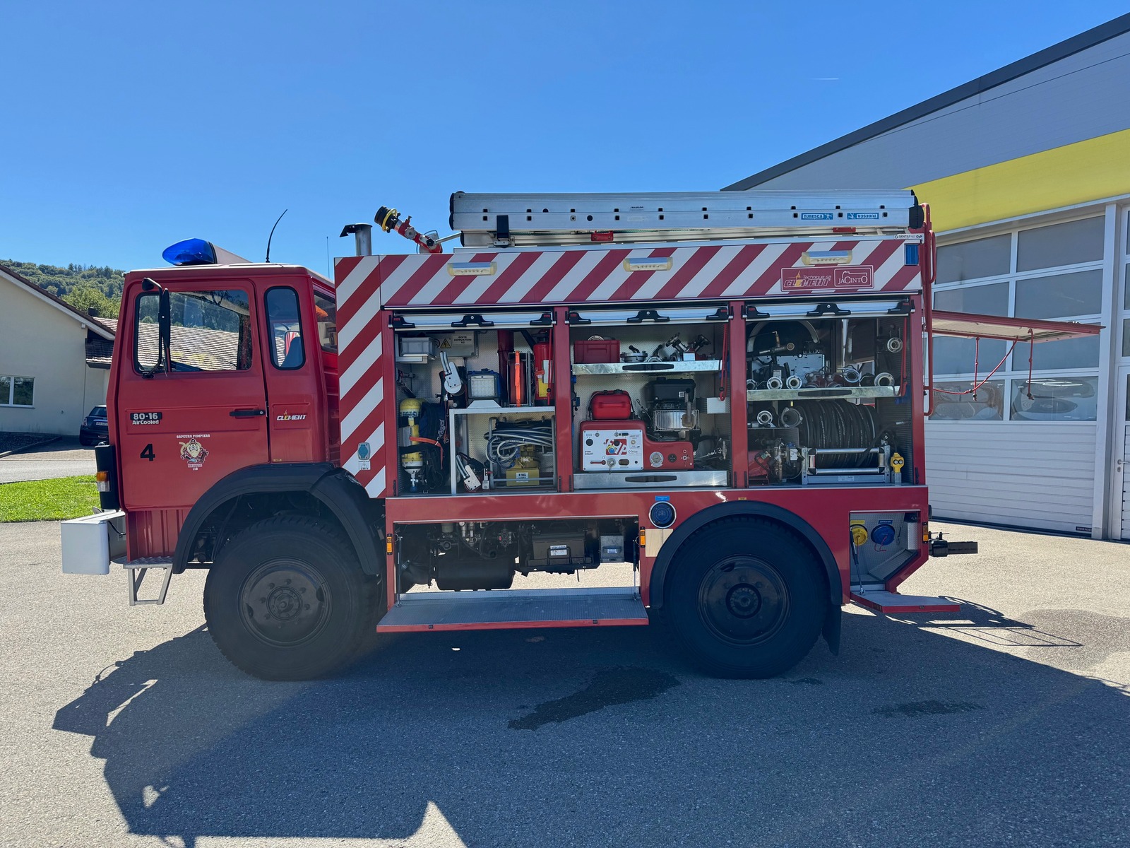 Das Fahrzeug basiert auf einem soliden Chassis von 03/1985 mit lediglich 24’xxx km Laufleistung. Der Aufbau, inklusive Feuerkreiselpumpe, wurde 2013 neu gefertigt. Die Kreiselpumpe weist nur 34 Betriebsstunden auf.