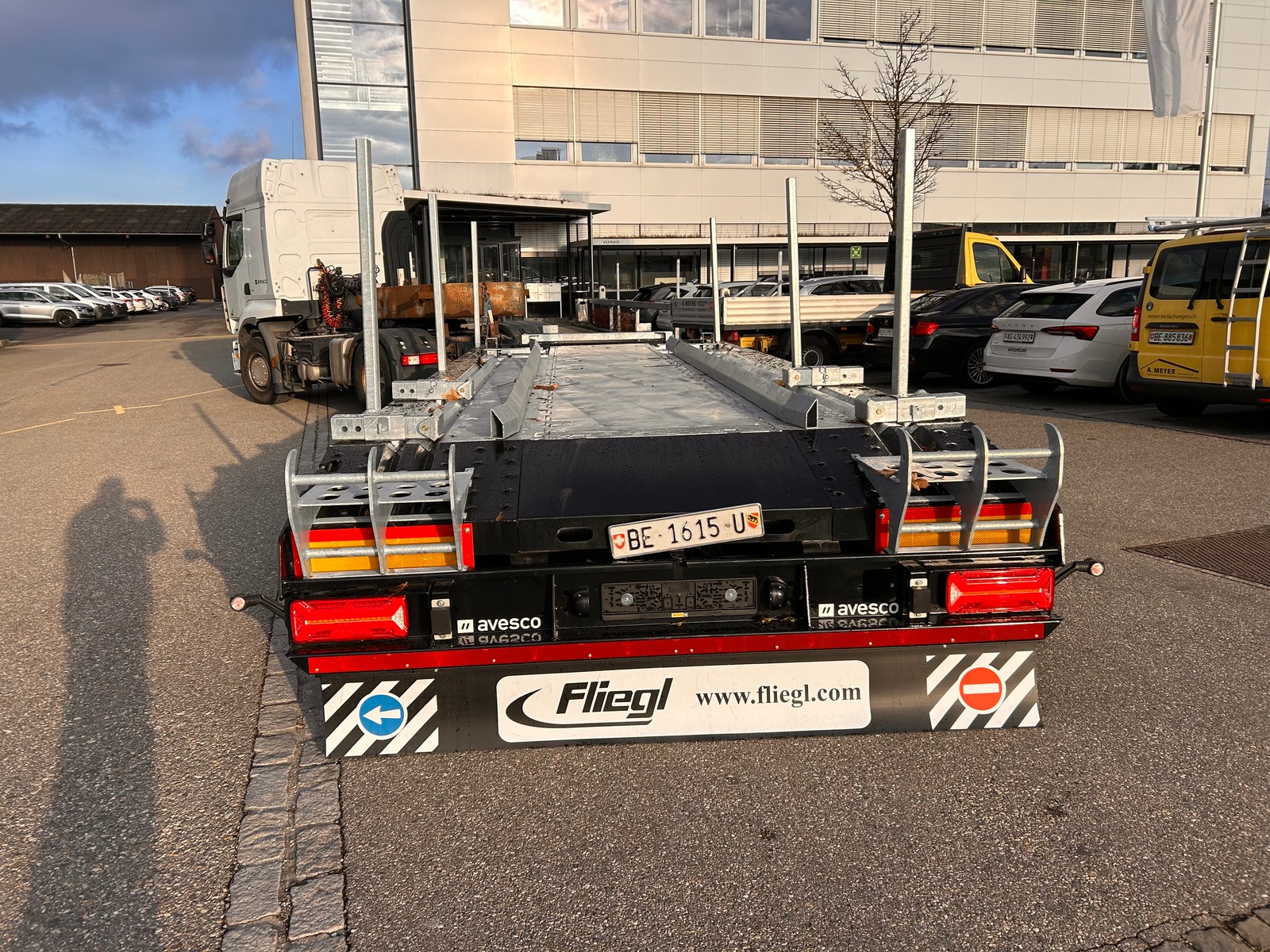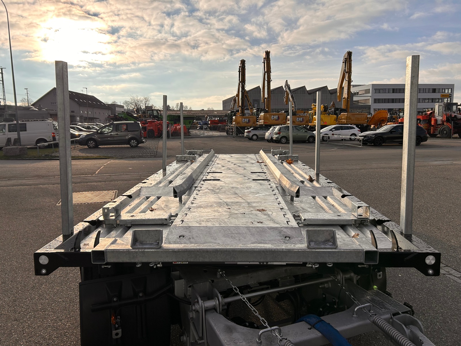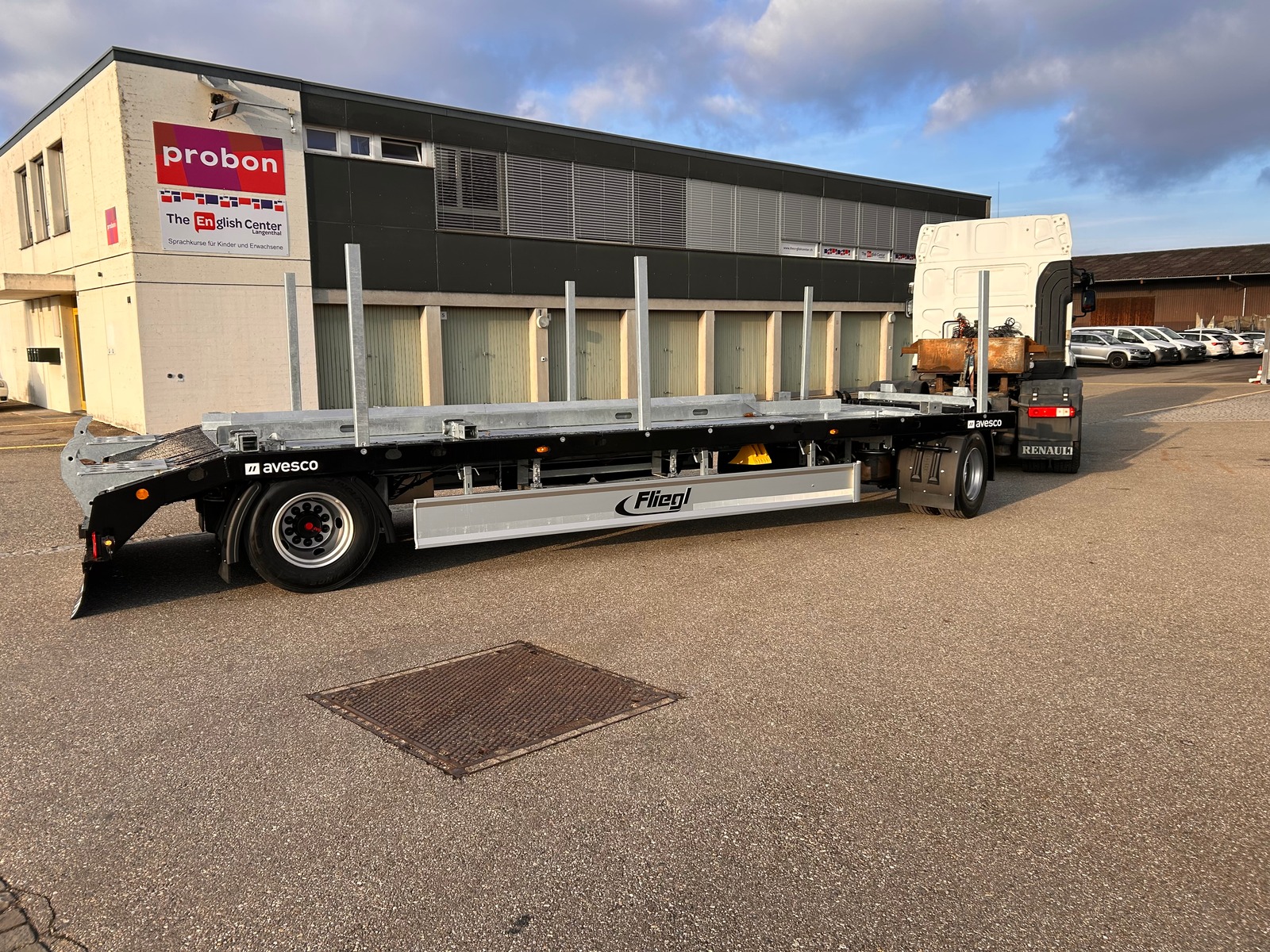 Bemerkung Stahlboden für den Transport von Abroll- und Absetzcontainern, Sachentransporte aller Art, Maschinen, Alurampen mit Staufach, ausreichend Zurrpunkte, absenkbare Zuggabel, Heckanschrägung etc.