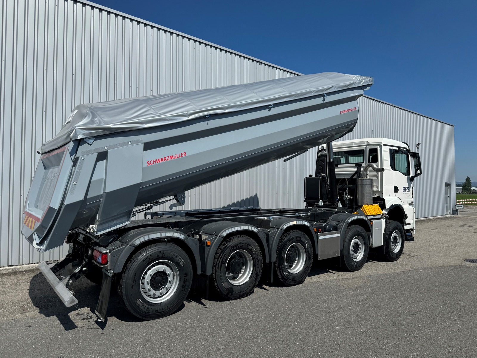 | Zubehör | Retarder/Intarder, Dieselpartikelfilter, Hydraulik (Nebenantrieb), Differentialsperre, Traktionskontrolle, ABS, Nebellampen, Fahrtenschreiber, Radio / CD, Navigationssystem, Klima, Multifunktionsanzeige, Tempomat, Zentralverriegelung, El. Aussenspiegel, El. Fensterheber, Rückfahrkamera, Navigationssystem, RIO-Box, Freisprecheinrichtung, Ablagekasten, Multifunktionslenkrad, Bauaufstieg, Sitzheizung Fahrersitz, Fahrer-Airbag, Feuerlöscher, 2 LED Scheinwerfer bei 1. VA, 2 an Heck |