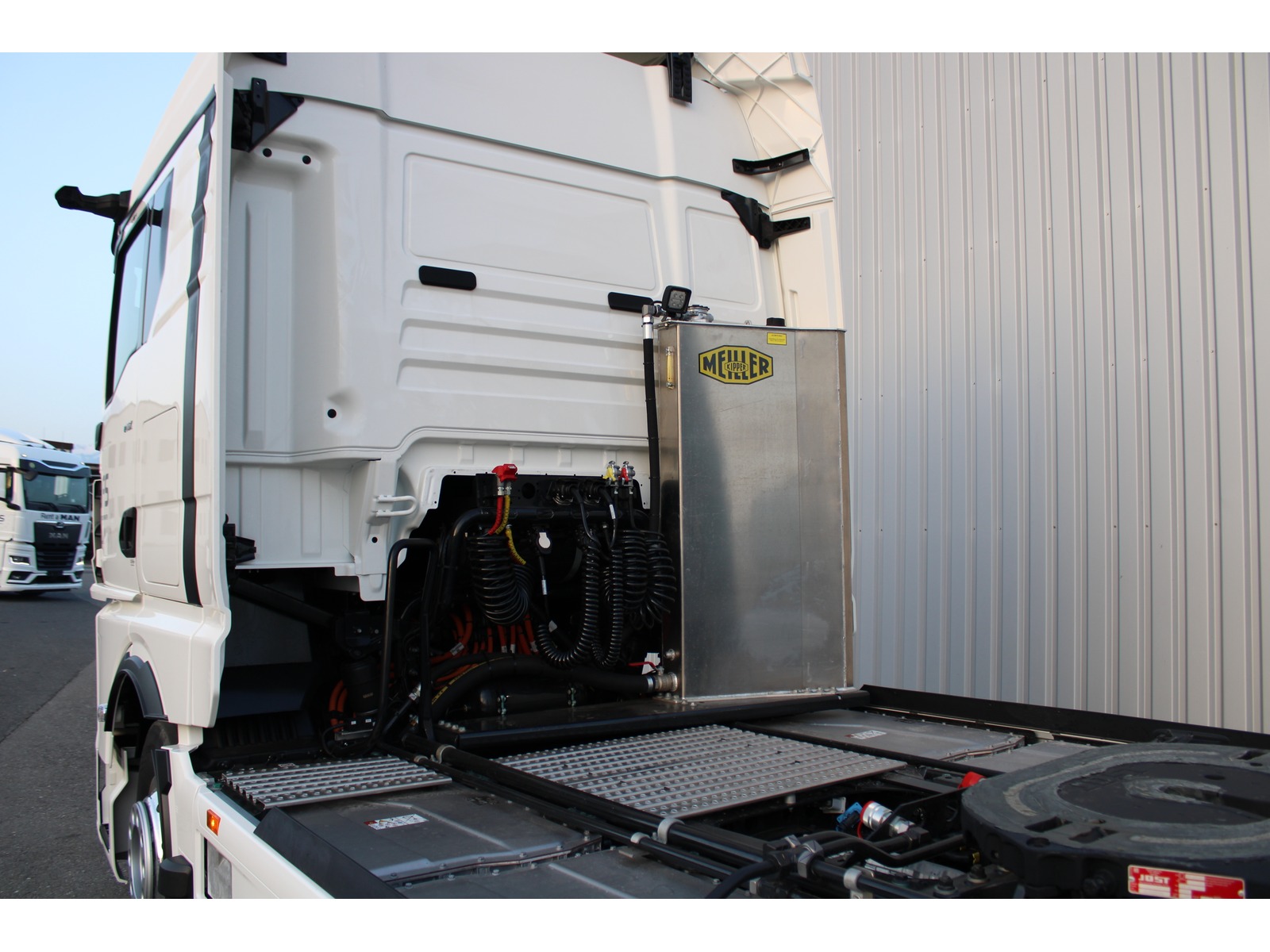 | Zubehör | Retarder/Intarder, Hydraulik (Nebenantrieb), Spoiler, Differentialsperre, Traktionskontrolle, ABS, Nebellampen, Fahrtenschreiber, Radio / CD, Navigationssystem, Standheizung, Klima, Multifunktionsanzeige, Tempomat, Zentralverriegelung, El. Aussenspiegel, El. Fensterheber |