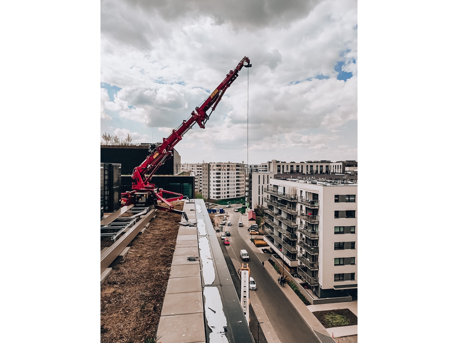 Auslegerlänge: 4.3 m / Ausladung: 13.7 m und ohne Optionen 9.25 m