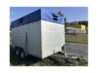 Fahrwerk Metall Feuerverzinkt, mit Auflaufbremse und Rückfahrautomatik. 2 Achsen mit 14? Bereifung. Tiefelader mit Radkasten 50% Innen, 50% Aussen. Aufbau in Aluminium Hohlprofilen, Dackkonstruktion Metall Feuerverzinkt. Plane Blau mit 3 Lüftungen (1x Vorne, 2x Seitlich). Boden Siebdruckplatte mit Aluriffelblech belegt. Heck- und Seitenrampe (ganze Innenhöhe), federentlastet. Seitengeländer auf Heckrampe. Anbindelatte auf der rechten Seite. 3 Binderinge links. Beleuchtung nach Vorschrift.