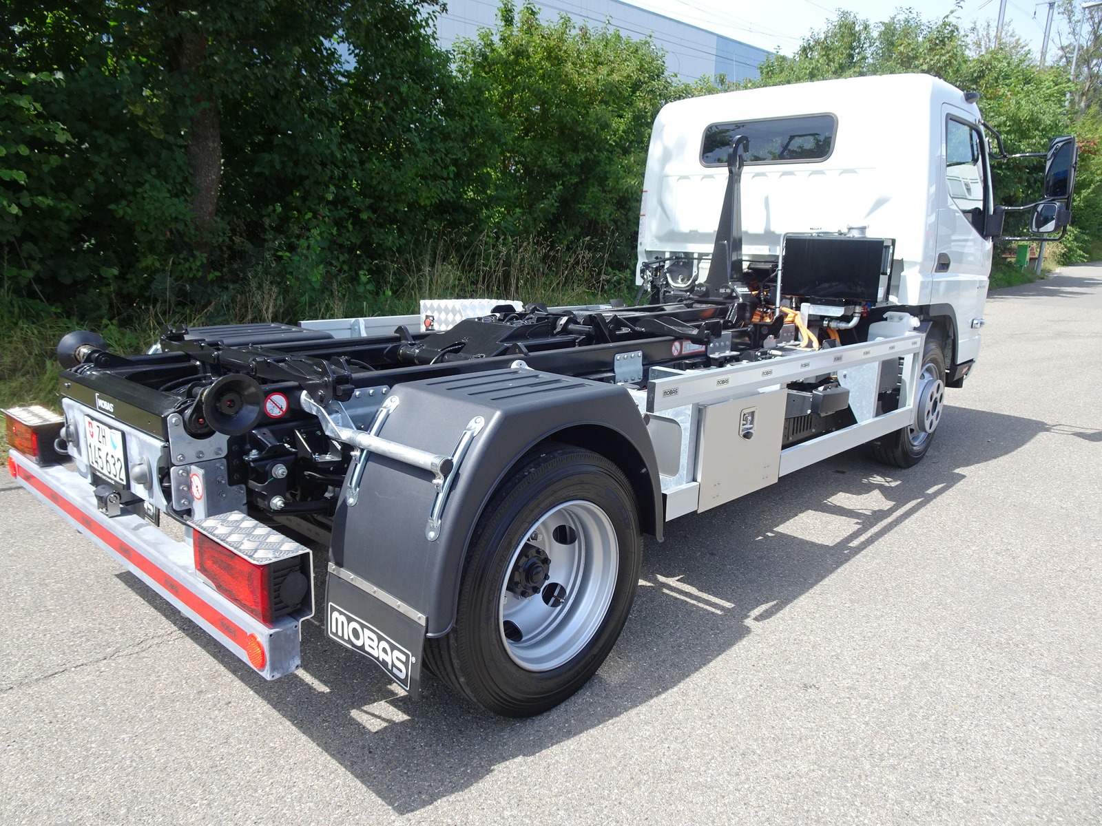 Mobas Hakengerät mit einer Hebe-/Kippkapazität von 5000kg und einem Kippwinkel von 46Grad und Fahrerhausbedienung.