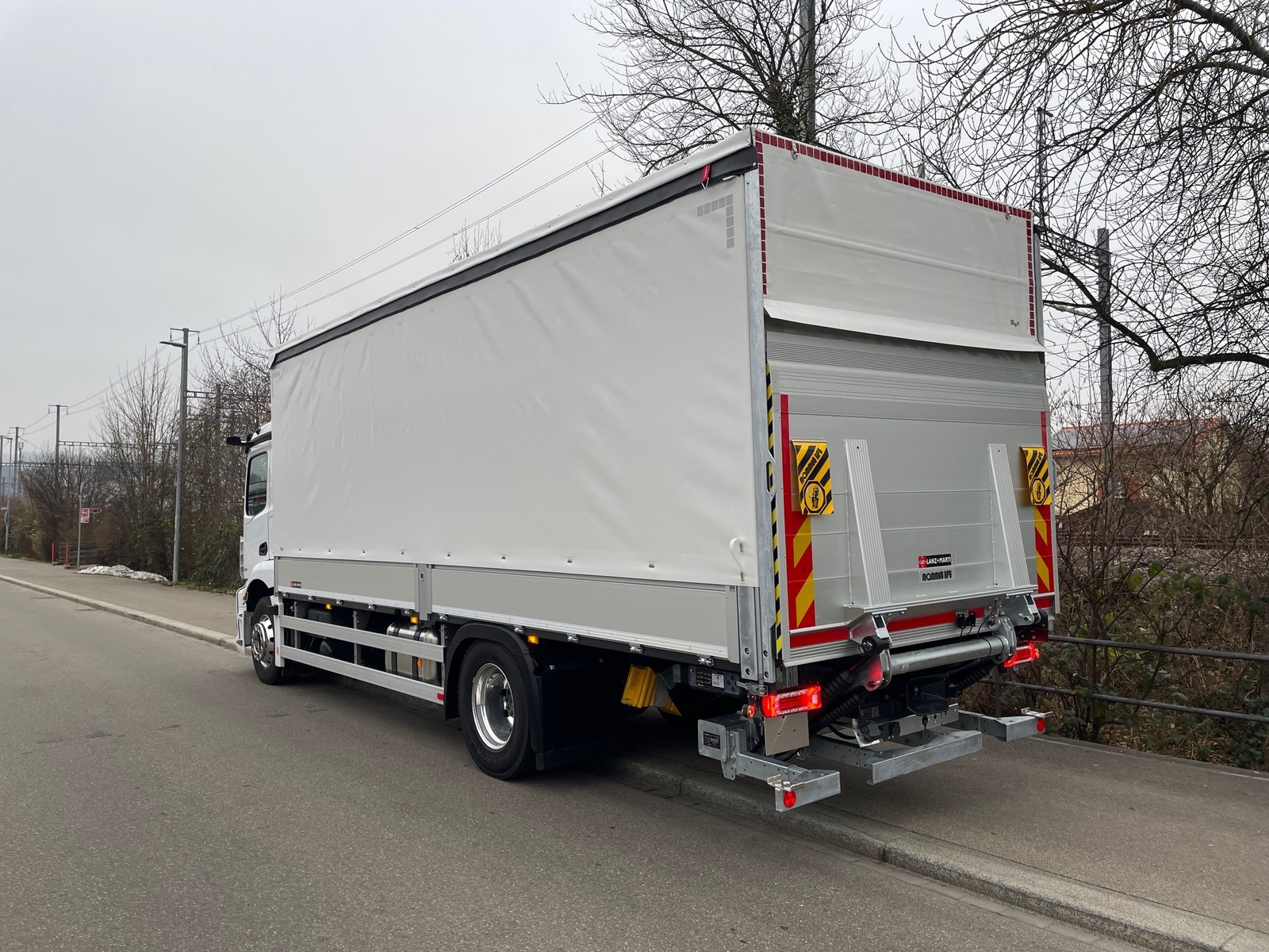 Ladebrücke mit SideCurtain-Aufbau, Seitenladen und Hebebühne