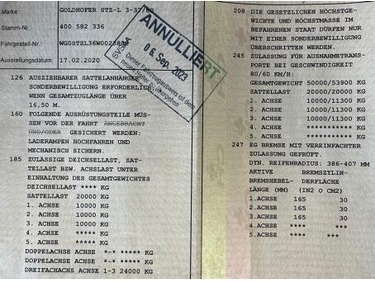 | Bemerkung | Ladefläche im Tiefbett von 7600mm auf 12200mm ausziehbar.