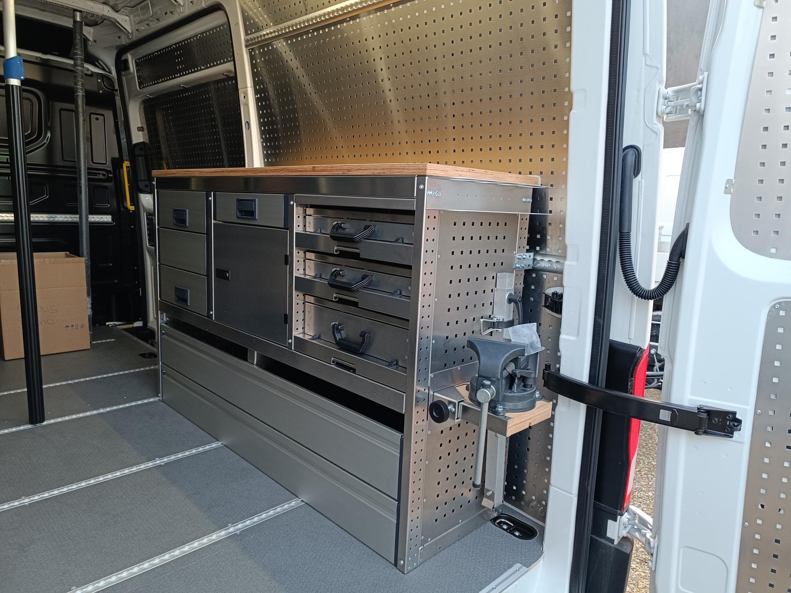 | Zubehör | Dieselpartikelfilter, Anhängerkupplung, Differentialsperre, Traktionskontrolle, ABS, Nebellampen, Radio / CD, Navigationssystem, Klima, Multifunktionsanzeige, Tempomat, Zentralverriegelung, El. Aussenspiegel, El. Fensterheber, Ganzjahresreifen 235/65R16C, Klimaanlage Climatic, Ablageschale am Dachhimmel, Trittstufe hinten über halbe breite, Hochdach in Wagenfarbe, Schiebetür rechts, ABH-Steuergerät, Fahrer-Schwingsitz, Beifahrersitzbank mit Staufach, manuelle Standregeneration des Partikelfilters, ACC-Stop&Co, Rückfahrkamera und Parksensoren |