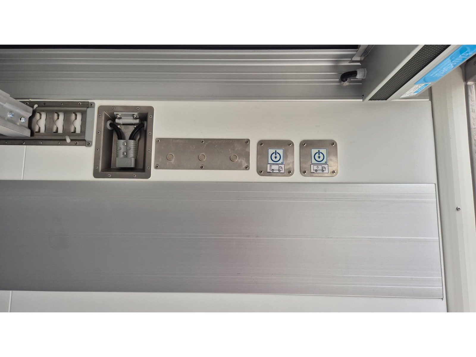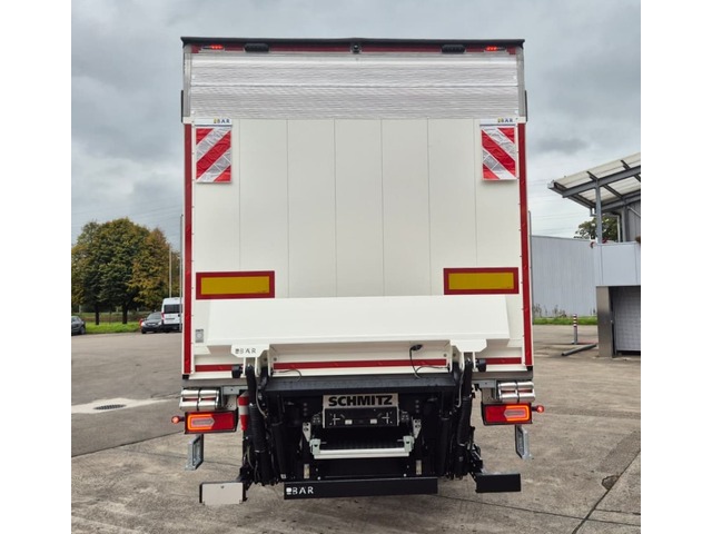 Zubehör | 1. Achse mit Achslift, 2. Achse mit Tridec-Stangenlenkung, Schmitz ROTOS Scheibenbremsachsen, Elektronische Luftfederung, zusätzliche Luftfederbedienung hinten im Aufbau, LED-Beleuchtungsanlage, LED-Umfeldbeleuchtung, LED-Rückfahrscheinwerfer, LED-Arbeitsscheinwerfer hinten oben am Portal, SL2 Sicherheitsleuchten hinten oben am Portal mit Stopp- Blink- und Lichtfunktion, LED-Seitenmarkierleuchten, Rückfahrkamera oben am Portalrahmen, zusätzliche Kotflügel zwischen den Achsen, Zentralschmieranlage für die Lenkungsanlage und die Hebebühne, Dynamic Ramp Protection, TrailerConnect Telematic, Kuststoffwerkzeugkasten, uvm. |