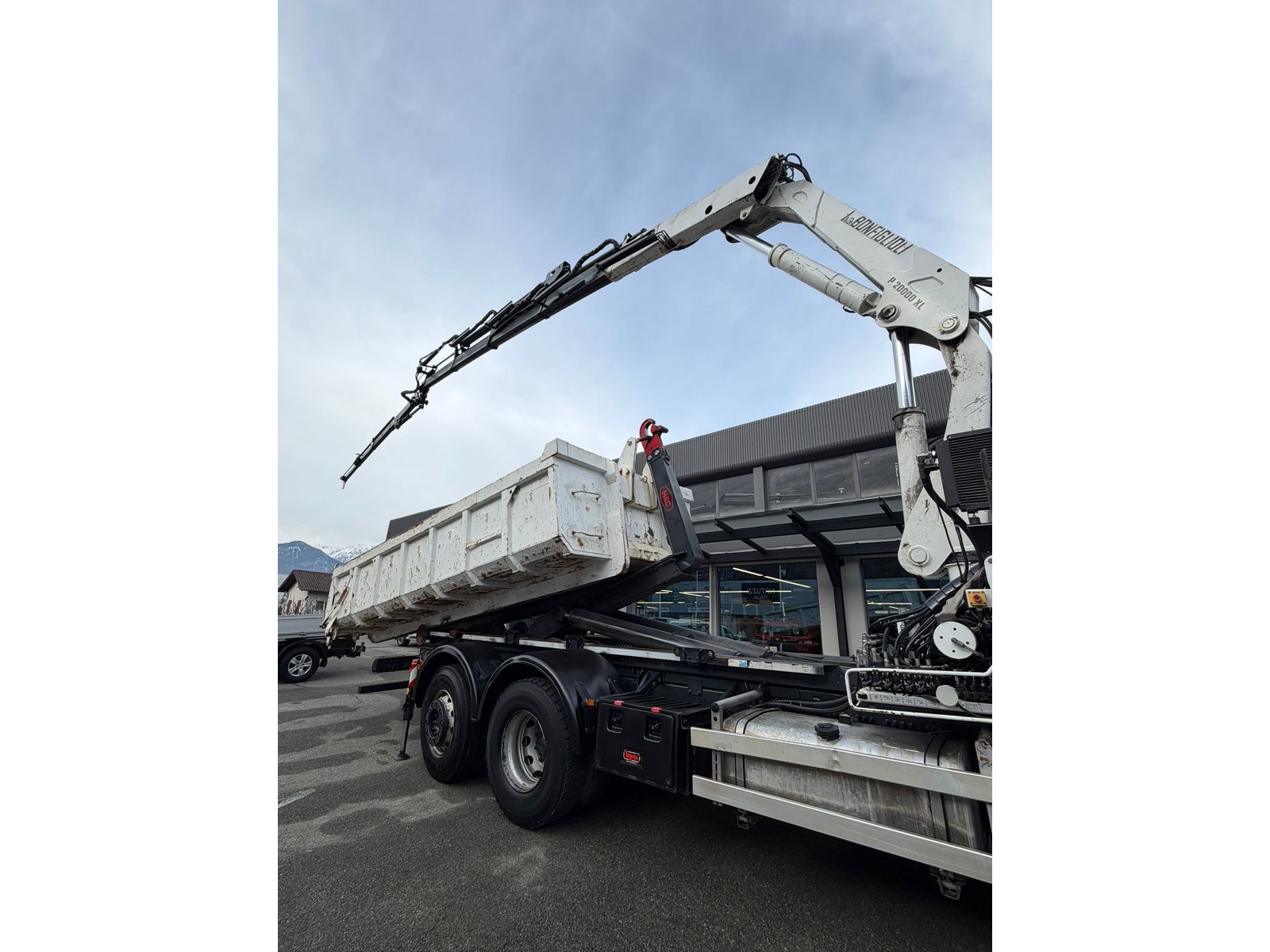 Camion 26 tonnes équipé d’un système multibenne / scarrable MEC (2018) et d’une grue Bonfiglioli P 20000 XL (2018). Moteur puissant 353 kW, 2 places, en très bon état de fonctionnement. Kilométrage env. 195’000 km. Véhicule idéal pour chantier, transport de bennes et levage polyvalent.