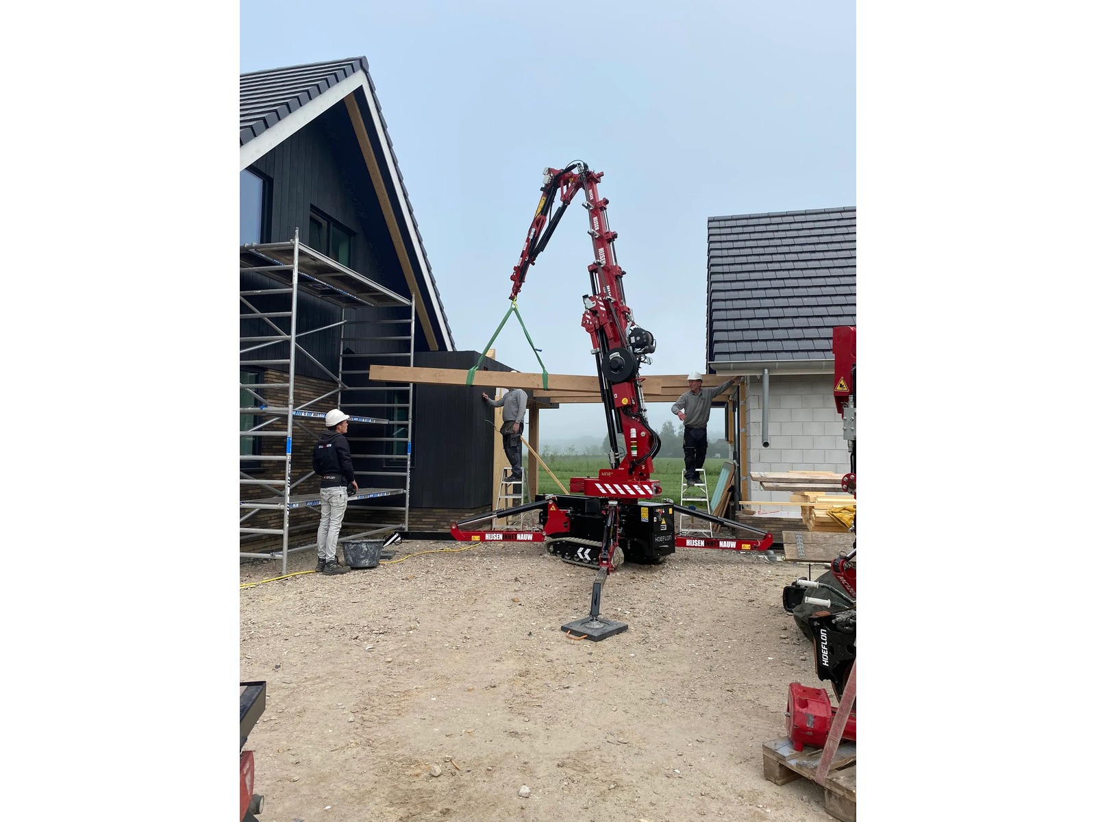 Der Minikran C6e Gen 2 ist der Allrounder unter den Kompaktkranen von Hoeflon. Mit einer maximalen Tragfähigkeit von 3000 kg und einer Hubhöhe von bis zu 16 Metern bietet dieser Kran beeindruckende Leistung. Der 4,3 Meter lange Fly Jib erhöht die Flexibilität und Reichweite bei einer erweiterten Kapazität von 1050 kg. Dank der automatisch ausklappbaren Stempelstützen und der automatischen Nivellierungsfunktion steht der Kran immer stabil. Was diesen Kran einzigartig macht, ist, dass er mehr heben kann als sein eigenes Gewicht.