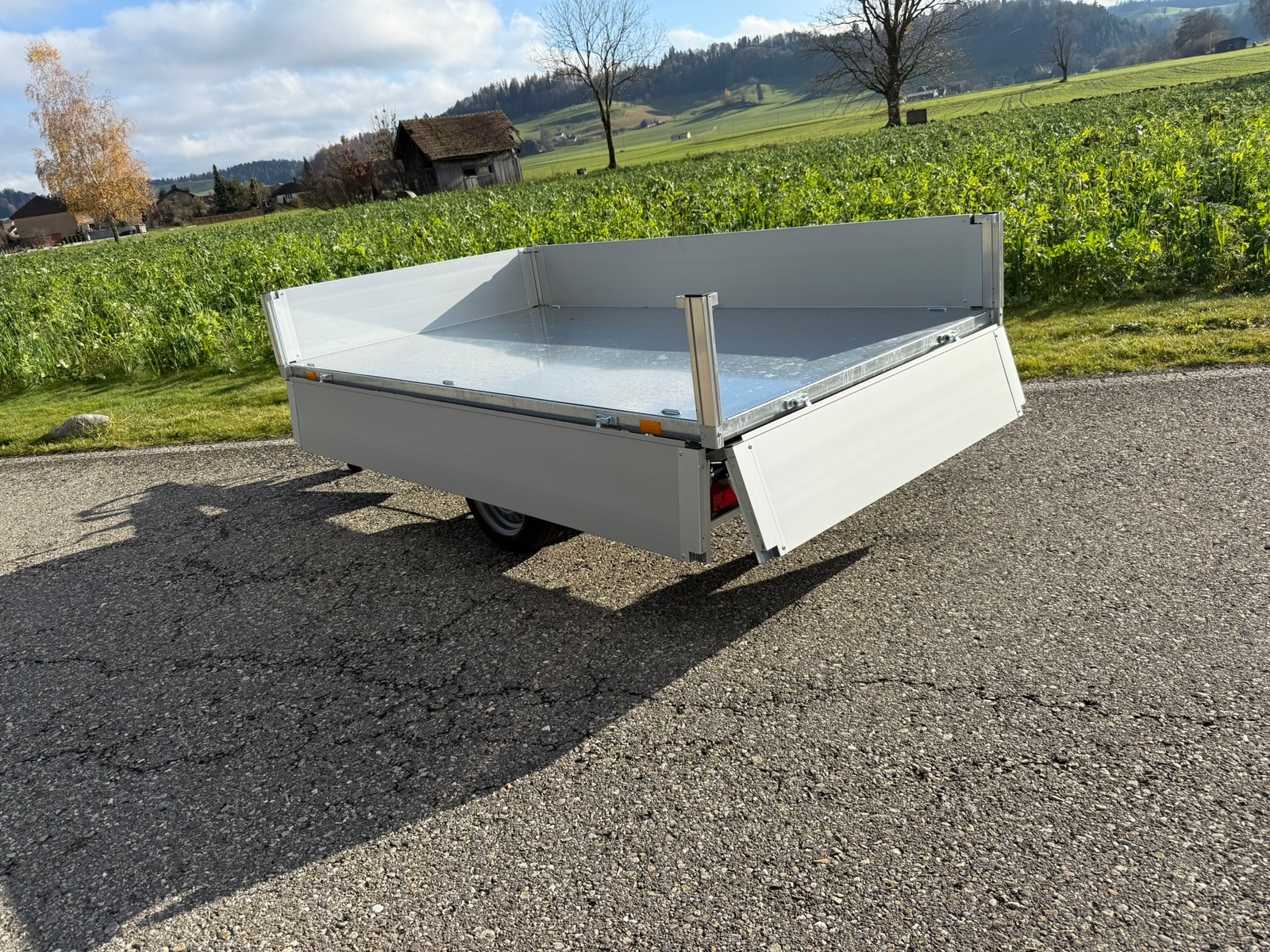 | Bemerkung | Rückwärtskipper, Brücke offen, Hochlader, Alubordwände mit Eckrungen komplett demontierbar, 6 Binderinge, Stahlboden |