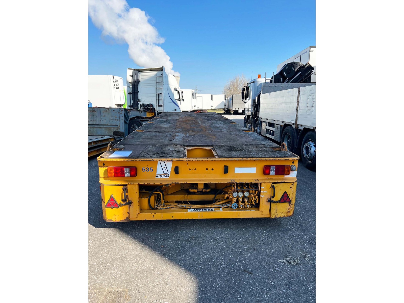 Zubehör | 5-Achser, 4-Achsen gelenkt, hydraulisch heb- und senkbar. Gesamtgewicht bis 60 t möglich. Leergewicht 11'300 kg. Alle Angaben ohne Gewähr. Jede Gewährleistung, soweit nach Gesetz möglich, wird wegbedungen, insbesondere sind Wandelung und Minderung ausgeschlossen. Fahrzeugbeschriftung kann retuschiert sein. |