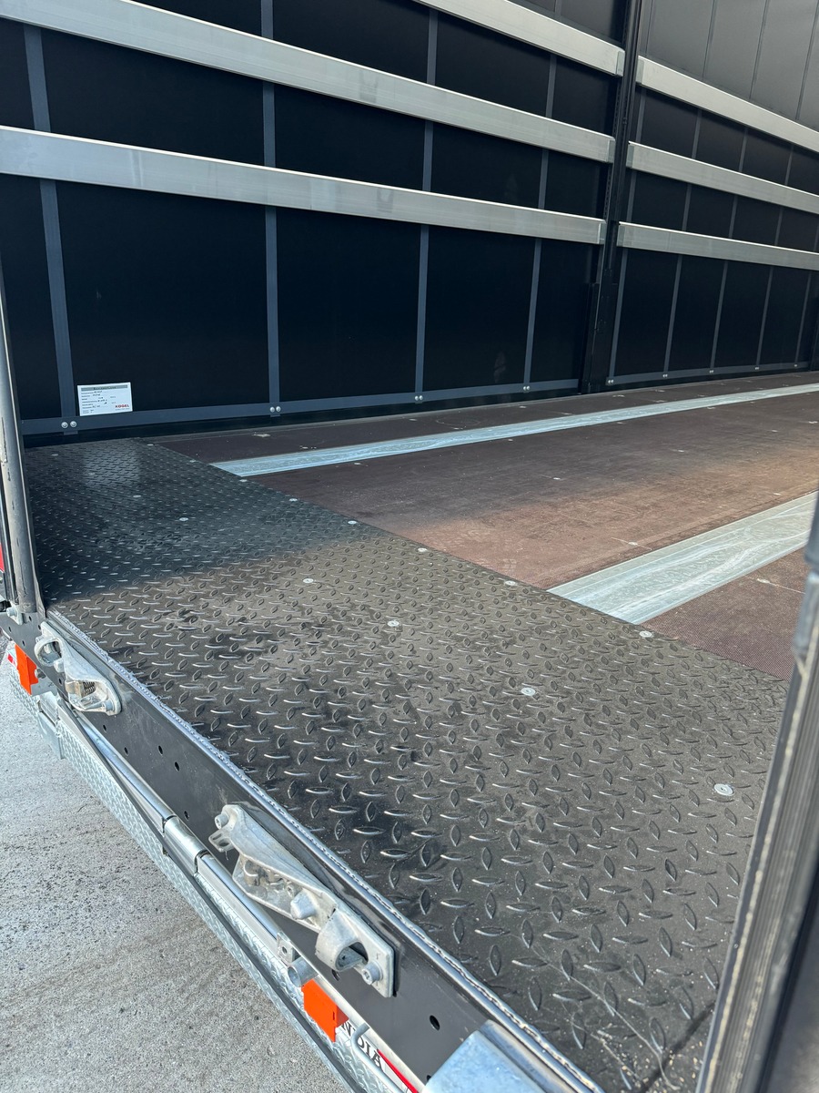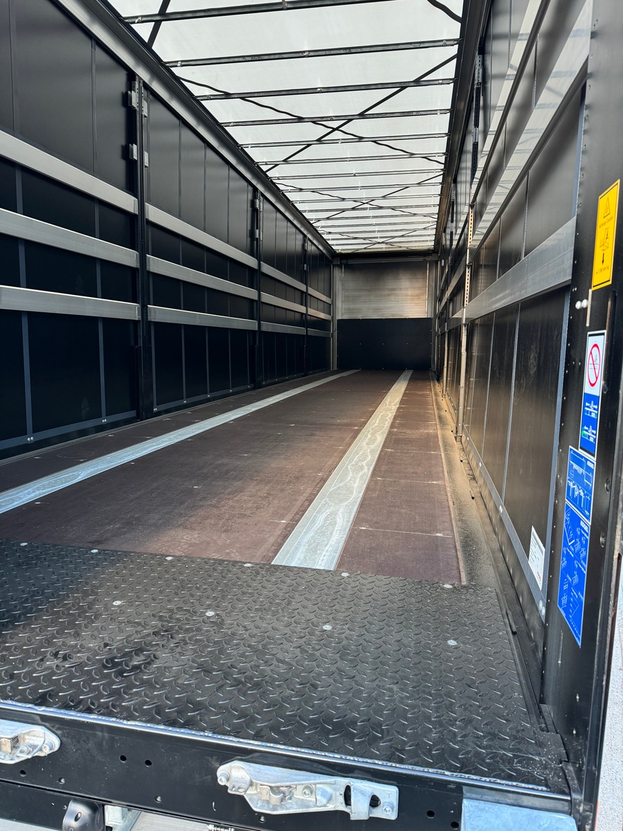 Alcoa Dura Bright Felgen, Achsliftmechanik auf Achse 1, BPW-Nachlauflenkachse, Palettenstaukasten für 24 Euro Paletten, Lattenlagerung für 32 Einstecklatten links und rechts, Schiebeverdeck vorne und hinten verschiebbar, Mechanisch/hydraulische Hubeinrichtung, Eckrungen beidseitig um je 500mm zum Be- und Entladen mechanisch seitlich ausstellbar, komplette LED Beleuchtung, Duomatic und EG Anschlüsse, Feuerlöscherkasten mit 6 kg. Feuerlöscher an der Stirnwand, TOP AUSSTATTUNG...
