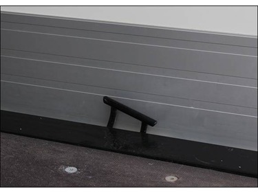 Querlaufendes Delta-Gummiprofil am Rahmenabschlussblech, zwischen den außen montierten Rammpuffern
