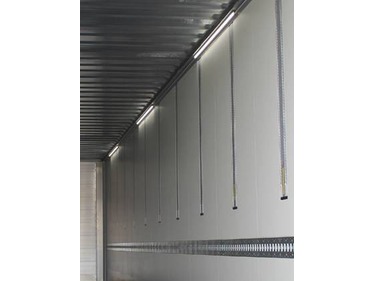 21 Paar Zurrbügel im Außenrahmen (nach EN 12640), zulässige Zugkraft 2.500 kg je Ring.