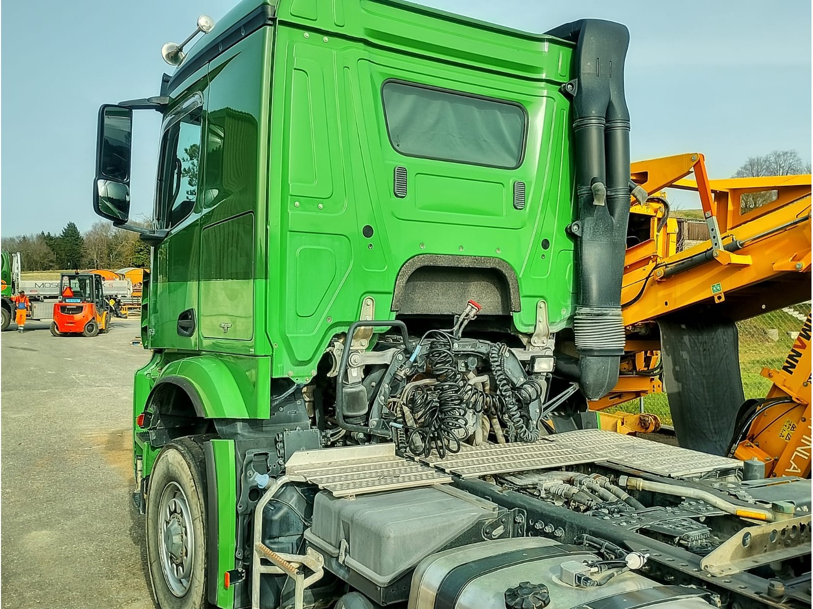 Differentialsperre, Fahrtenschreiber, Radio / CD, Standheizung, Klima, Multifunktionsanzeige, Tempomat, Zentralverriegelung, El. Fensterheber, Kipphydraulik