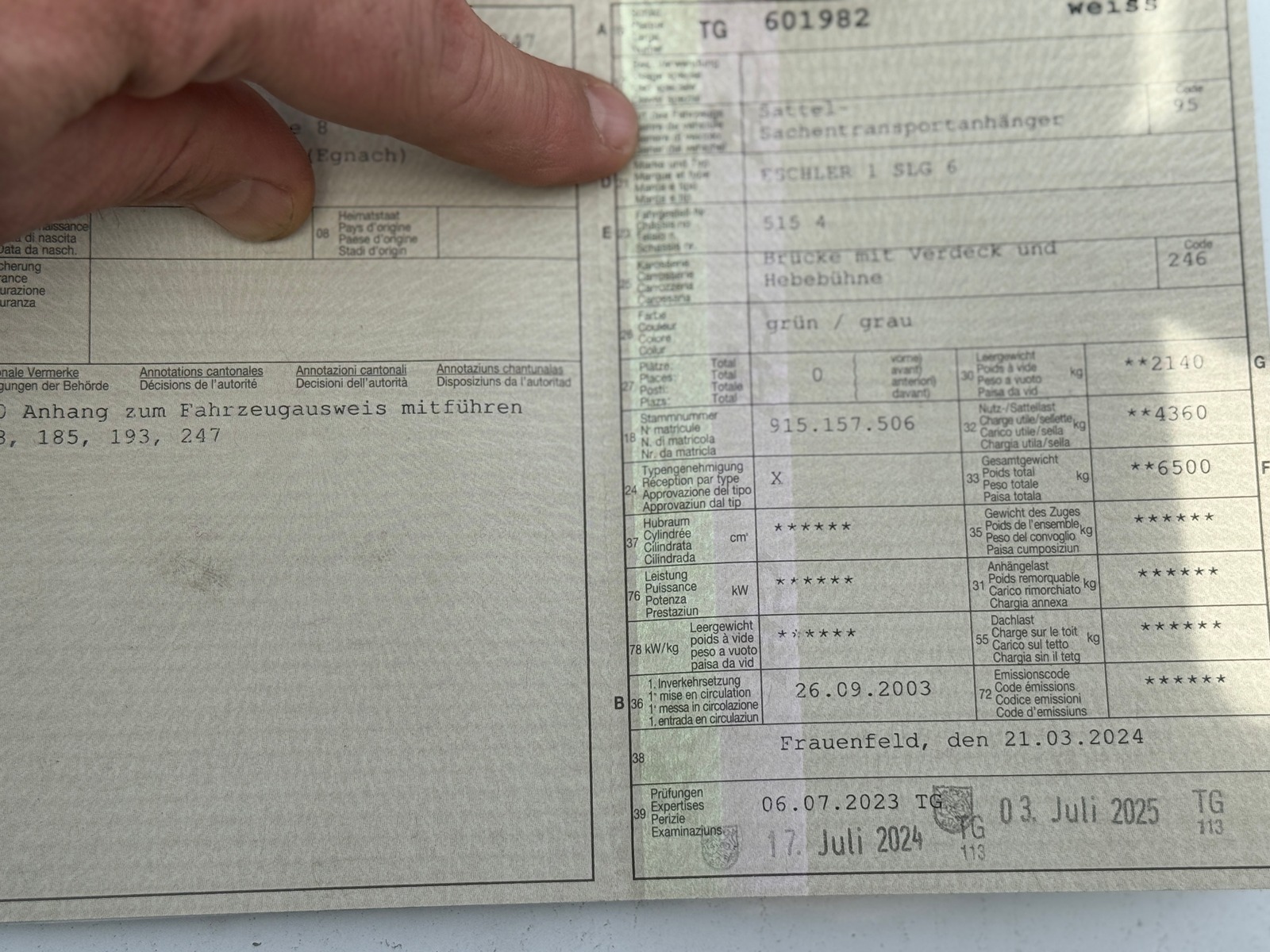 | Jahrgang Aufbau | Eschler Sattelauflieger |