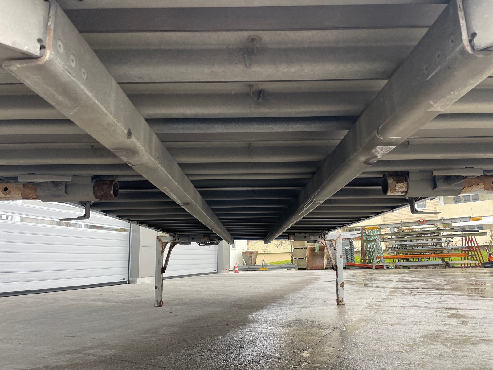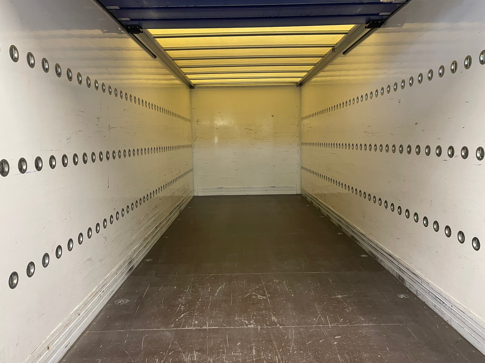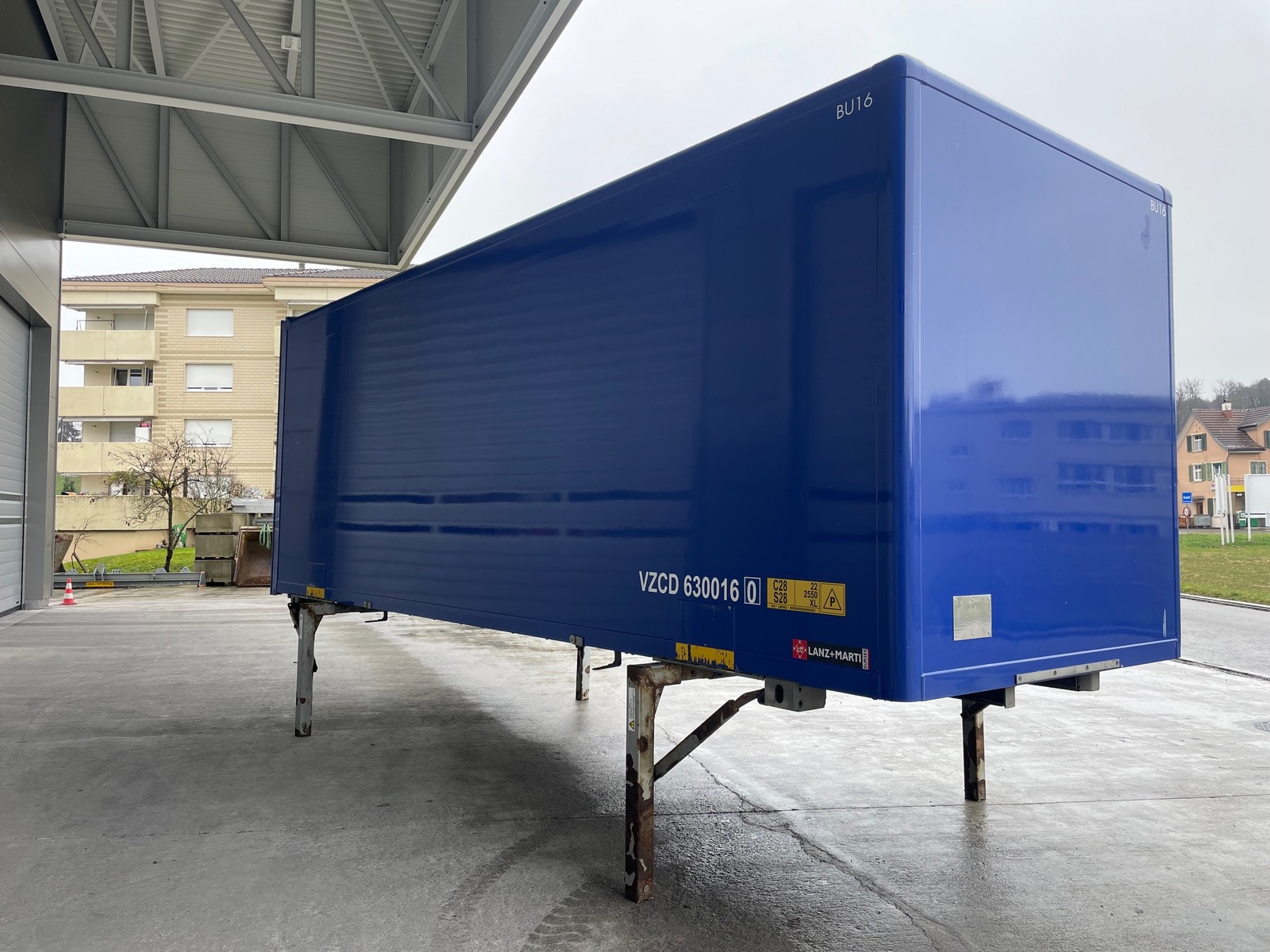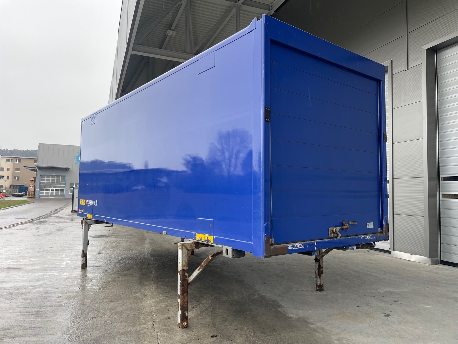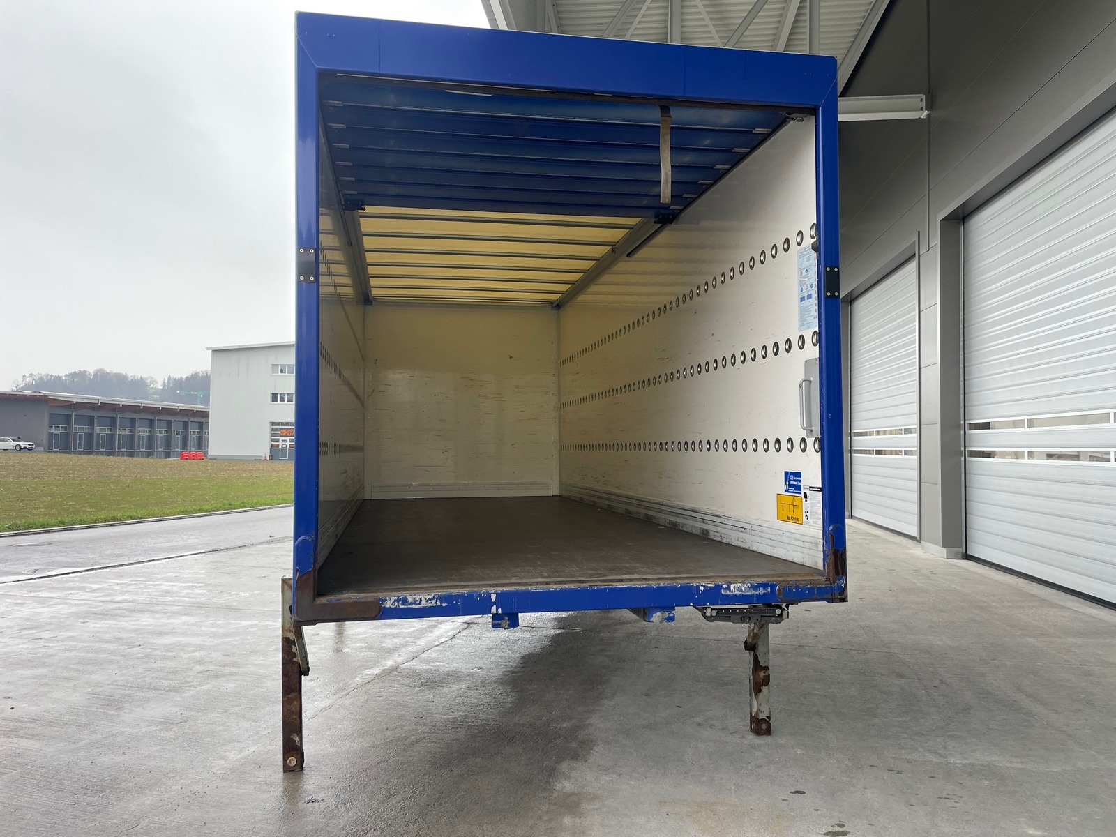 SPIER-Wechselkoffer (Plywood), Holzboden, Dach mit Lichtplatten, Heckrolltor (Lichtmass 2350x2270mm, BxH), höhenverstellbare Abstellstützen (970-1330mm), diverse Binderinge im Boden und an der Wand!