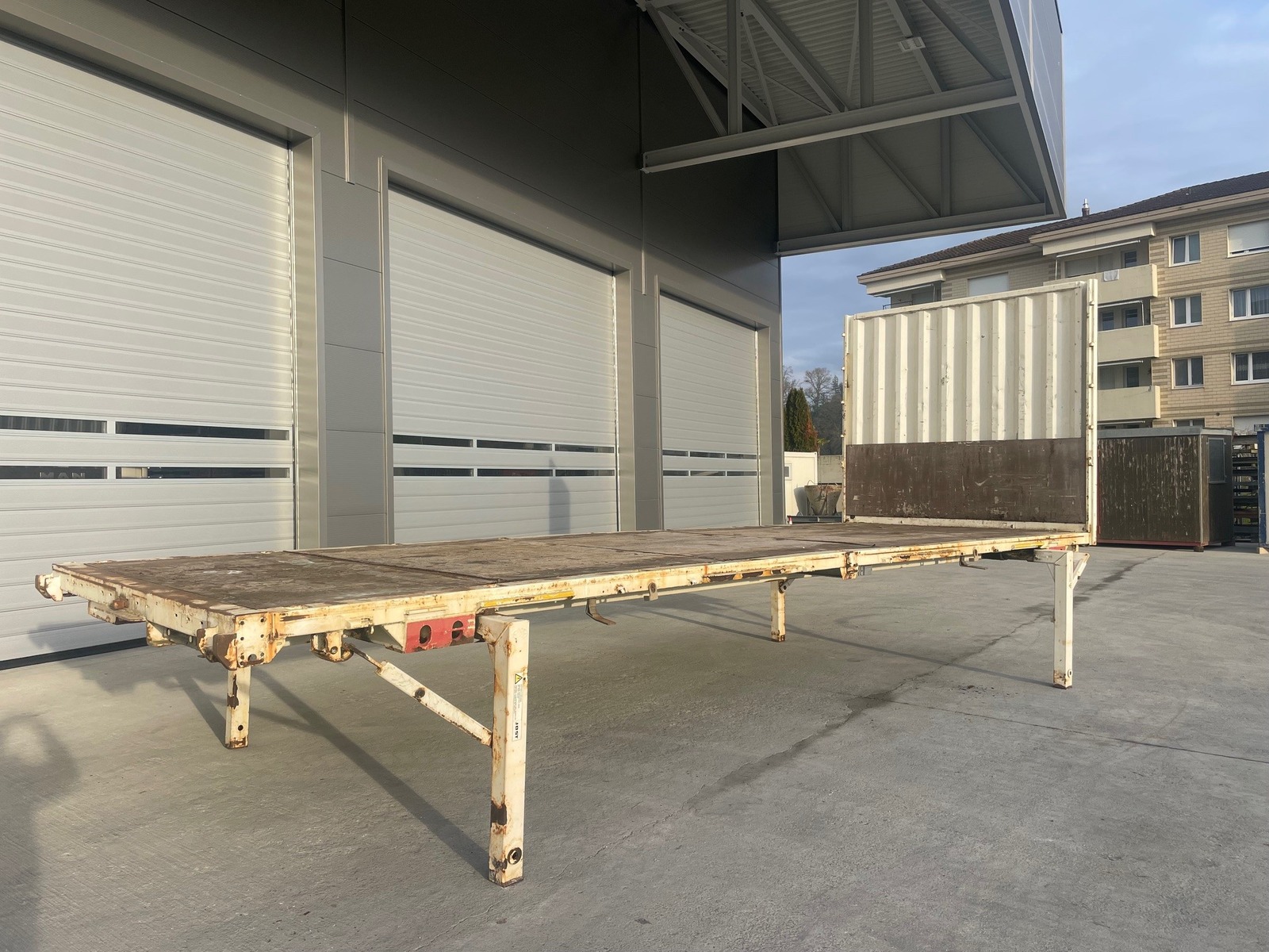 | Bemerkung | Wechselpritsche 745/255, gebrauchter Zustand, Stirnwand 2200mm, Holzboden, 18 Binderinge, Abstellstützen 980mm! |