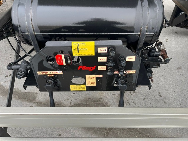 | Bemerkung | FLIEGL ZWP 180 Jumbo-Wechselfahrgestell, Gesamtgewicht 18000kg (momentan auf 12000kg abgelastet), Vollluftfederung (Hub 990-1350mm), Fahrhöhe 1020mm, Auszugdeichsel 600mm, Heckauszug 150mm, EU-Bremsanlage, ABS, 9000kg SAF-Achsen! |