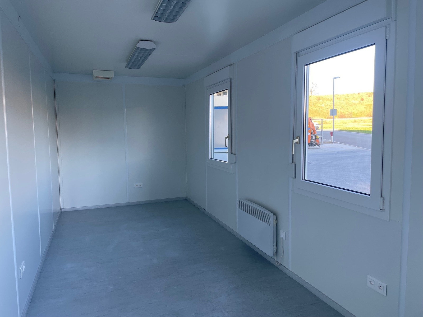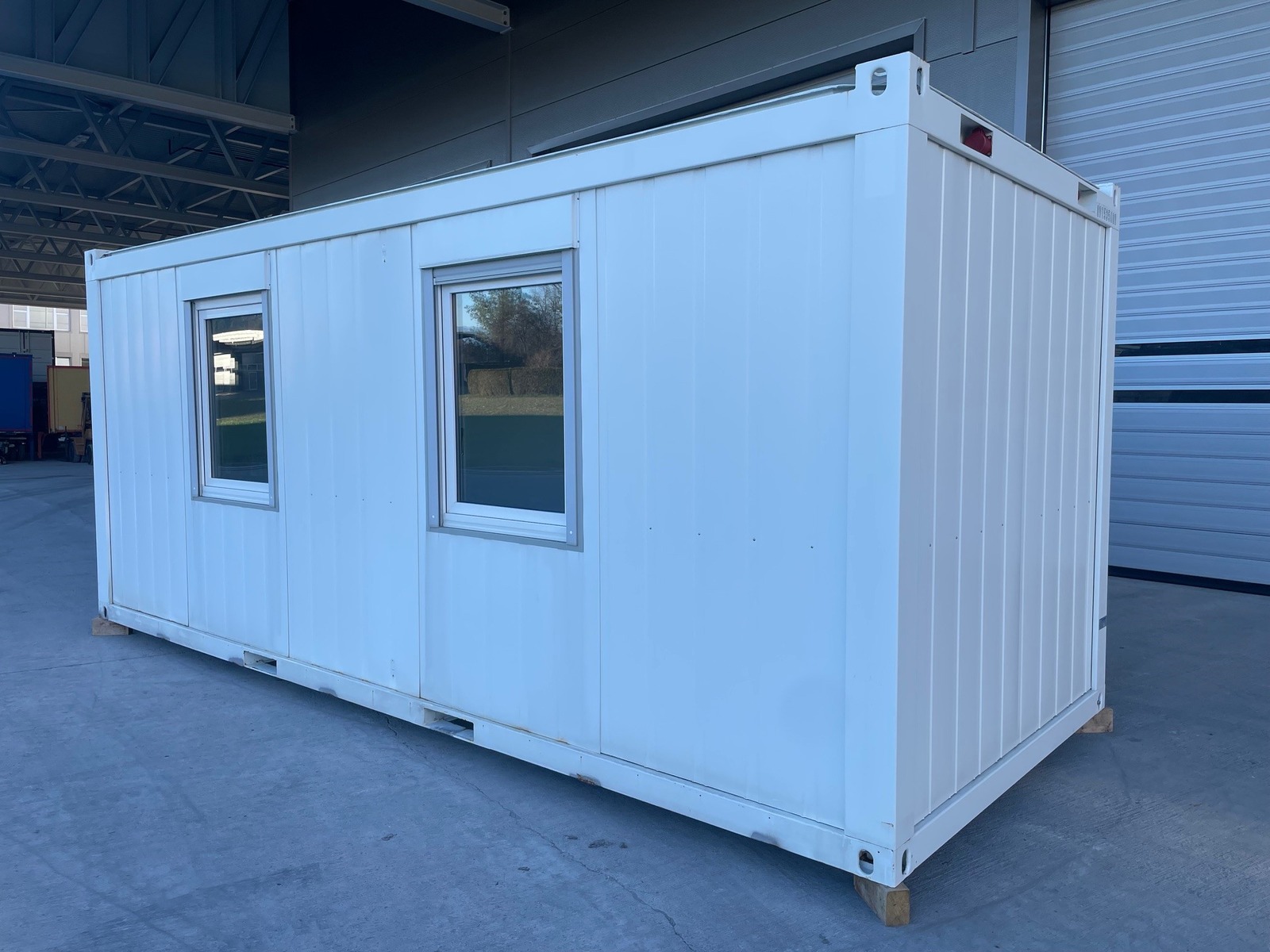 Bürocontainer in sehr gutem Zustand, Licht, Heizung, Elektroinstallationen,1 Türe, 2 Fenster mit Rollläden, Staplertaschen!