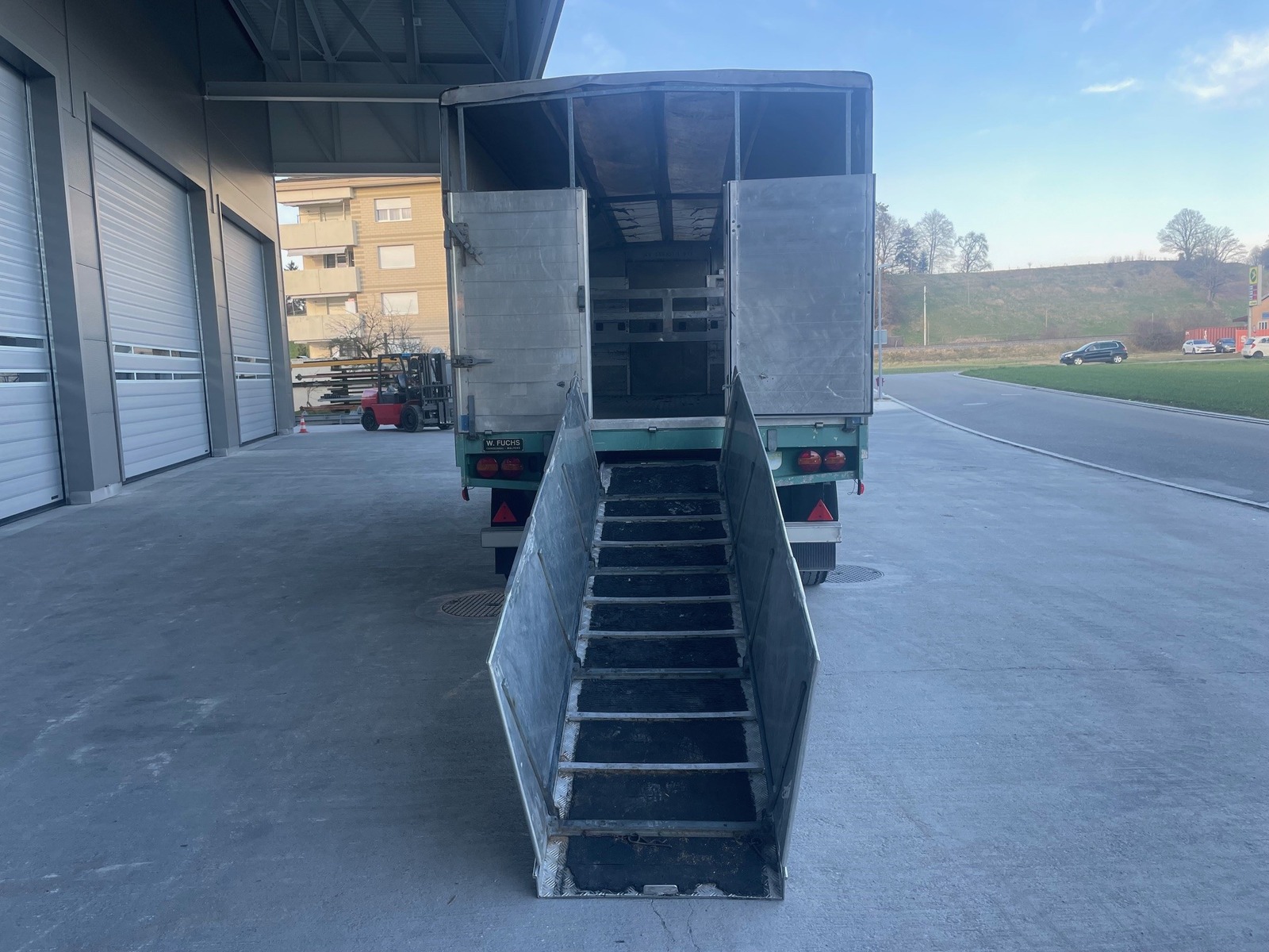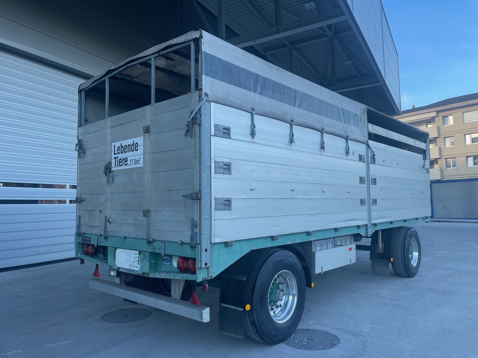 | Bemerkung | ALU-Anhänger Fuchs für Viehtransporte (17.5m2), sehr guter Zustand, CH-Bremsanlage, Handhebelbremse, ABS, CH-Auszugdeichsel, BPW-Achsen 9000kg, Alufelgen, Blattfederung, Durchladesystem, Alurampe, Holländerblachenverdeck! |