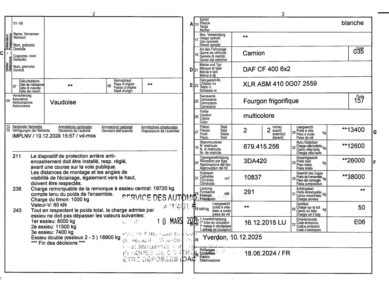 | Aufbau | Kühlfahrzeug |