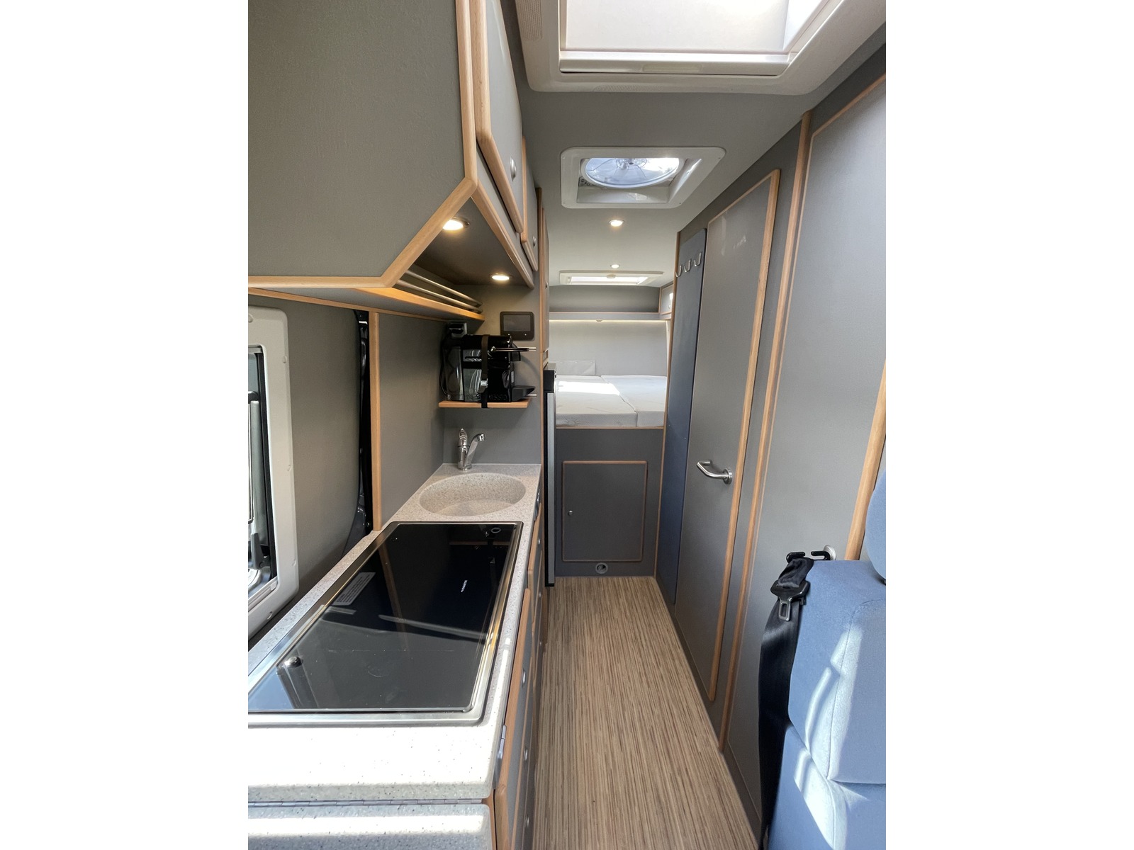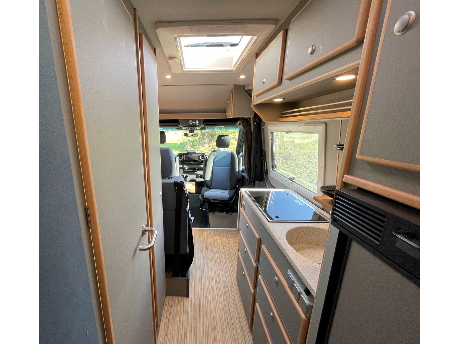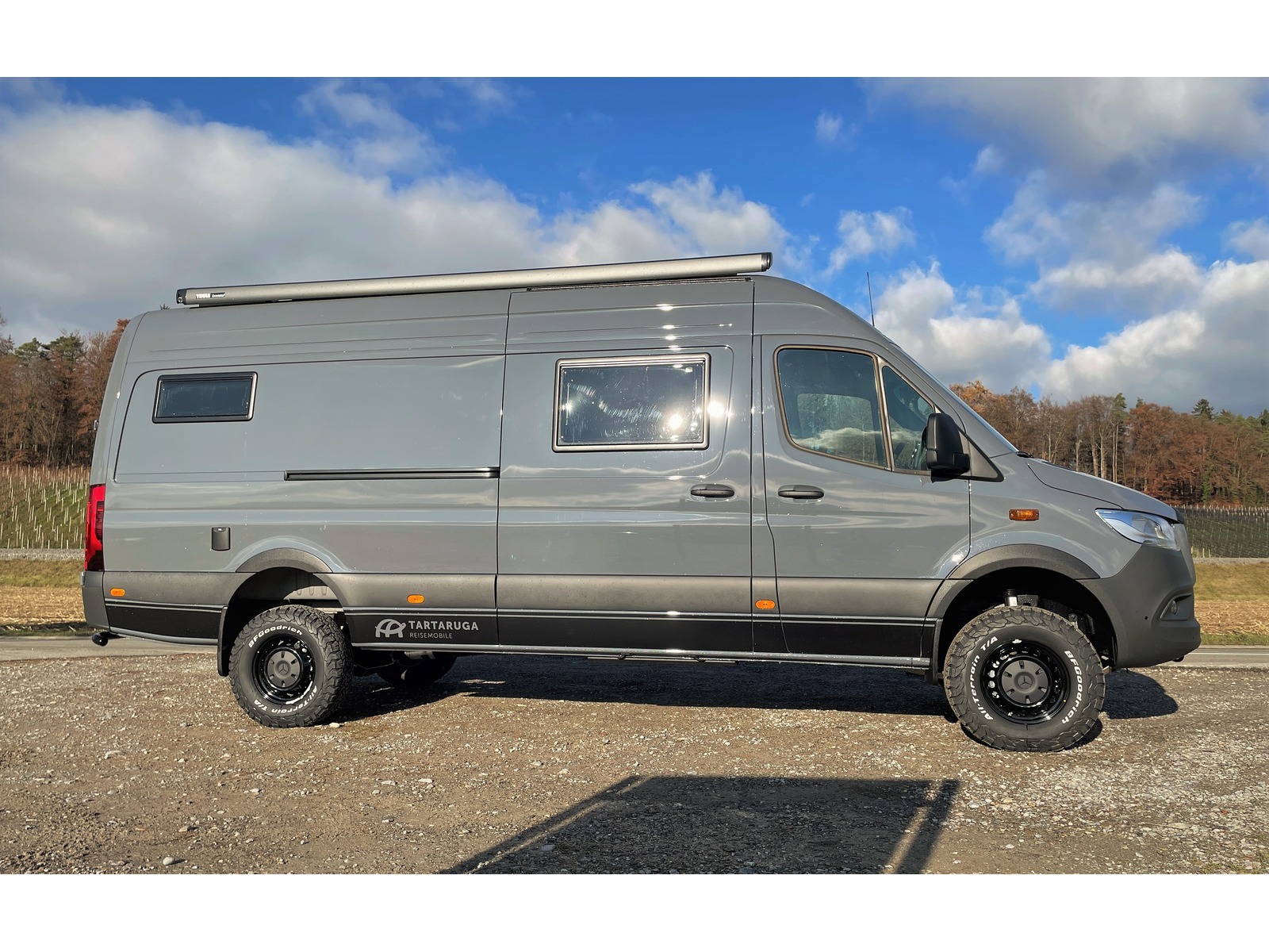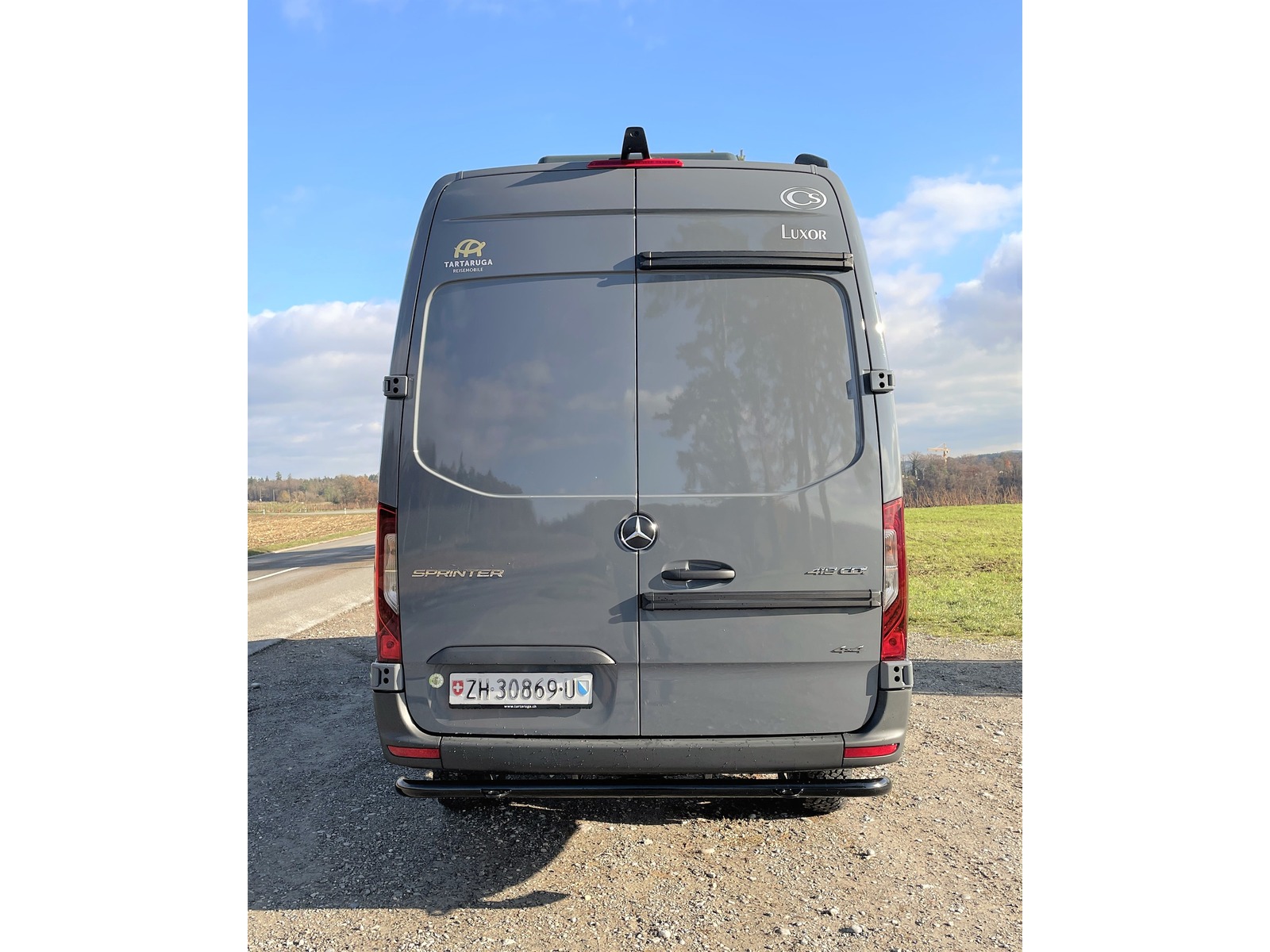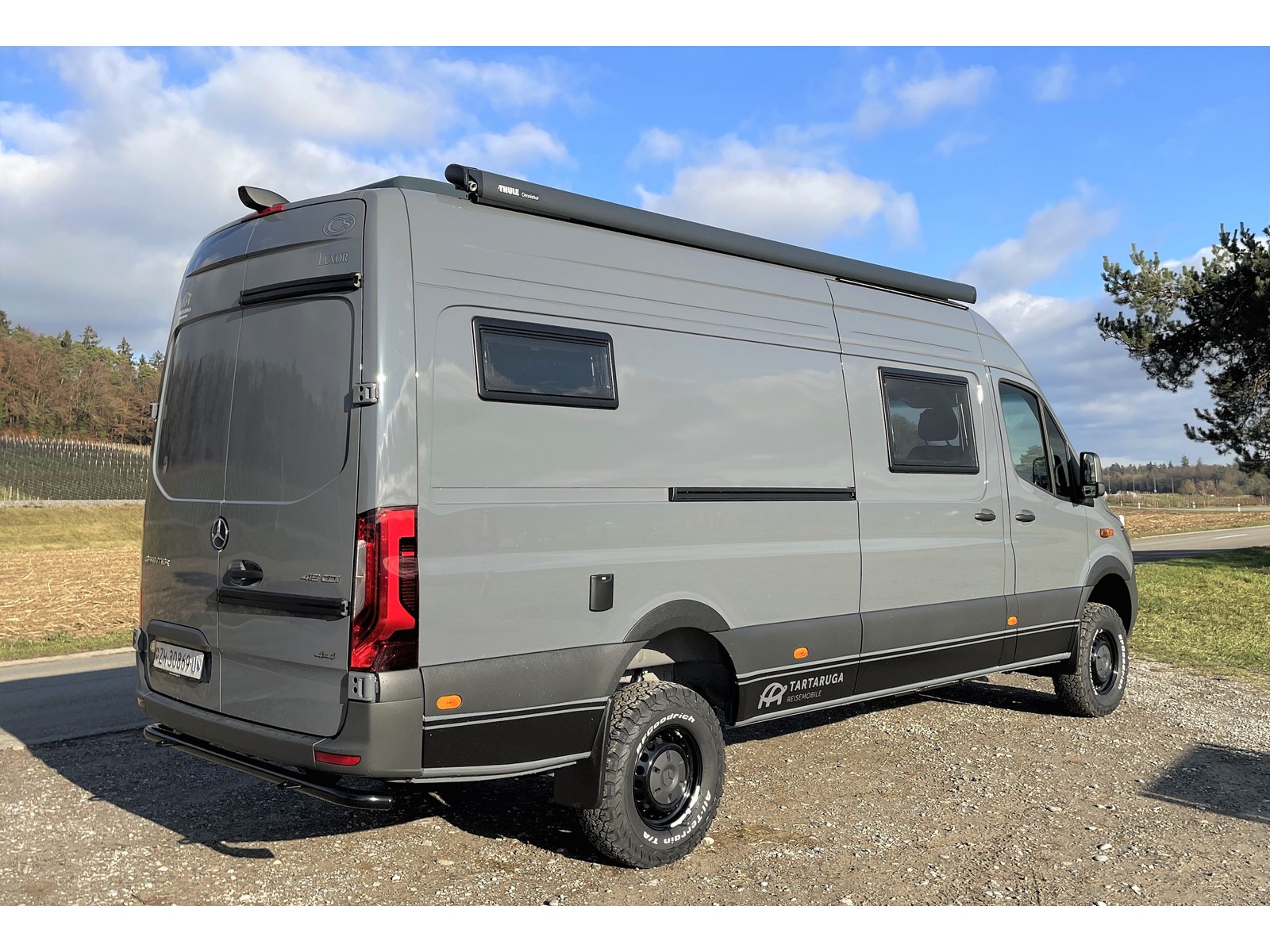 Die im Norden Deutschlands gelegene Manufaktur, CS-Reismobile, fertigt seit über 40 Jahren hochwertige Kastenwagen in sehr solider Qualität, die schon viele Fernreisende um den ganzen Globus gebracht haben. Das Modell Luxor mit rund 6.96m Länge überzeugt mit sehr grosszügigen Längsbetten und viel Stauraum, in welchem sogar Fahrräder transportiert werden können. Das Fahrzeug ist dank grosser Batterie & entsprechend gut dimensionierter Solaranlage gut autark einsetzbar und der Sprinter mit dem neuen Torque-on-demand Allradsystem kommt dank guter Bodenfreiheit auch abseits befestigter Strassen sehr weit. Einige Details zum Basisfahrzeug: - Mercedes-Benz Sprinter 419 CDI 4x4 - 2.0L CDI mit 190 PS und 450Nm Drehmoment - 9-Gang Automatikgetriebe mit kurz übersetztem 1. Gang - neues Torque-on-demand Allradsystem - grössere BF Goodrich All-Terrain Bereifung - 5x Winterreifen Continental inkl. - Zusatzfederblatt Hinterachse - Unterfahrschutz Heck inkl. 2x Bergeösen - 2x Tartaruga-Bergeösen vorne - Radlaufblenden & Motorhaubenspoiler - Unterbodenschutz für Vorderachse, Motor und Verteilergetriebe - Zusatzfernscheinwerfer LED LAZER ST-4, integriert in Kühlergrill - Ansaugschnorchel (eingetragen) - ARB Kompressor für Reifendruck, fest eingebaut im Motorraum inkl. Schlauch und Manometer - Anfahrassistent - Kraftstoff-Filter mit Wasserabscheider (ab Werk Mercedes) - Offroad-Betrieb (Bergabfahrhilfe) - vorbereitet für Anhängerkupplung (einfacher nachrüstbar) - Aussenspiegel el. einklappbar - Nebelscheinwerfer inkl. Abbiegelicht - Heckleuchten in Teil-LED Technik - Ausstiege beleuchtet - Komfort-Dachbedieneinheit - Schmutzfänger vorne und hinten - Zuziehhilfe Schiebetür elektrisch - elektrisch ausfahrbarer Einstiegstritt ohne Reduktion der Bodenfreiheit - Lederlenkrad, beheizt - Sitzheizung Fahrer & Beifahrersitz - Wärmeisolierung Fahrerhaus - halbautomatisch geregelte Klimaanlage TEMPMATIC - Standheizung Mercedes Sprinter - Fahrer- und Beifahrerairbag - Komfort-Kopfstützen - Sitzheizung - MBUX Multimediasystem 10.25" inkl. Navigation, DAB+, Apple Car Play uvm. - Rückfahrkamera - digitaler Innenspiegel - Totwinkel-Assistent - Aktiver Spurhalte-Assistent - Seitenwindassistent - aktiver Bremsassistent - Verkehrszeichenassistent - Aktiver Abstands-Assistent Distronic mit Tempomat - und vieles mehr... - das Fahrzeug wurde einer zusätzlichen Unterboden- und Hohlraumbehandlung mit Wachs unterzogen! Einige Details zum Innenausbau: - Fahrzeug ist isoliert mit 20mm X-treme Isolator - Möbelbau aus 15mm Pappelsperrholz mit HPL Furnier und Echtholzkantenleisten - klappbarer Massivholz-Tisch in Buche - 2x grosse Dachhauben mit Moskito- und Verdunkelungsrollo - Rahmenfenster Seitz S4 D-Lux mit Moskito- und Verdunkelungsrollo - Moskitonetz für die Schiebetür - elektrischer Dachlüfter in Nasszelle & Küche - hochwertige Einzelmatratzen mit Lattenrost - rechtes Bett höhenverstellbar um Fahrräder zu verstauen - 2er Sitzbank mit 2x integrierten 3-Punkt Gurten (Fahrzeug ist für 4 Personen zugelassen) - 180Ah LiFePO4 Batterie - 240W Solaranlage - 60A Ladebooster - 40A Ladegerät - 1'700W Wechselrichter 12V --> 230V - Frischwassersystem innenliegend, 100L Tank - Abwassertank unterflur, 90L - Druckwassersystem mit Armaturen in Haushaltsqualität - Wassersteckdose für Aussendusche im Heck - Duschwanne Ausführung in Getacore - Arbeitsplatte Küche in Getacore - Kaffeemaschine mit Nespresso-System in Küche - Trockentrenntoilette Tomtur OGO - neue Truma Combi 4E Dieselheizung inkl. automatischer Höhenaunpassung und 10L Warmwasserboiler sowie 1.8KW Elektroheizpatrone - grosser 90L Kompressorkühlschrank - Kurbelmarkise Thule 4.0m - C-Schienen an Hecktür als Vorbereitung für Kanister, Sandboards, Veloträger etc. - Feuerlöscher 6kg und Radkeil (Pflicht) Unsere Gewichtsangabe: Einige Anbieter weisen teilweise sehr optimistische Werte aus, die meist nicht der Realität entsprechen. Unser angegebenes Leergewicht von 3'615 kg beinhaltet das effektiv in der CH gewogene Fahrzeug, einen vollen Dieseltank, 20L Frischwasser und 75kg für den Fahrer. So verbleibt bei diesem Fahrzeug eine sehr gute Zuladung von 815 kg. Wir berechnen keine Ablieferungspauschale. Ein Ablieferungs-Kit mit Pannendreieck, Warnwesten und eine Autoapotheke sind bei uns genauso selbstverständlich wie eine perfekte Reinigung, die ganze Immatrikulation, ein voller Dieseltank und eine detaillierte Einweisung in das neue Fahrzeug. Gerne zeigen wir Ihnen dieses spannende Fahrzeug Besichtigung des Fahrzeugs nur nach vorheriger Terminvereinbarung. Kein Verkauf ins Ausland. Irrtum & Fehler vorbehalten Tartaruga AG - Mit Sicherheit Abenteuer erleben