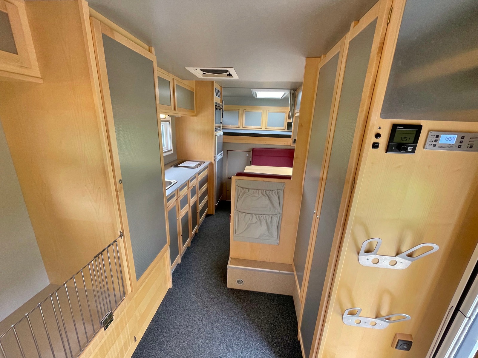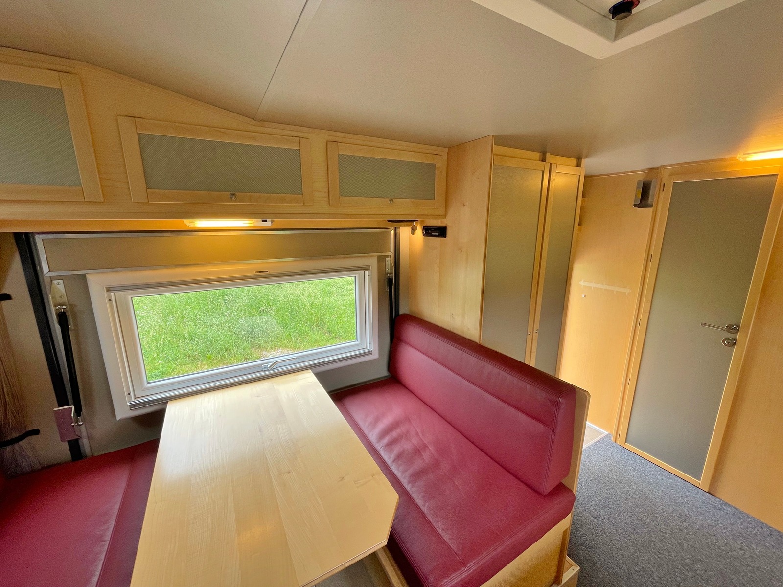 Das bimobil EX 420 basiert auf dem Iveco Daily 55S 4x4 mit einem verlängerten Chassis. Dank der Auflastung auf 6'150kg weist dieses Fahrzeug eine sehr gute Zuladung von ca. 900kg auf. Mit dem permanenten Allradantrieb mit Untersetzung und Sperren am Verteilergetriebe und Hinterachse, sowie Starrachse vorne und hinten sind dem Vortrieb kaum Grenzen gesetzt. Der Wohnraum überzeugt mit einer riesigen Küche, grosszügiger Dinette für bis zu 4 Personen und einem Querbett im Alkoven. Das Modell EX 420 verfügt serienmässig über zwei Stockbetten. Diese wurden bei diesem Fahrzeug bereits ab Werk zu Gunsten von einem grösseren Badezimmer und einem grosszügigen Platz für einen Hund oder Stauraum weggelassen. Viel Stauraum von Aussen und auch Innen sowie eine grosszügige Dusche sorgen für weiteren Komfort. Wir möchten auf folgende Gegebenheiten hinweisen: - die Fotos sind noch nicht ganz aktuell, so sind aktuell Michelin XZL Reifen montiert und die Kantenleisten um die Wohnkabine wurden frisch erneuert - Einbau von zusätzlichen Schlafplätzen oder Sitzplätzen sind nicht möglich - in diesem Fahrzeug sind Hunde mitgereist. Das Fahrzeug wurde professionell gereinigt. - Fahrzeug ist aus zweiter Hand, Auslieferung und Unterhalt stets bei Tartaruga AG - gepflegt, frisch aufgearbeitet mit wenigen Gebrauchspuren - Ablieferung erfolgt frisch ab grossem Service und frisch ab MFK - frisch ab Gasprüfung - Dieselpartikelfilter frisch getestet und in Ordnung Ausstattungsdetails Iveco 4x4: - 3.0L 4-Zylinder Turbodiesel mit 180 PS - grösserer 200L Dieseltank - Klimaanlage Automatisch (Fahrerhaus) - 4x4 Permanent, 2 Untersetzungen, Verteilergetriebesperre - Hinterachssperre - Vorderachssperre - Zusatzfederblatt Hinterachse mit Auflastung auf 6'150kg - Bluetooth-Freisprecheinrichtung - DAB Radio - zentrales Ablagefach mit USB-Ladeanschluss - Kraftstofffilter mit Wasserabscheider - Rückfahrkamera Waeco Perfect View RVS-594 - 2x LED Zusatzscheinwerfer von Lazer - Reserverad - ARB-2-Zylinder-Kompressor - Dachreling aus Aluminium - Windschutzscheibe bei Scheibenwischer beheizbar - Eco-Smart Generator (14V x 210A) - Michelin XZL Bereifung in sehr gutem Zustand - Anhängerkupplung mit 2'200kg Anhängelast Aufbau: - hochwertiger und langlebiger bimobil-Aufbau - Polsterung der Sitzgruppe Wohnraum in Leder-Ausführung - Wintertüre für Durchgang zu Fahrerhaus - Ventilatordachhaube - KCT-Hartglasfenster inklusive Rollos - KCT Dachluke - verstärkte Badtür - Aussendusche warm/kalt - Gastank 60L (ca. 24kg) - Wechselrichter 230V / 1'500W - 45A Ladebooster - Truma Combi 6 Dieselheizung inkl. Höhenset - SAT-Anlage Oyster Cytrac Premium mit TV - Gas-Backofen - Trelino Trockentrenntoilette - Solaranlage 2 x 150Wp - 210Ah Gel-Batterie - 195L Frischwassertank, innenliegend - 145L Abwassertank, innenliegend - riesiger 173L Kompressorkühlschrank - und vieles mehr Unsere Gewichtsangabe: Einige Anbieter weisen teilweise sehr optimistische Werte aus, die meist nicht der Realität entsprechen. Unser angegebenes Leergewicht von 5'250 (Wägung ausstehend) kg beinhaltet das effektiv in der CH gewogene Fahrzeug, einen vollen Dieseltank, 20L Frischwasser und 75kg für den Fahrer. So verbleibt bei diesem Fahrzeug eine sehr gute Zuladung von 900 kg. Wir berechnen keine Ablieferungspauschale. Ein Ablieferungs-Kit mit Pannendreieck, Warnwesten und eine Autoapotheke sind bei uns genauso selbstverständlich wie eine perfekte Reinigung, die ganze Immatrikulation, ein voller Dieseltank und eine detaillierte Einweisung in das neue Fahrzeug. Gerne zeigen wir Ihnen dieses spannende Fahrzeug Besichtigung des Fahrzeugs nur nach vorheriger Terminvereinbarung. Kein Verkauf ins Ausland. Irrtum & Fehler vorbehalten Tartaruga AG - Mit Sicherheit Abenteuer erleben