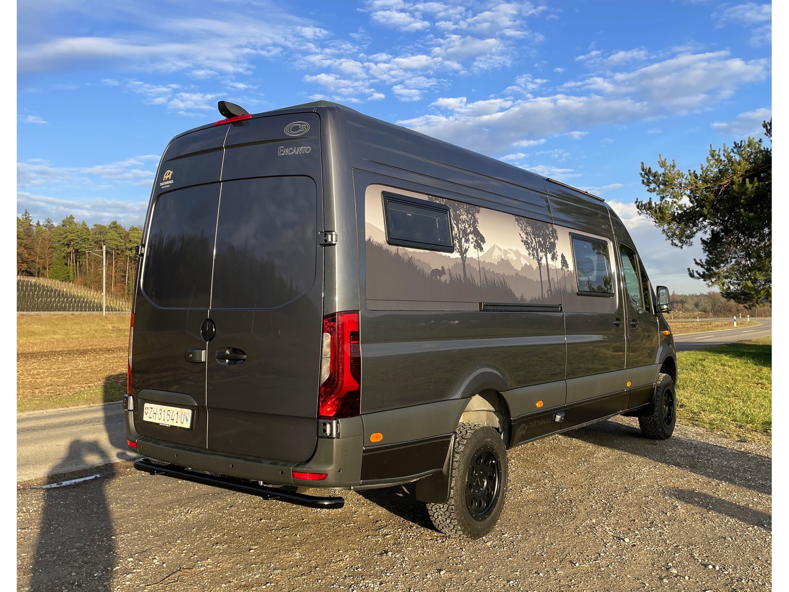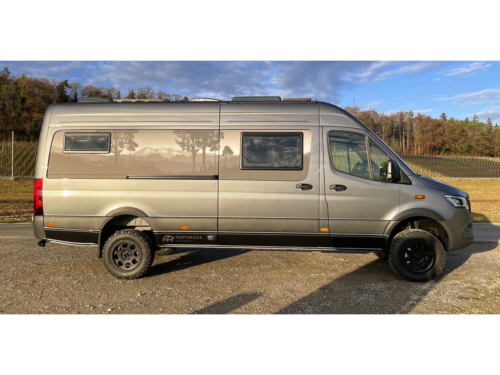 Wichtiger Hinweis: Das Fahrzeug kann sofort gekauft werden (Anzahlung) die Auslieferung ist aber erst ende Juli - anfangs August möglich. So lange wird das Fahrzeug bei uns als Vorführfahrzeug gebraucht. (Besichtigungen und / oder Probefahrten, keine Übernachtungen etc. ) Die im Norden Deutschlands gelegene Manufaktur, CS-Reismobile, fertigt seit über 40 Jahren hochwertige Kastenwagen in sehr solider Qualität, die schon viele Fernreisende um den ganzen Globus gebracht haben. Das Modell Encanto mit rund 6.96m Länge überzeugt mit sehr grosszügigen Längsbetten und viel Stauraum. Die separate Dusche mit einer hochwertigen Getacore-Duschwanne ist im Bereich der Kastenwagen ein echtes Highlight. Das Fahrzeug ist dank grosser 300Ah LiFePO4 Batterie & entsprechend gut dimensionierter Solaranlage mit 400W gut autark einsetzbar und der Sprinter mit dem neuen Torque-on-demand Allradsystem kommt dank guter Bodenfreiheit auch abseits befestigter Strassen sehr weit. Einige Details zum Basisfahrzeug: - Mercedes-Benz Sprinter 419 CDI 4x4 - 2.0L CDI mit 190 PS und 450Nm Drehmoment - 9-Gang Automatikgetriebe mit kurz übersetztem 1. Gang - neues Torque-on-demand Allradsystem - grössere BF Goodrich All-Terrain Bereifung auf 18" Delta-Alufelgen - Zusatzfederblatt Hinterachse - Unterfahrschutz Heck inkl. 2x Bergeösen - 2x Tartaruga-Bergeösen vorne - Heckunterfahrschutz mit 2x Bergeösen hinten - Radlaufblenden & Motorhaubenspoiler - Unterbodenschutz für Vorderachse, Motor, Verteilergetriebe und Differential Hinterachse - Auflastung auf 4'430kg Gesamtgewicht - Anfahrassistent - Kraftstoff-Filter mit Wasserabscheider (ab Werk Mercedes) - vorbereitet für Anhängerkupplung (einfacher nachrüstbar bis 2'800kg) - Aussenspiegel el. einklappbar - Nebelscheinwerfer inkl. Abbiegelicht - Ausstiege beleuchtet - Komfort-Dachbedieneinheit - Schmutzfänger vorne und hinten - Zuziehhilfe Schiebetür elektrisch - elektrisch ausfahrbarer Einstiegstritt ohne Reduktion der Bodenfreiheit - Lederlenkrad, beheizt - Sitzheizung Fahrer & Beifahrersitz - Wärmeisolierung Fahrerhaus - Klimatisierungsautomatik Thermotronic - Standheizung Mercedes Sprinter (nur für Fahrzeuginnenraum) - Fahrer- und Beifahrerairbag - Komfort-Kopfstützen - MBUX Multimediasystem 10.25" inkl. Navigation, DAB+, Apple Car Play uvm. - 360° Kamera & Parktronic vorne & hinten - digitaler Innenspiegel - Totwinkel-Assistent - Aktiver Spurhalte-Assistent - aktiver Bremsassistent - Verkehrszeichenassistent - Aktiver Abstands-Assistent Distronic mit Tempomat - und vieles mehr... - das Fahrzeug wurde einer zusätzlichen Unterboden- und Hohlraumbehandlung mit Wachs unterzogen! Einige Details zum Innenausbau: - Fahrzeug ist isoliert mit 20mm X-treme Isolator - Möbelbau aus 15mm Pappelsperrholz mit HPL Furnier und Echtholzkantenleisten - klappbarer Massivholz-Tisch in Eiche - 2x grosse Dachhauben mit Moskito- und Verdunkelungsrollo - Rahmenfenster Seitz S4 D-Lux mit Moskito- und Verdunkelungsrollo - Moskitonetz für die Schiebetür - elektrischer Dachlüfter im Gang bei Küche - hochwertige Einzelmatratzen mit Lattenrost - 2er Sitzbank mit 1x 3-Punktgurt & 1x Beckengurt (Fahrzeug ist für 4 Personen zugelassen) - 300Ah LiFePO4 Batterie - 400Wp Solaranlage - 60A Ladebooster - 40A Ladegerät - 3'000W Wechselrichter 12V --> 230V - Frischwassersystem innenliegend, 100L Tank - Abwassertank unterflur, 90L - Druckwassersystem mit Armaturen in Haushaltsqualität - Wassersteckdose für Aussendusche im Heck - Duschwanne Ausführung in Getacore - Arbeitsplatte Küche in Schwarz - Verschweisstoilette Clesana - neue Truma Combi 4E Dieselheizung inkl. automatischer Höhenanpassung und 10L Warmwasserboiler sowie 1.8KW Elektroheizpatrone - grosser 90L Kompressorkühlschrank - Feuerlöscher 6kg und Radkeil (Pflicht) - gasfreies Fahrzeug mit Induktionsherd - Dekorlinie Blackline - Sicherheitspaket (Zusatzschlösser, aussen in Wagenfarbe) - 5G-Router - Gewürzbord-Auszug - uvm. Unsere Gewichtsangabe: Einige Anbieter weisen teilweise sehr optimistische Werte aus, die meist nicht der Realität entsprechen. Unser angegebenes Leergewicht von 3'655 kg beinhaltet das effektiv in der CH gewogene Fahrzeug, einen vollen Dieseltank, 20L Frischwasser und 75kg für den Fahrer. So verbleibt bei diesem Fahrzeug eine sehr gute Zuladung von 775 kg. Wir berechnen keine Ablieferungspauschale. Ein Ablieferungs-Kit mit Pannendreieck, Warnwesten und eine Autoapotheke sind bei uns genauso selbstverständlich wie eine perfekte Reinigung, die ganze Immatrikulation, ein voller Dieseltank und eine detaillierte Einweisung in das neue Fahrzeug. Gerne zeigen wir Ihnen dieses spannende Fahrzeug Besichtigung des Fahrzeugs nur nach vorheriger Terminvereinbarung. Kein Verkauf ins Ausland. Irrtum & Fehler vorbehalten Tartaruga AG - Mit Sicherheit Abenteuer erleben