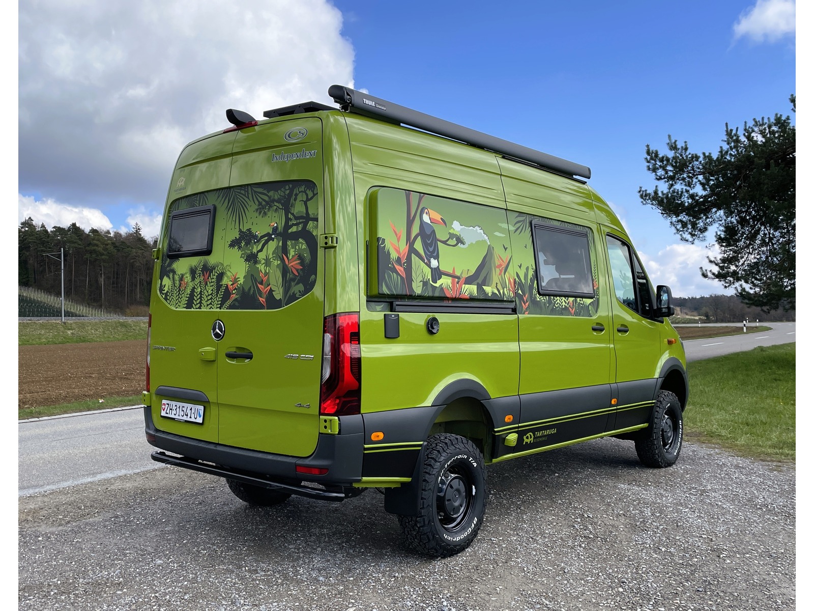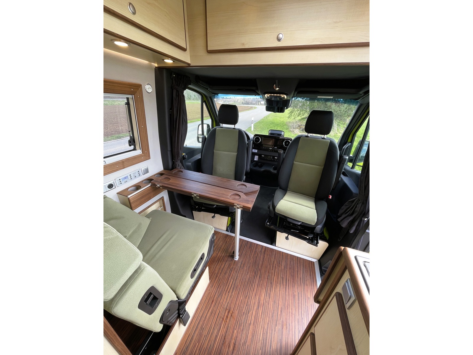 Das kompakte Modell Independent bietet auf gut 6.0m Aussenlänge genügend Platz für 2 Personen. Das fixe Bett im Heck misst ca. 1.95m x 1.42m (am Fussende ca. 1.20m) darunter gibt es einen grossen Heckstauraum. Dusche/WC ist ebenso vorhanden wie eine Küche, Tisch und Sitzgelegenheit. Und wie es der Name schon sagt, ist man mit dem Independent sehr unabhängig unterwegs. Das Fahrzeug ist dank grosser Batterie & entsprechend gut dimensionierter Solaranlage gut autark einsetzbar und der Sprinter mit dem Torque-on-demand Allradsystem kommt dank guter Bodenfreiheit auch abseits befestigter Strassen sehr weit.