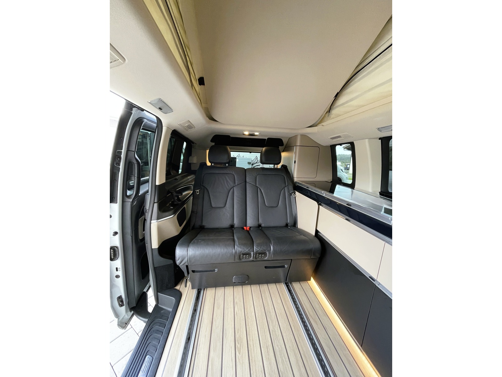 Der Mercedes V-Klasse Marco Polo ist ein eleganter und hochwertig ausgestatteter Camper-Van, der den Komfort einer Luxuslimousine mit der Freiheit eines Reisemobils verbindet. Mit seinem aufstellbaren Hochdach und der durchdachten Innenausstattung bietet er Platz für bis zu vier Personen zum Schlafen und Wohnen. Die integrierte Küche, gemütliche Sitz- und Liegeflächen sowie zahlreiche clevere Stauraumlösungen machen ihn zu einem Zuhause auf vier Rädern. Dank den hochwertigen Materialien und der typischen Mercedes-Verarbeitungsqualität fühlt man sich auch auf längeren Reisen rundum wohl.