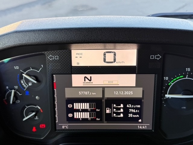 | Zubehör | Retarder/Intarder, Dieselpartikelfilter, Hydraulik (Nebenantrieb), Anhängerkupplung, Differentialsperre, Traktionskontrolle, ABS, Nebellampen, Fahrtenschreiber, Radio / CD, Navigationssystem, Klima, Multifunktionsanzeige, Tempomat, Zentralverriegelung, El. Aussenspiegel, El. Fensterheber, Rückfahr- und Totwinkelkamera |