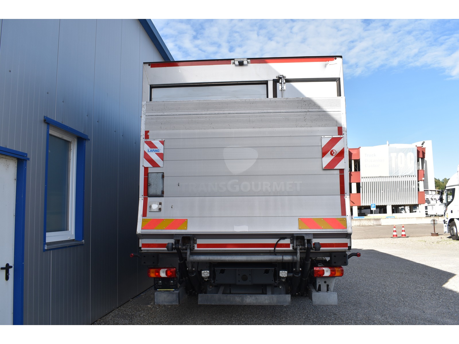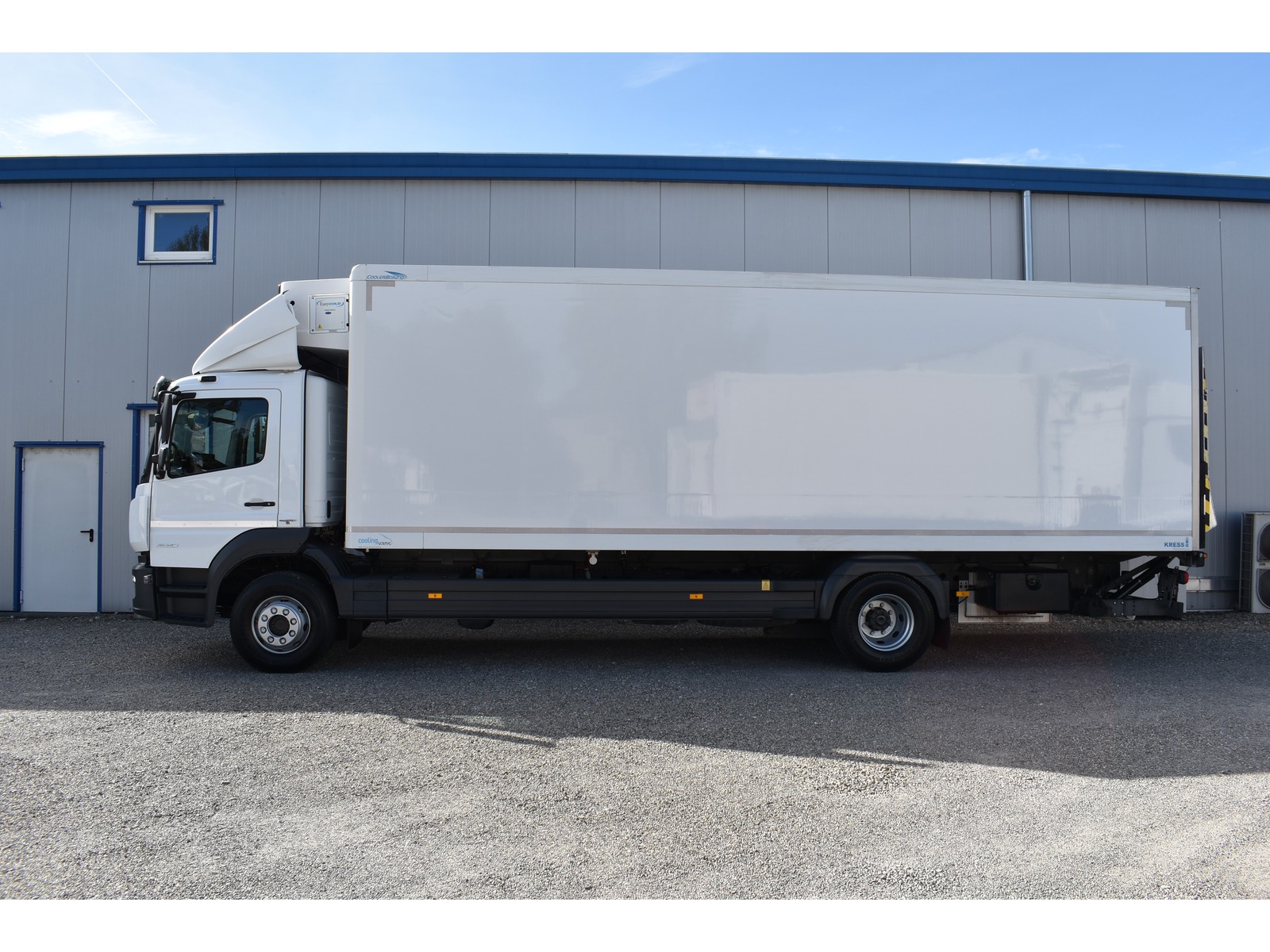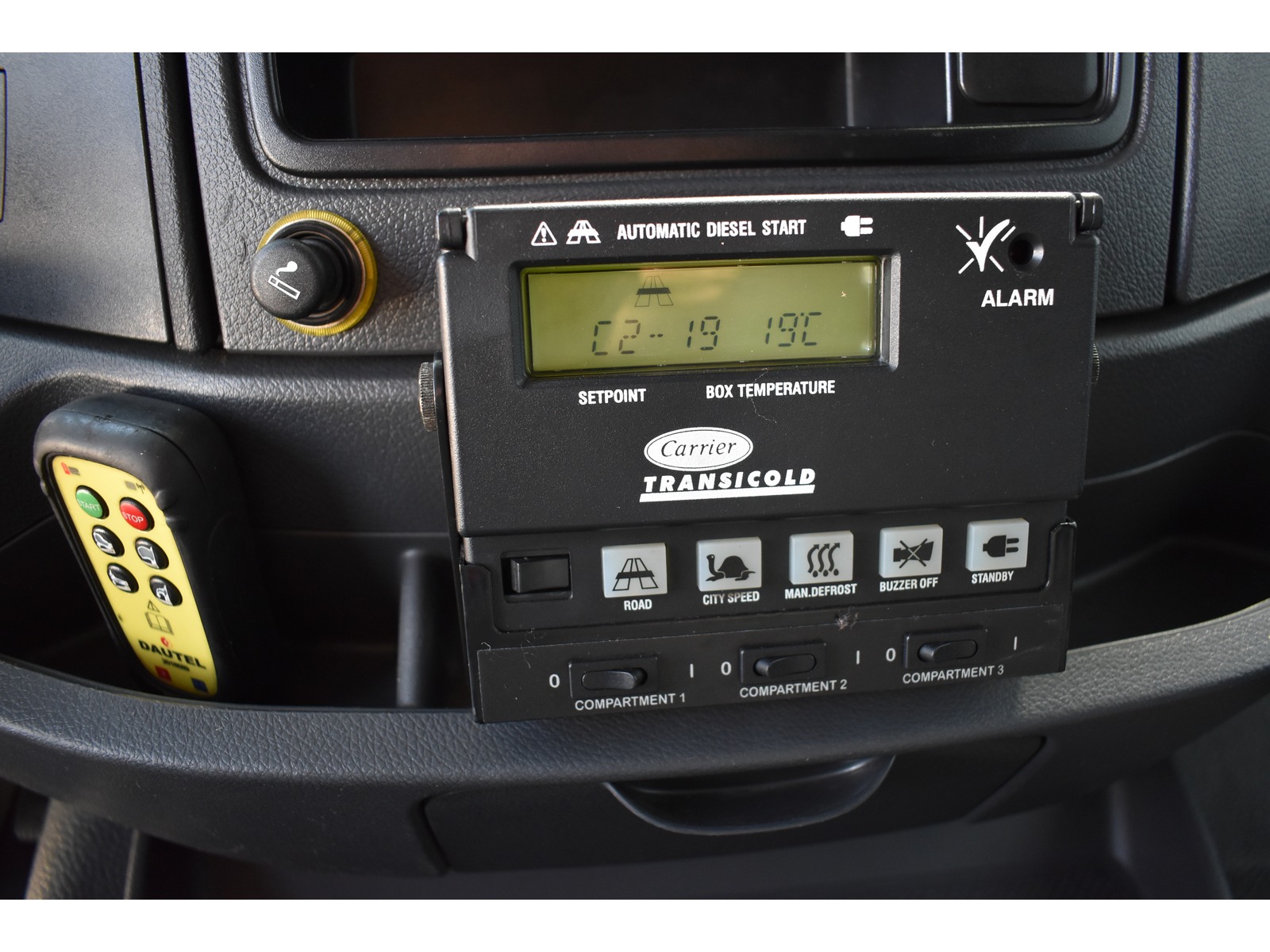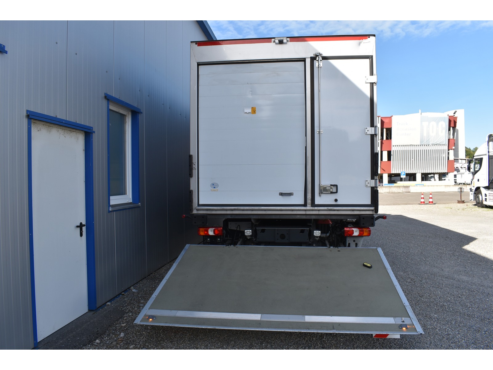 Tempomat, Klima, Hebebühne, 8-Gang Powershift Getriebe ClassicSpace-Kabine Radstand 5'360 mm längs verschiebbare Trennwand in der kleinen Zone 2-Zonen-Tiefkühlkasten mit 2 Verdampfern und verschiebbarer Trennwand Anfahrassistent Digital-Tacho je 1 Zurrschiene seitlich Klimaanlage Kühlaggregat Carrier Supra 1'250 MT mit Diesel- und/oder Netzbetrieb Kunststoffboden Ladebordwand Dautel mit 1'500 kg Tragkraft Ladebordwand-Blatt 1'800 mm mit Anti-Rutsch Belag und Funkfernbedienung Luftfederung Hinterachse Multifunktionslenkrad Rolltor links zusätzlich 1 Flügeltüre rechts Rückfahrkamera Sitzheizung