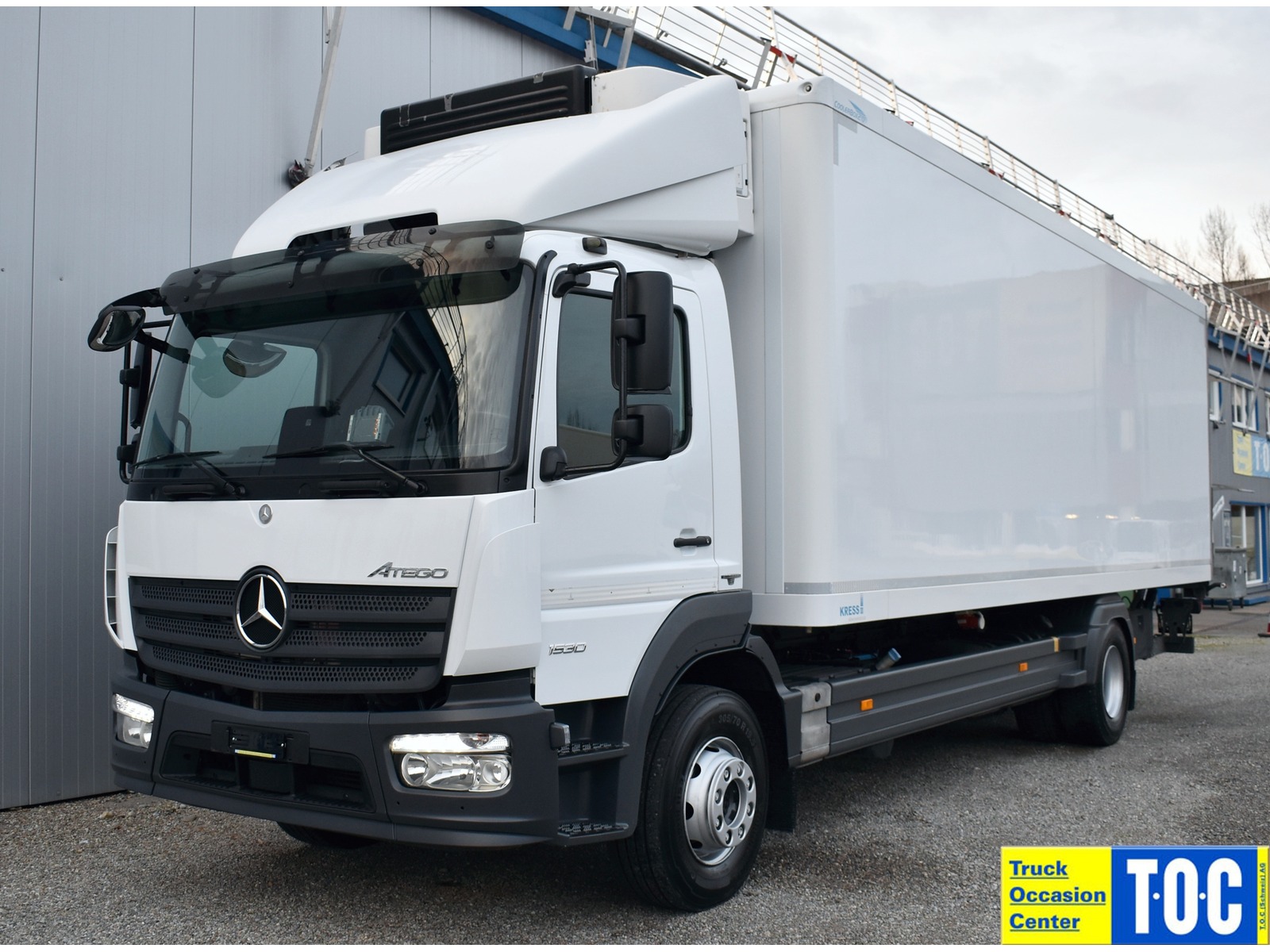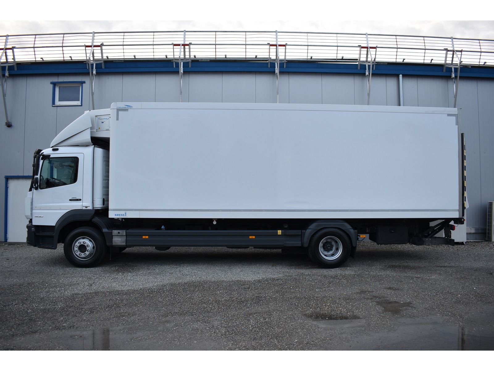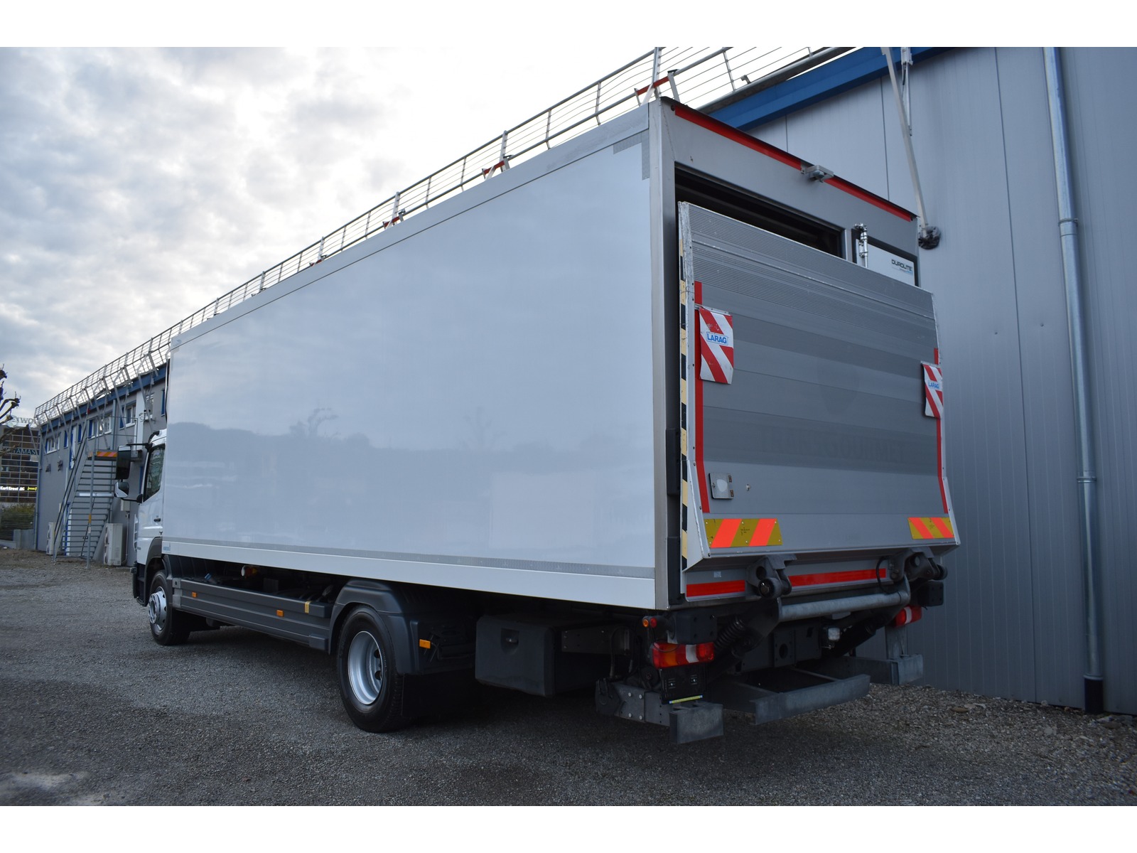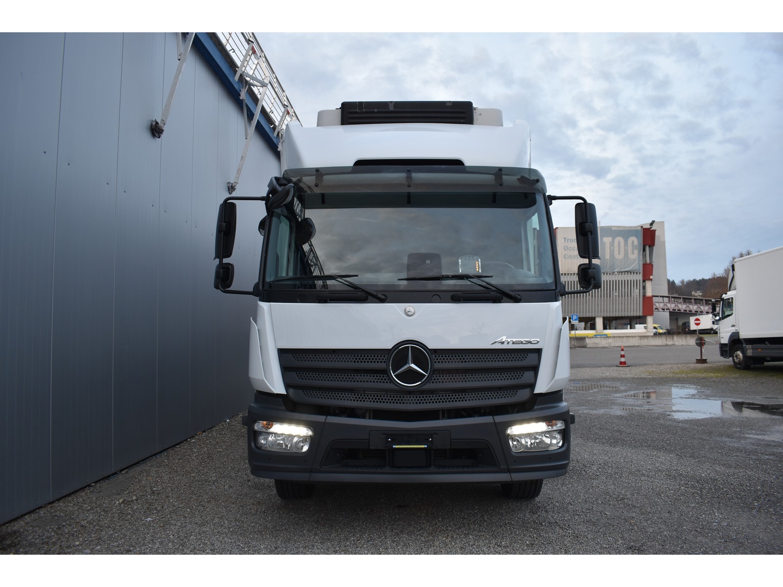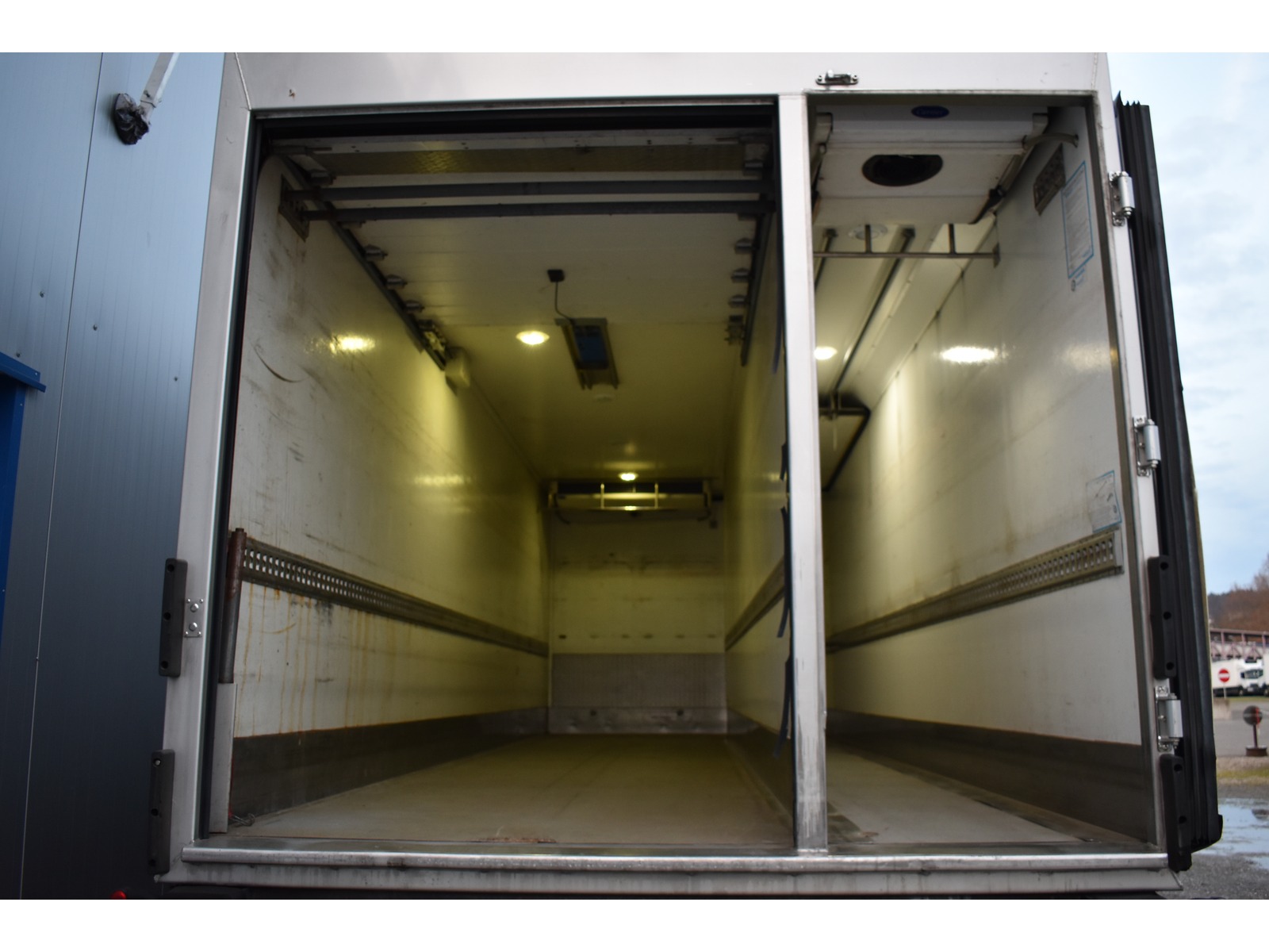 Kühlgerät, Hebebühne, Spoiler, Klima, Tempomat, 8-Gang Powershift Getriebe ClassicSpace-Kabine Radstand 5'360 mm längs verschiebbare Trennwand in der kleinen Zone 2-Zonen-Tiefkühlkasten mit 2 Verdampfern und verschiebbarer Trennwand Anfahrassistent Digital-Tacho je 1 Zurrschiene seitlich Klimaanlage Kühlaggregat Carrier Supra 950 MT mit Diesel- und/oder Netzbetrieb Kunststoffboden Ladebordwand Dautel mit 1'500 kg Tragkraft Ladebordwand-Blatt 1'800 mm mit Anti-Rutsch Belag und Funkfernbedienung Luftfederung Hinterachse Multifunktionslenkrad Rolltor links zusätzlich 1 Flügeltüre rechts Rückfahrkamera Sitzheizung