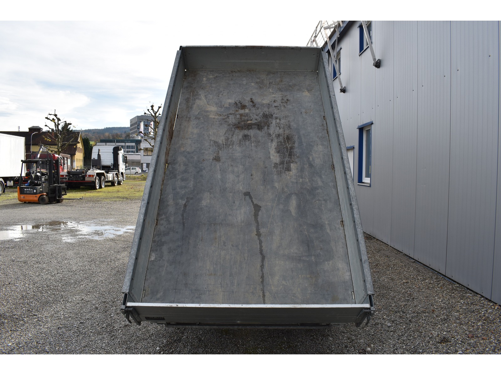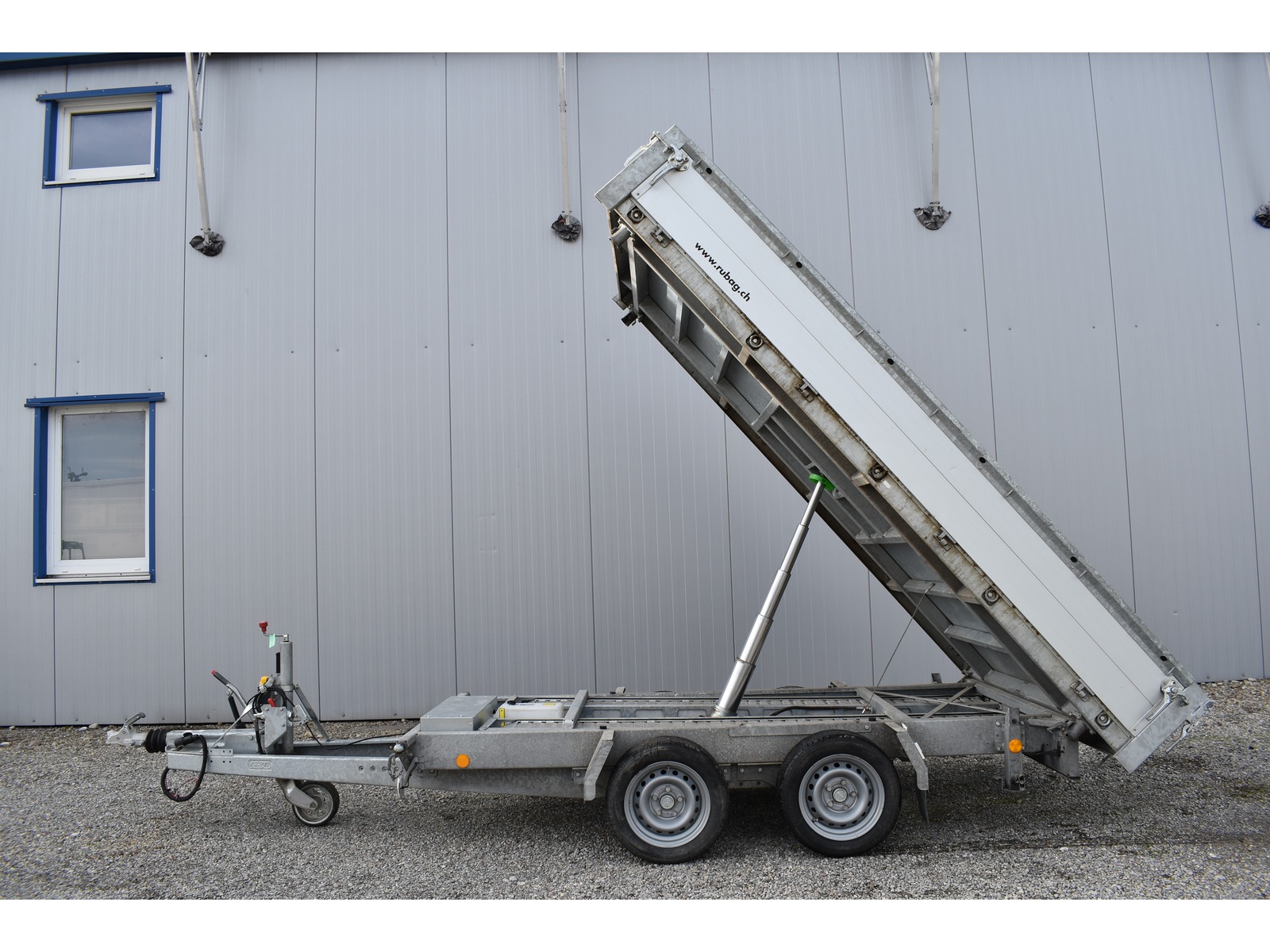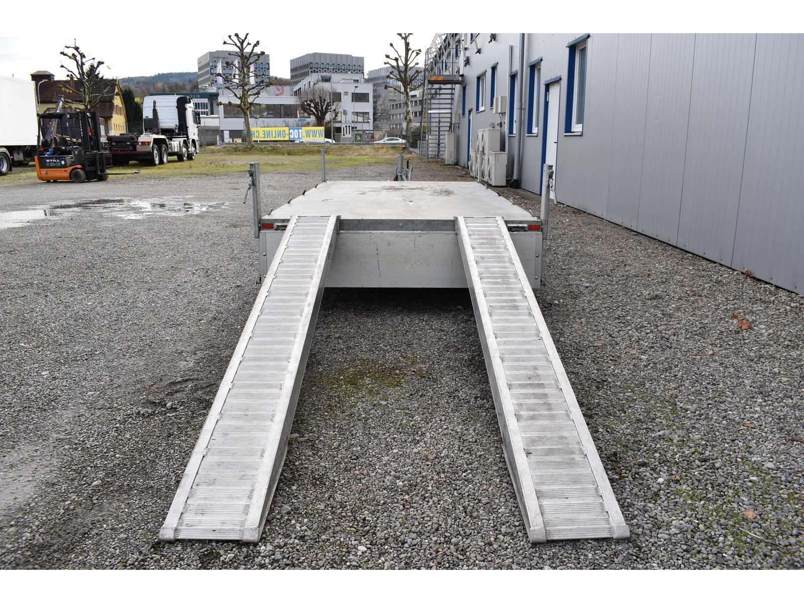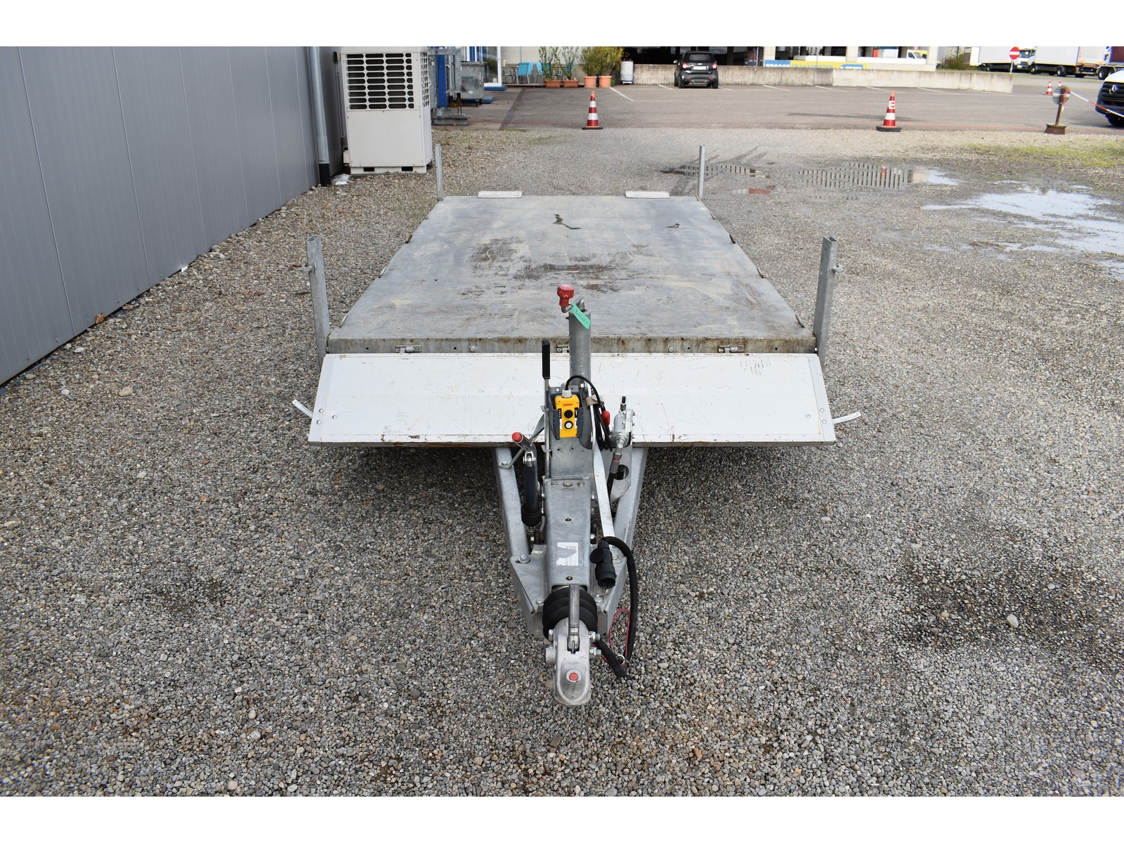 2 Alu-Auffahrrampen 2'560x280 mm, Tragkraft bei Achsabstand 1m=2'600kg und bei 1.5m =2'850kg, Einschubfach für Auffahrrampen, elektrische Pumpe mit Nothandpumpe, Ladeleitung für Batterie, Abstellstützen am Heck, Aluboden, Alu-Seitenläden 350 mm abklappbar, Binderinge seitlich versenkbar, Heckladen pendelnd oder abklappbar