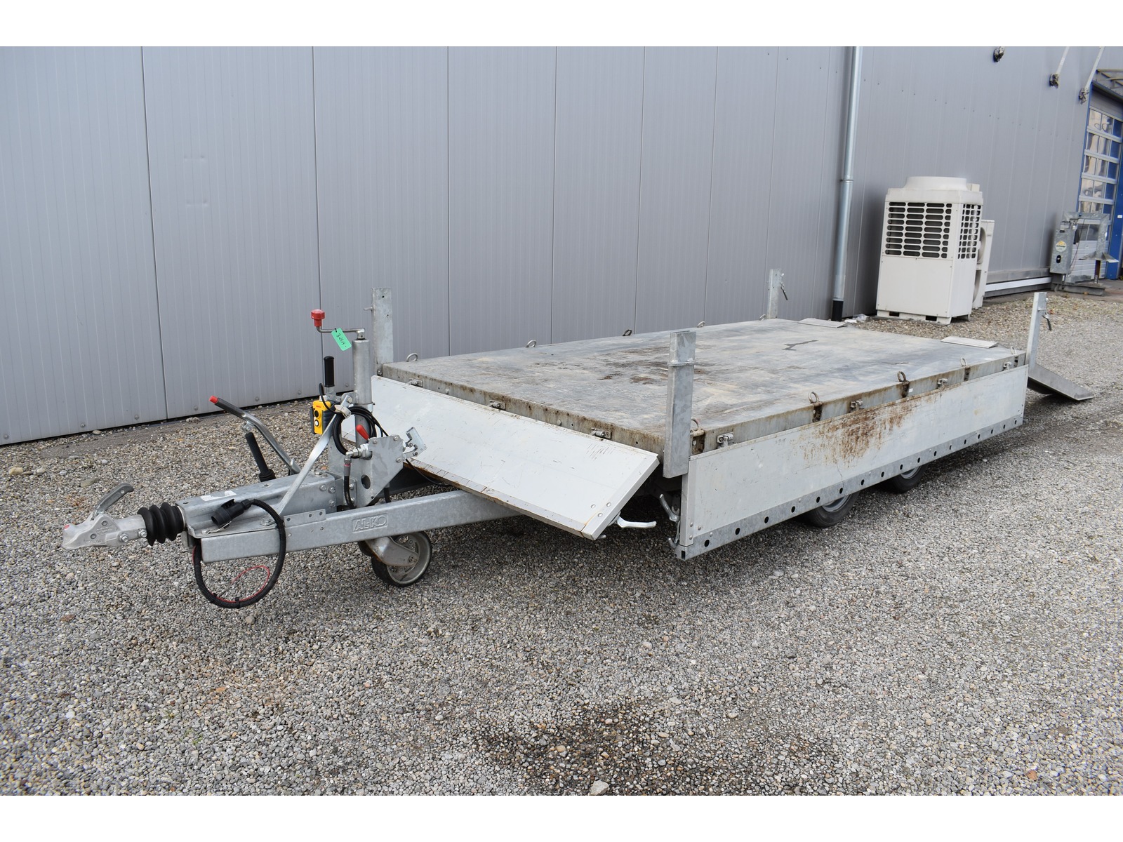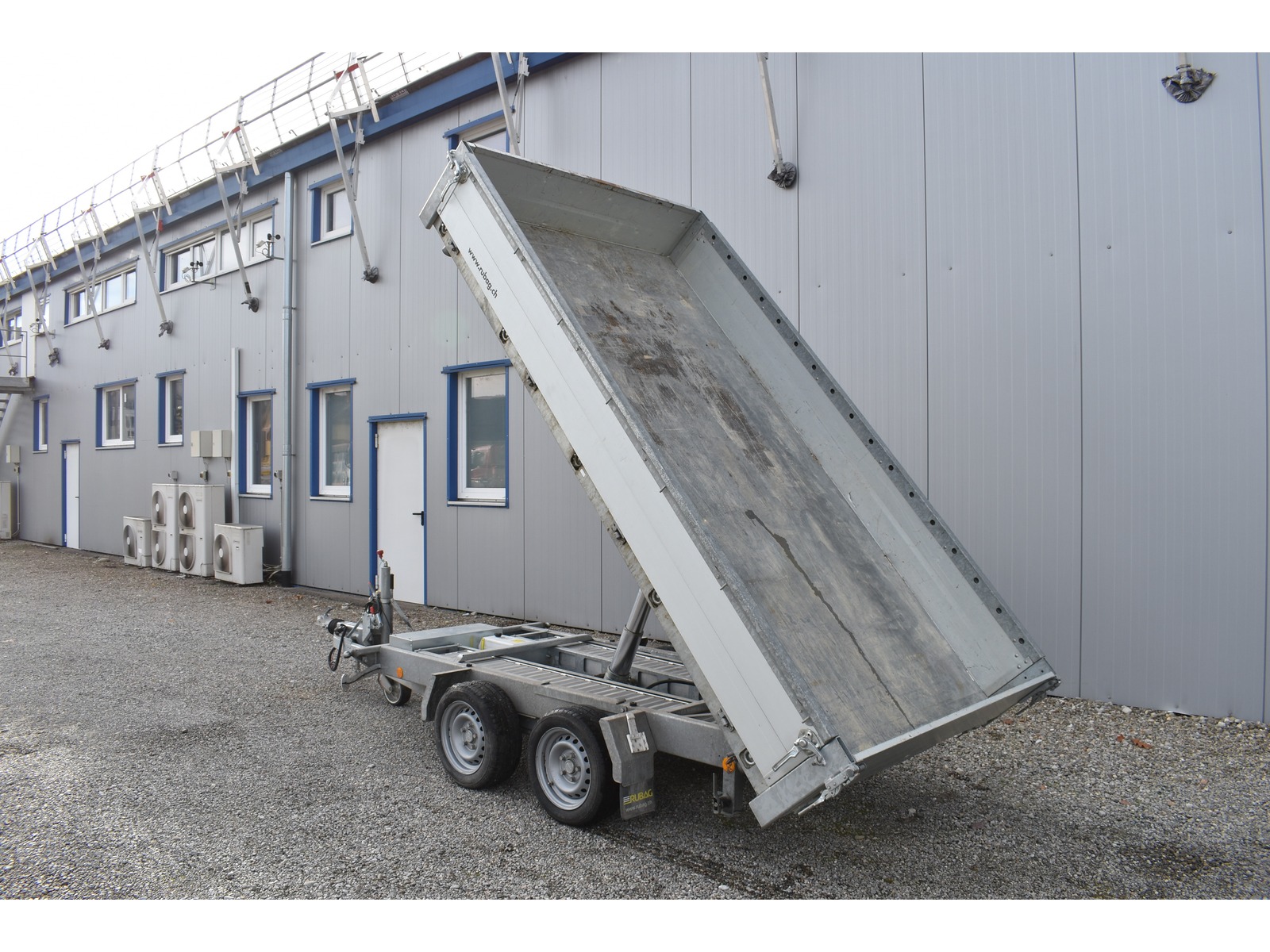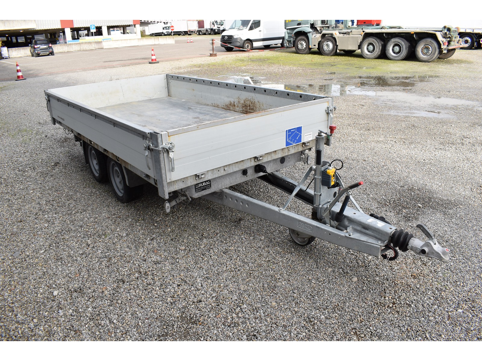 2 Alu-Auffahrrampen 2'560x280 mm, Tragkraft bei Achsabstand 1m=2'600kg und bei 1.5m =2'850kg, Einschubfach für Auffahrrampen, elektrische Pumpe mit Nothandpumpe, Ladeleitung für Batterie, Abstellstützen am Heck, Aluboden, Alu-Seitenläden 350 mm abklappbar, Binderinge seitlich versenkbar, Heckladen pendelnd oder abklappbar