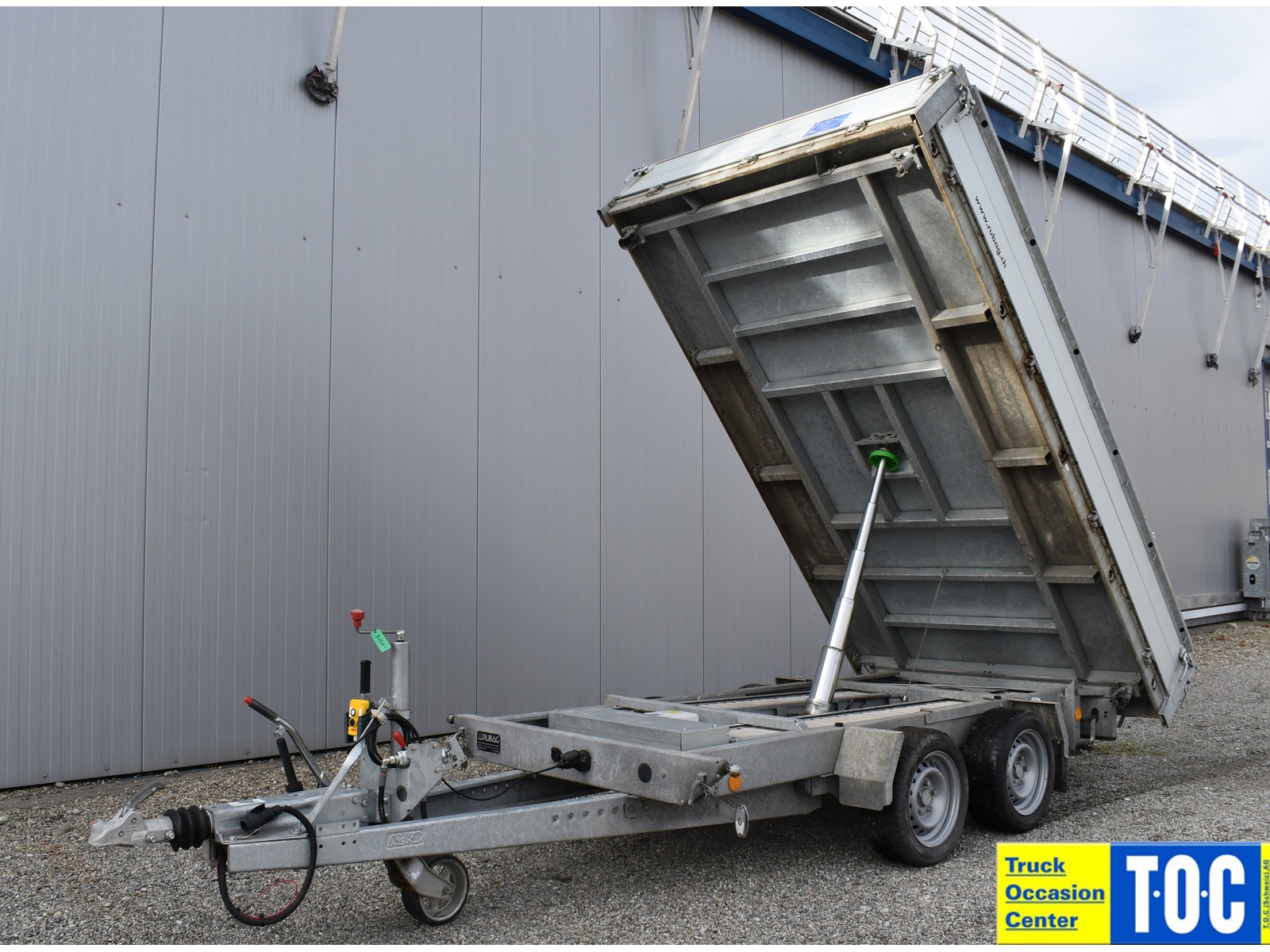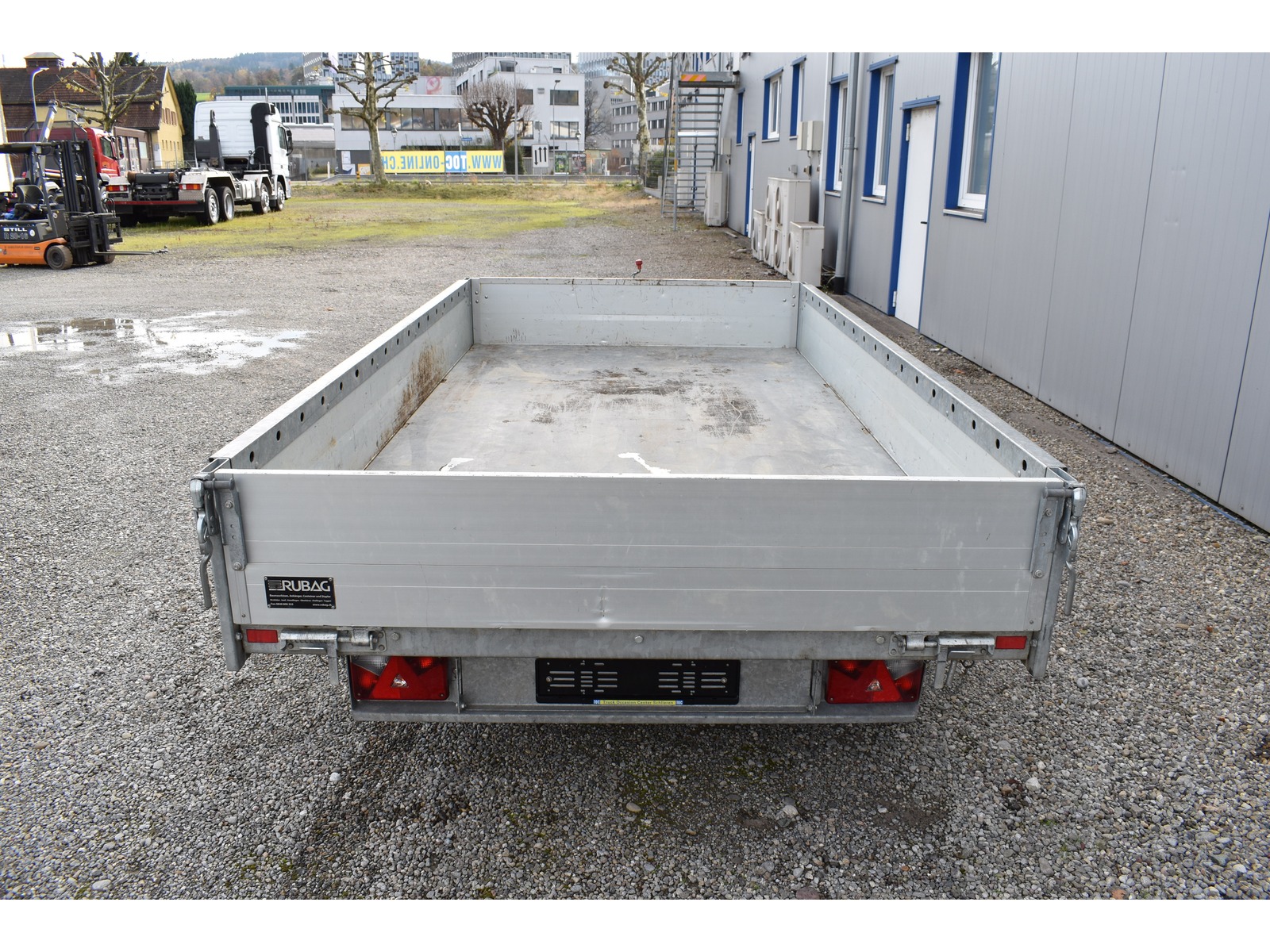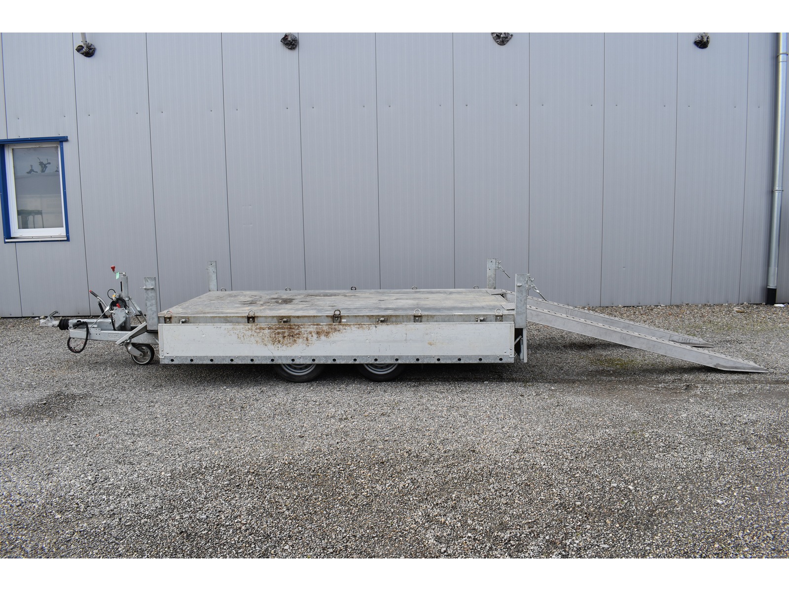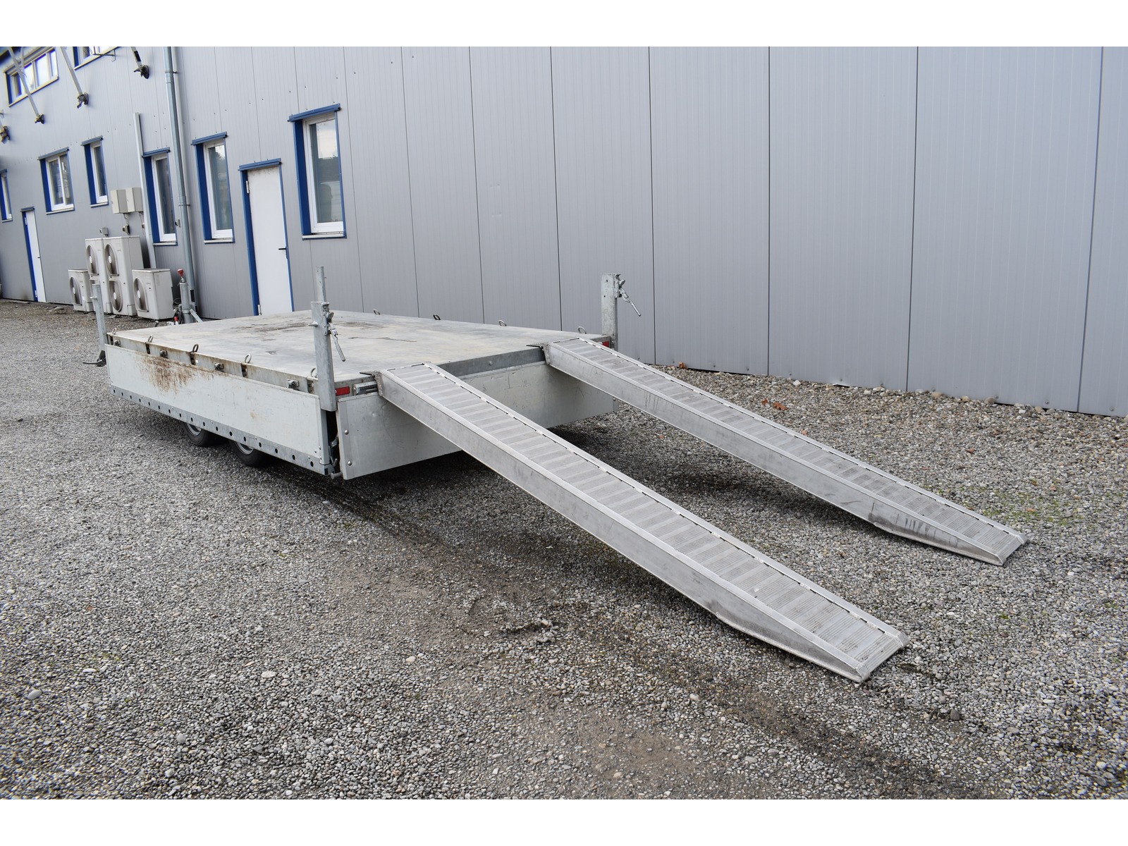 2 Alu-Auffahrrampen 2'560x280 mm, Tragkraft bei Achsabstand 1m=2'600kg und bei 1.5m =2'850kg, Einschubfach für Auffahrrampen, elektrische Pumpe mit Nothandpumpe, Ladeleitung für Batterie, Abstellstützen am Heck, Aluboden, Alu-Seitenläden 350 mm abklappbar, Binderinge seitlich versenkbar, Heckladen pendelnd oder abklappbar