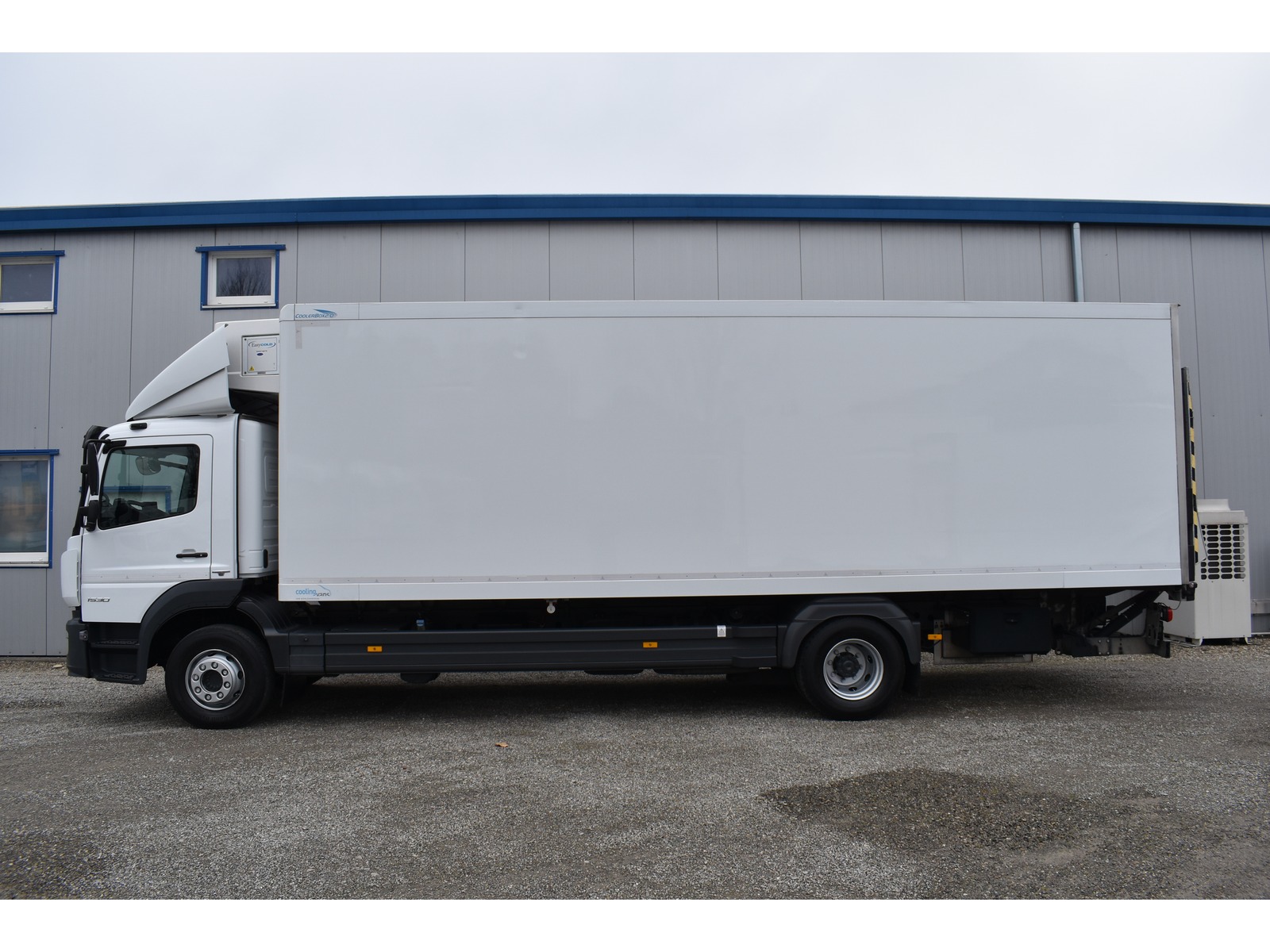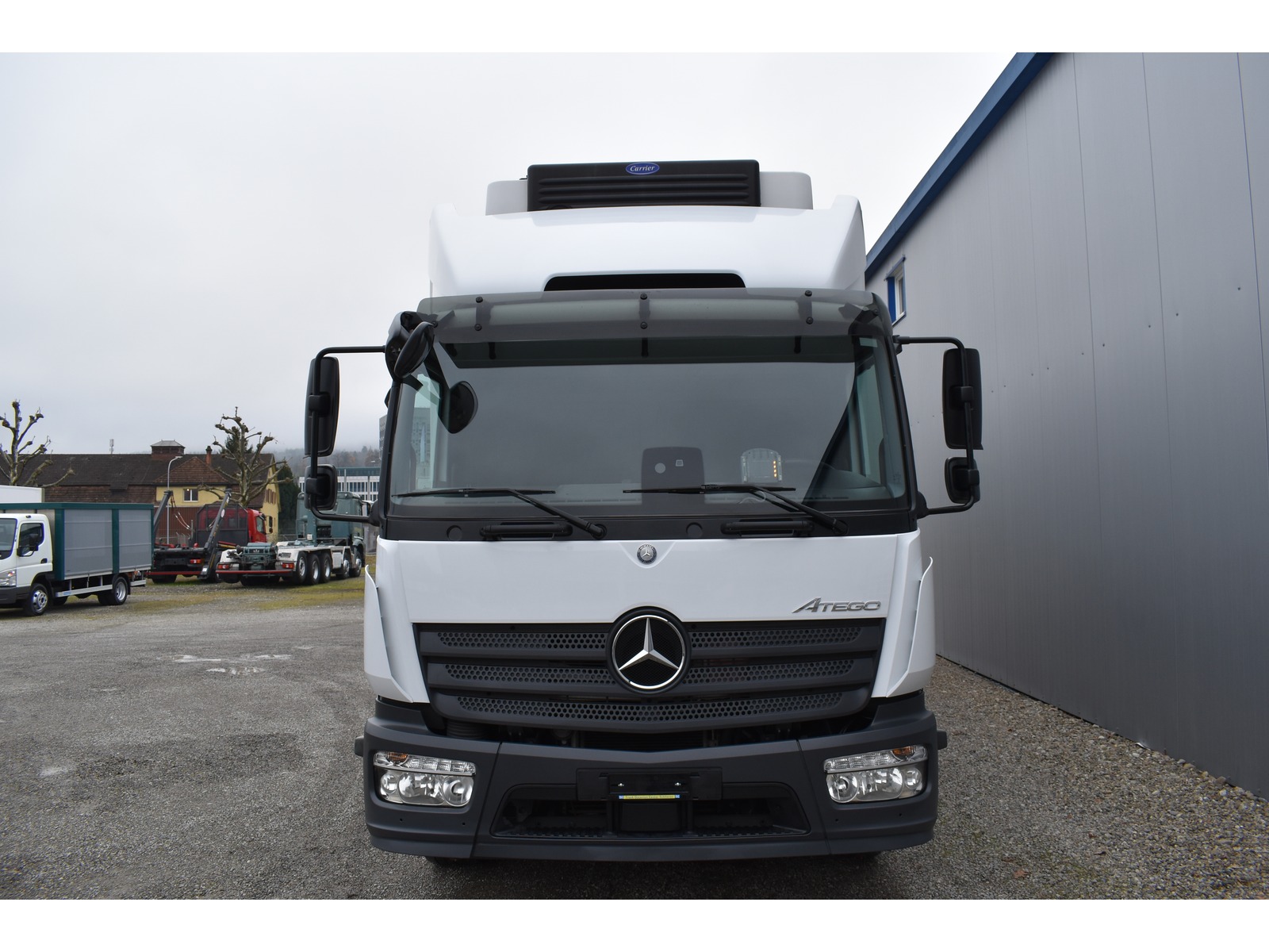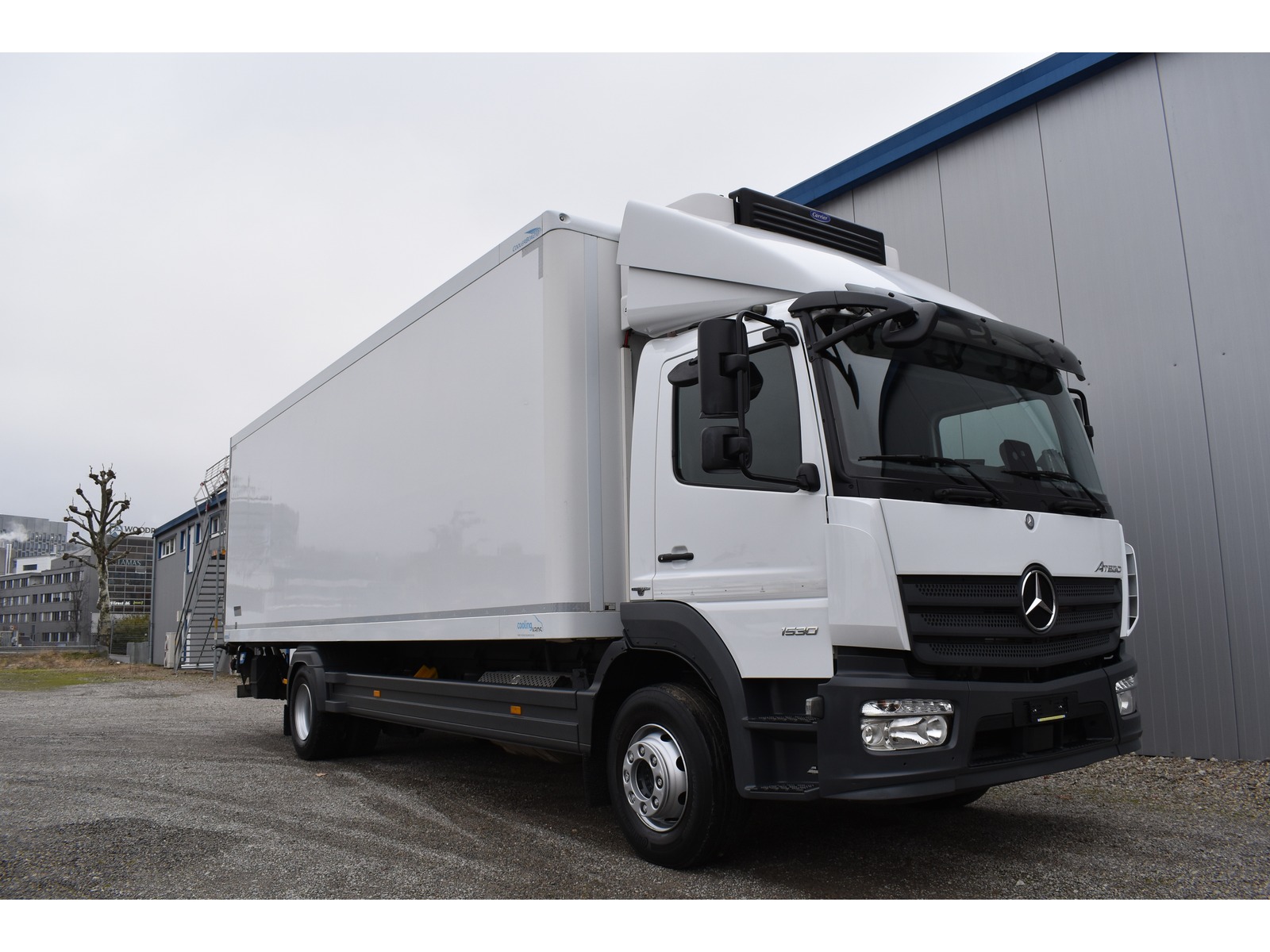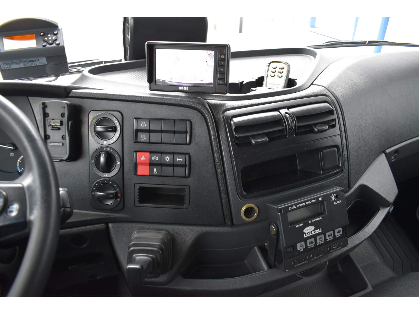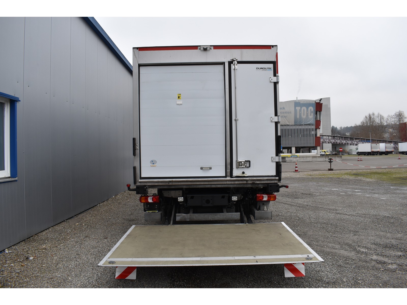 Kühlgerät, Hebebühne, Spoiler, Klima, Tempomat, 8-Gang Powershift Getriebe ClassicSpace-Kabine Radstand 5'360 mm längs verschiebbare Trennwand in der kleinen Zone 2-Zonen-Tiefkühlkasten mit 2 Verdampfern und verschiebbarer Trennwand Anfahrassistent Digital-Tacho je 1 Zurrschiene seitlich Klimaanlage Kühlaggregat Carrier Supra 950 MT mit Diesel- und/oder Netzbetrieb Kunststoffboden Ladebordwand Dautel mit 1'500 kg Tragkraft Ladebordwand-Blatt 1'800 mm mit Anti-Rutsch Belag und Funkfernbedienung Luftfederung Hinterachse Multifunktionslenkrad Rolltor links zusätzlich 1 Flügeltüre rechts Rückfahrkamera Sitzheizung