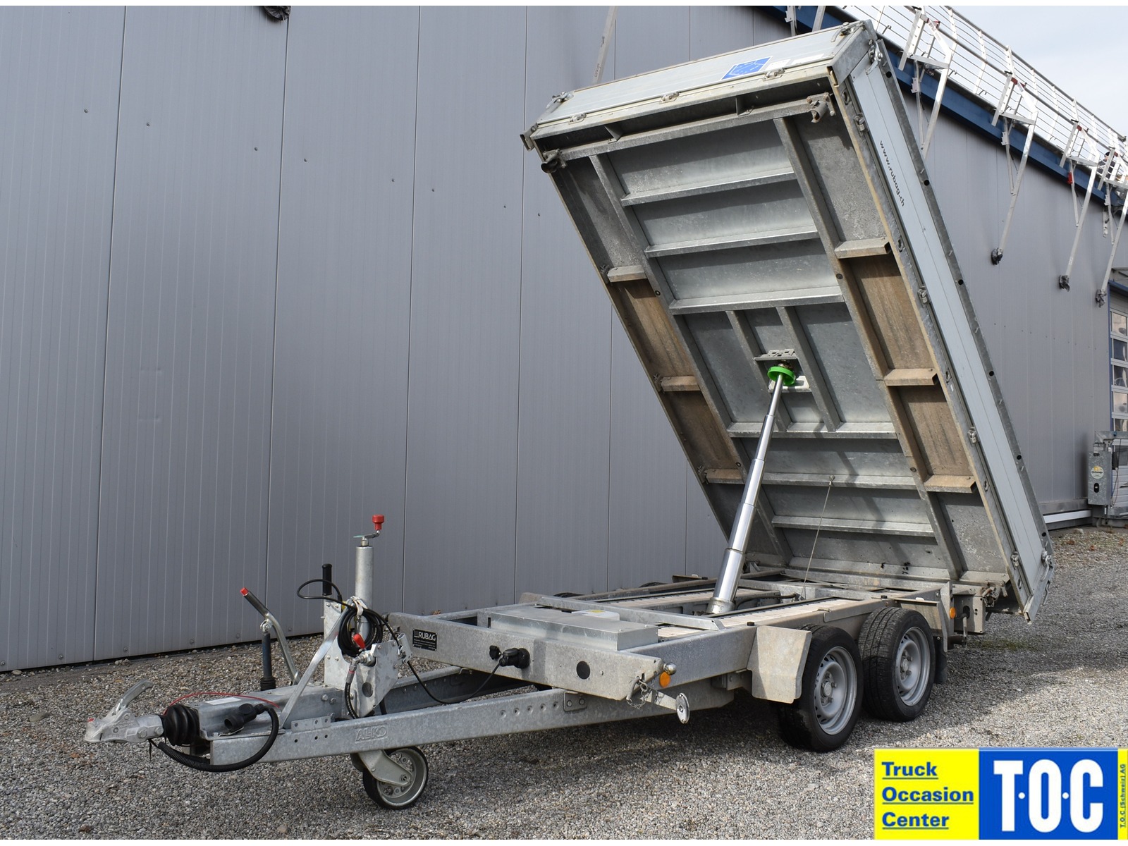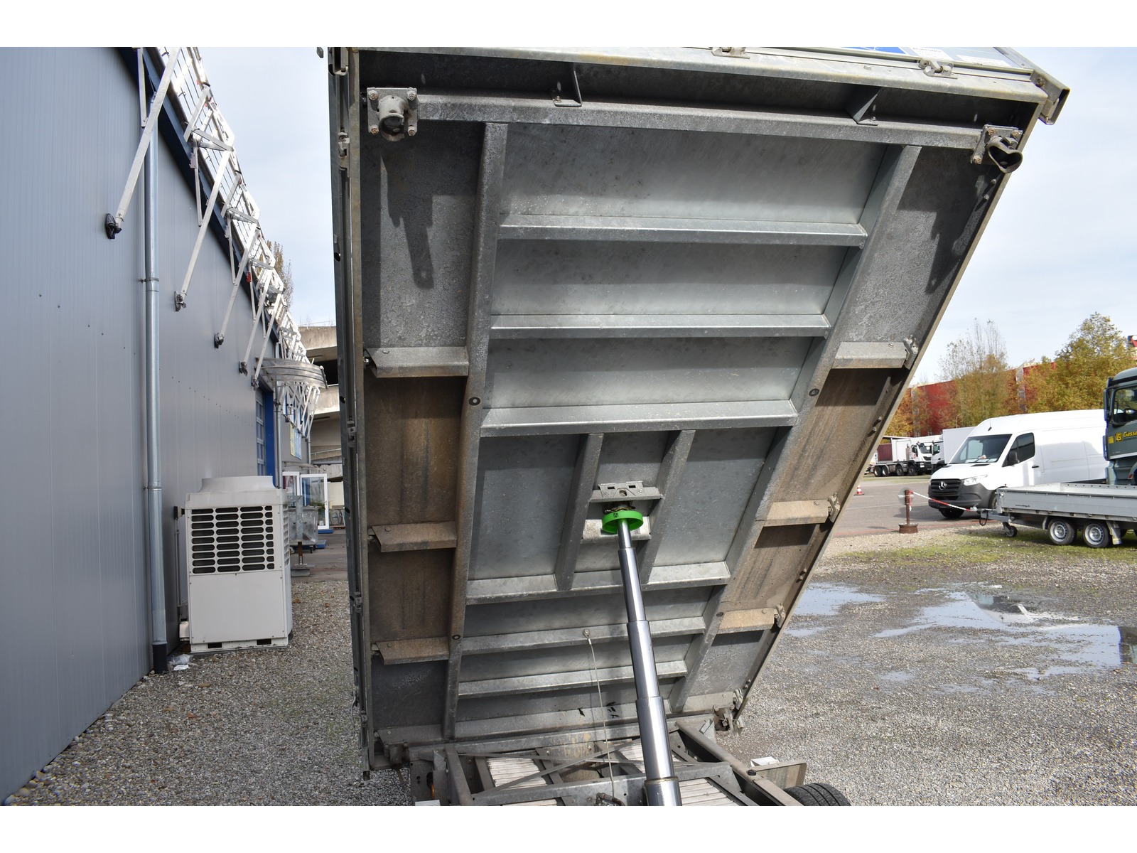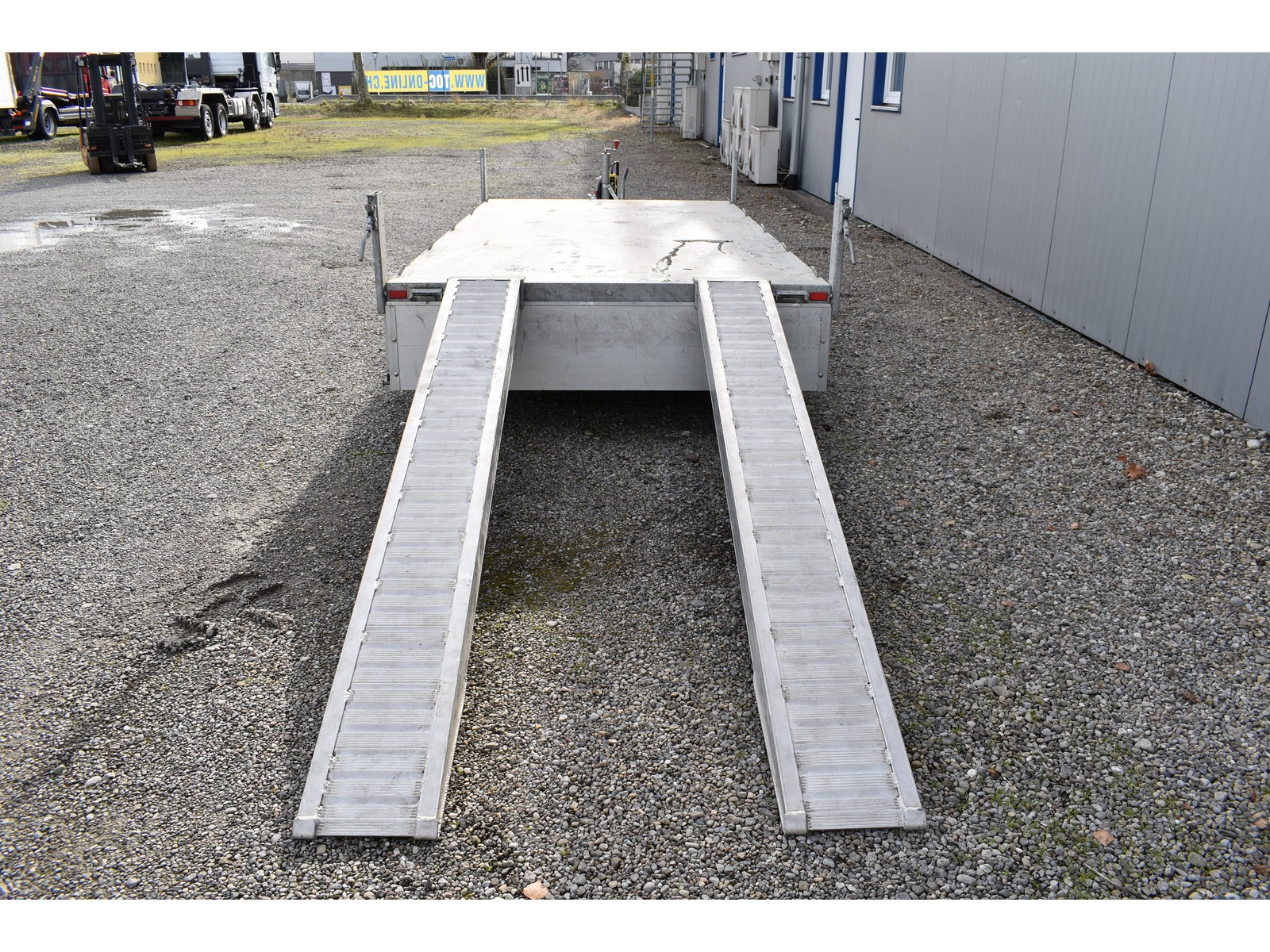 2 Alu-Auffahrrampen 2'560x280 mm, Tragkraft bei Achsabstand 1m=2'600kg und bei 1.5m =2'850kg, Einschubfach für Auffahrrampen, elektrische Pumpe mit Nothandpumpe, Ladeleitung für Batterie, Abstellstützen am Heck, Aluboden, Alu-Seitenläden 350 mm abklappbar, Binderinge seitlich versenkbar, Heckladen pendelnd oder abklappbar