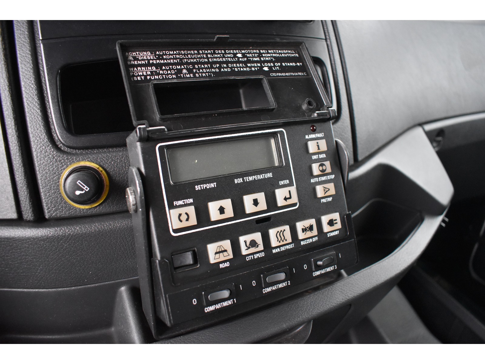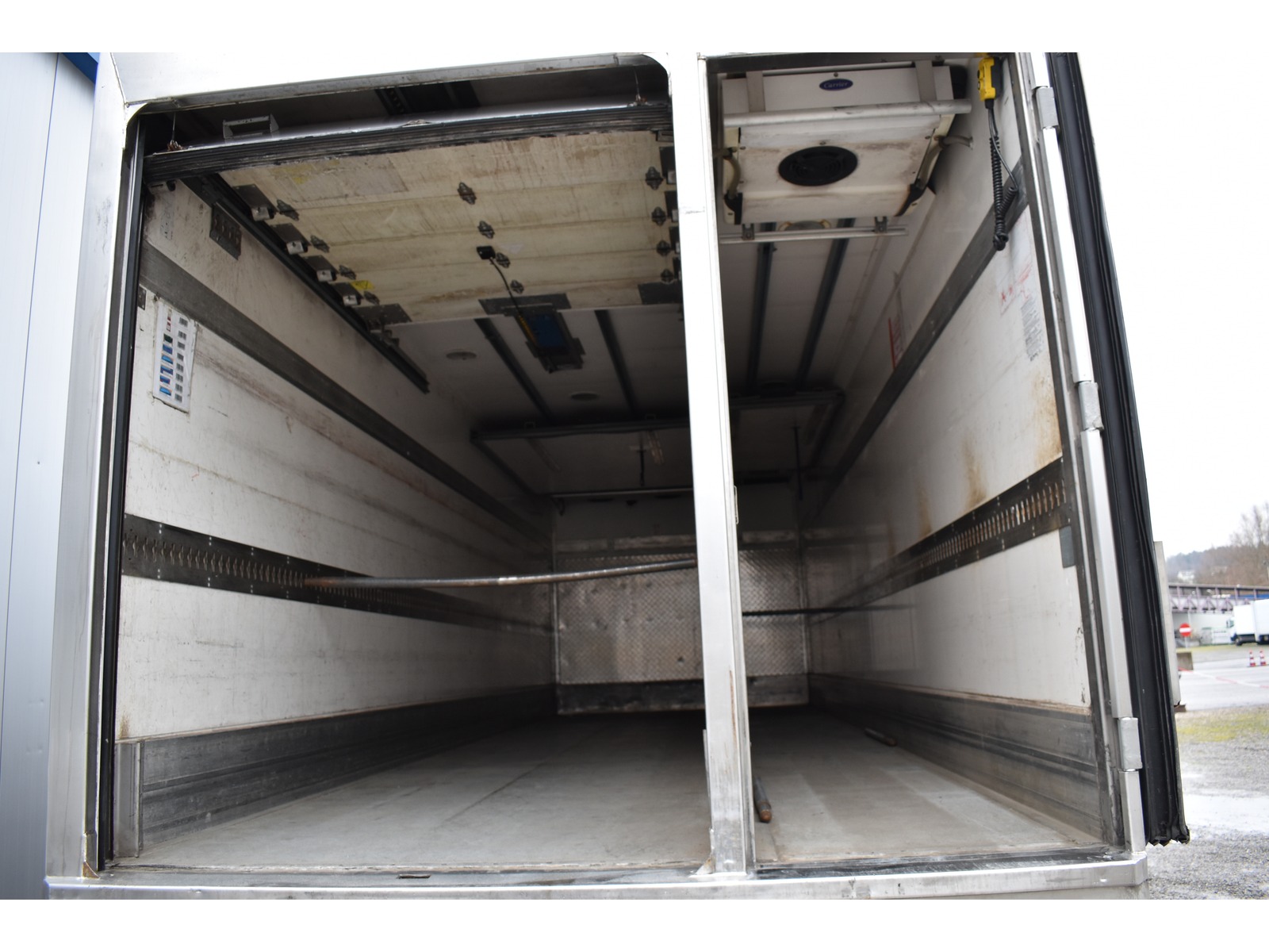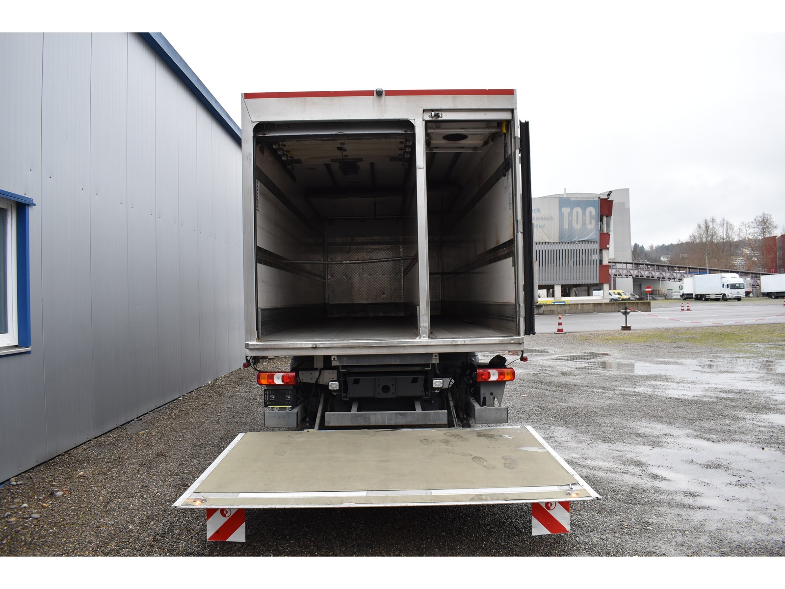 8-Gang Powershift Getriebe ClassicSpace-Kabine Radstand 5'360 mm längs verschiebbare Trennwand in der kleinen Zone 2-Zonen-Tiefkühlkasten mit 2 Verdampfern und verschiebbarer Trennwand Anfahrassistent Digital-Tacho je 1 Zurrschiene seitlich Klimaanlage Kühlaggregat Carrier Supra 950 MT mit Diesel- und/oder Netzbetrieb Kunststoffboden Ladebordwand Dautel mit 1'500 kg Tragkraft Ladebordwand-Blatt 1'800 mm mit Anti-Rutsch Belag und Funkfernbedienung Luftfederung Hinterachse Multifunktionslenkrad Rolltor links zusätzlich 1 Flügeltüre rechts Rückfahrkamera Sitzheizung