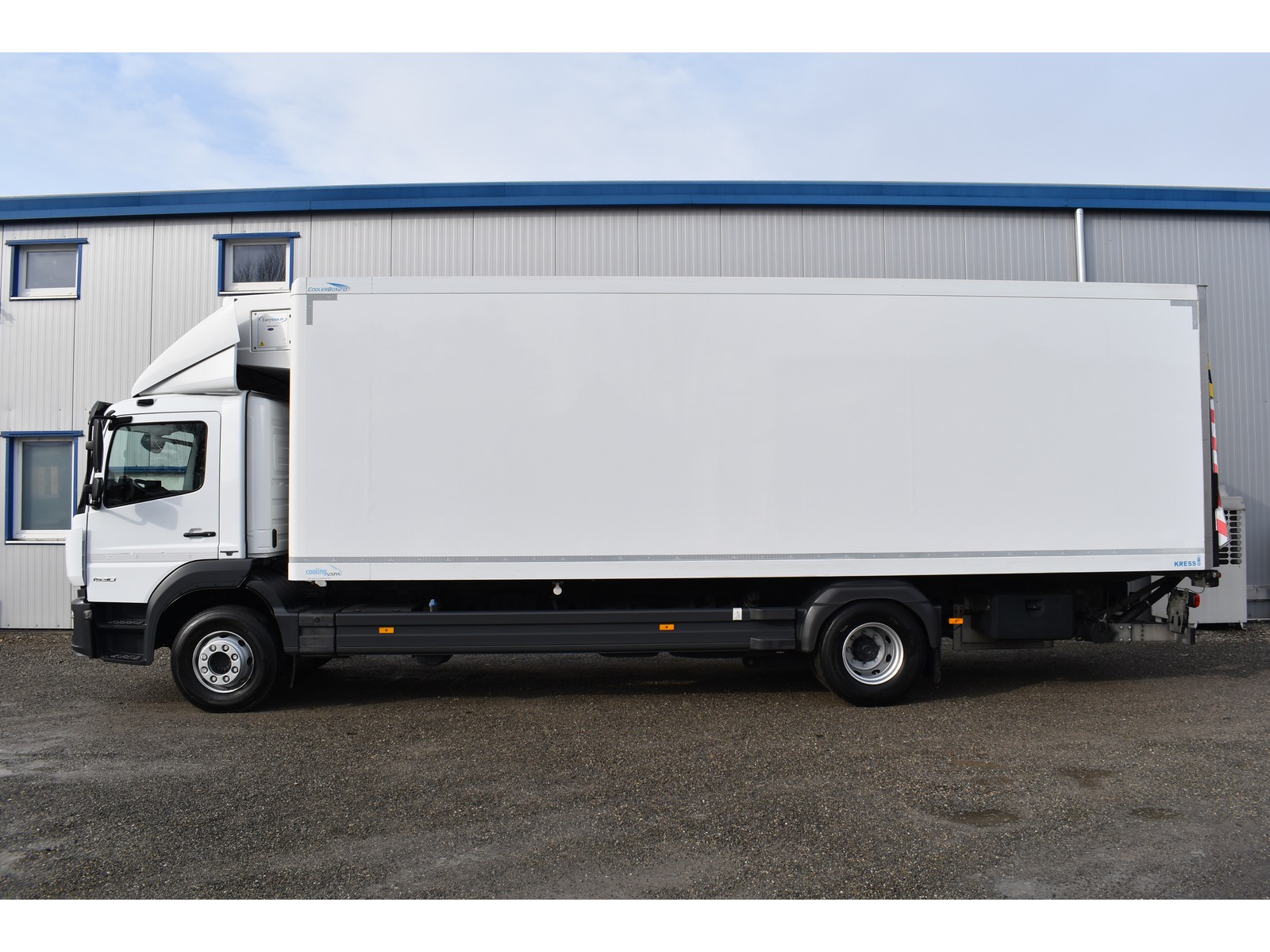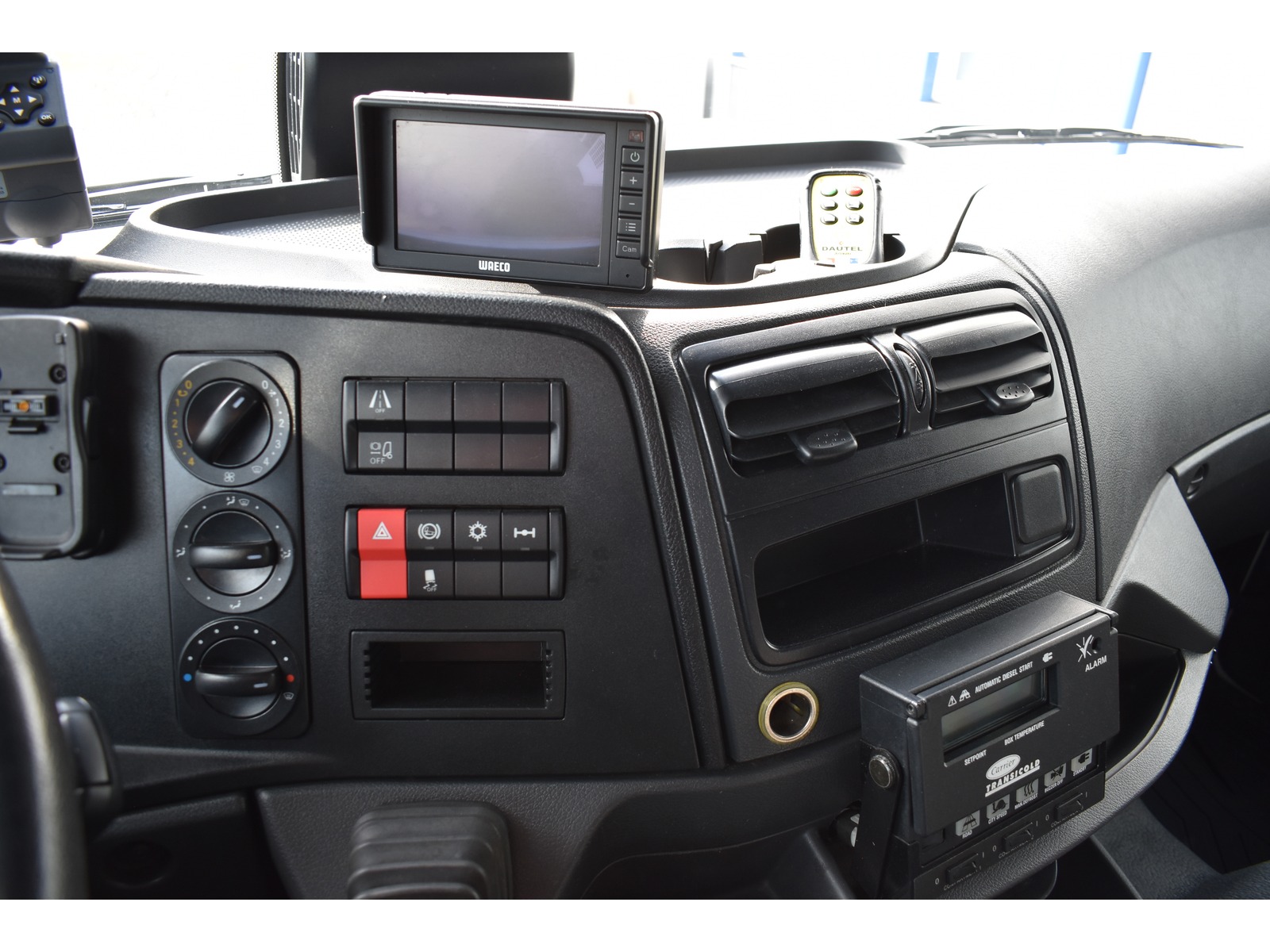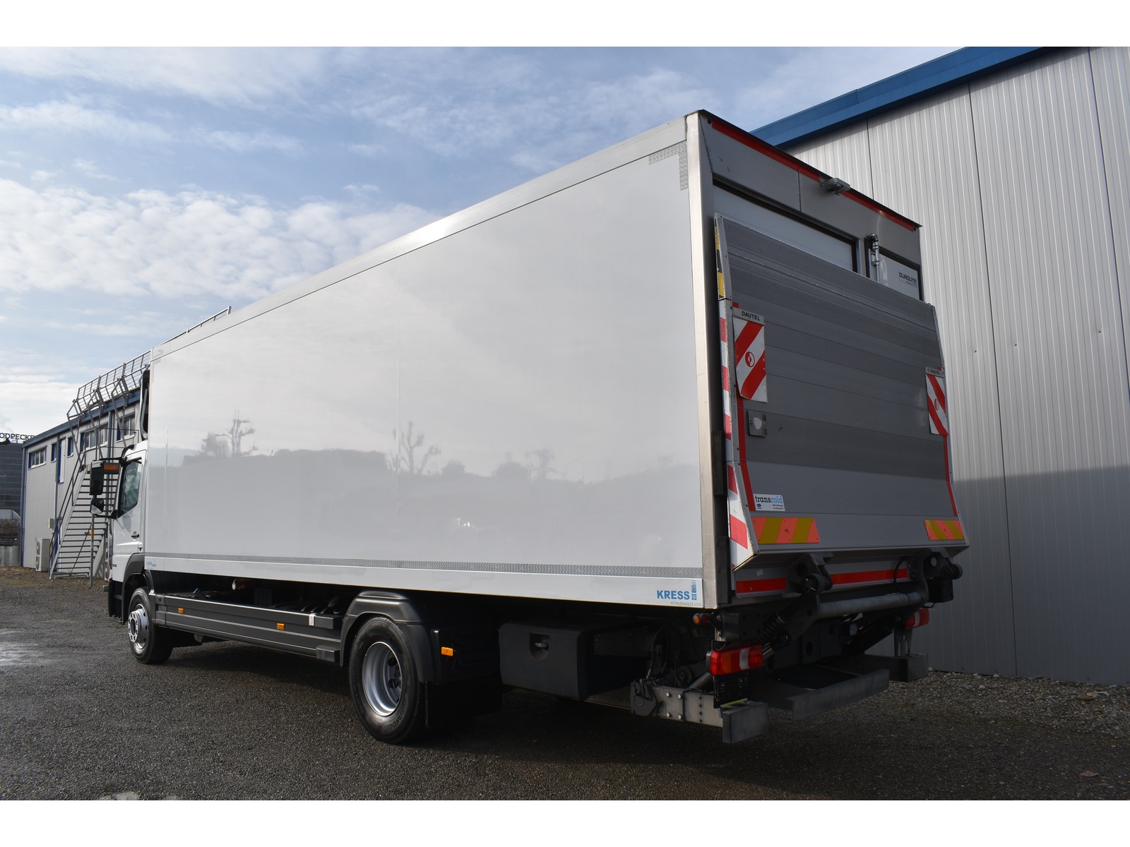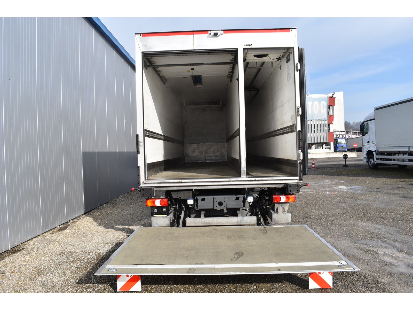 8-Gang Powershift Getriebe ClassicSpace-Kabine Radstand 5'360 mm längs verschiebbare Trennwand in der kleinen Zone 2-Zonen-Tiefkühlkasten mit 2 Verdampfern und verschiebbarer Trennwand Anfahrassistent Digital-Tacho je 1 Zurrschiene seitlich Klimaanlage Kühlaggregat Carrier Supra 950 MT mit Diesel- und/oder Netzbetrieb Kunststoffboden Ladebordwand Dautel mit 1'500 kg Tragkraft Ladebordwand-Blatt 1'800 mm mit Anti-Rutsch Belag und Funkfernbedienung Luftfederung Hinterachse Multifunktionslenkrad Rolltor links zusätzlich 1 Flügeltüre rechts Rückfahrkamera Sitzheizung