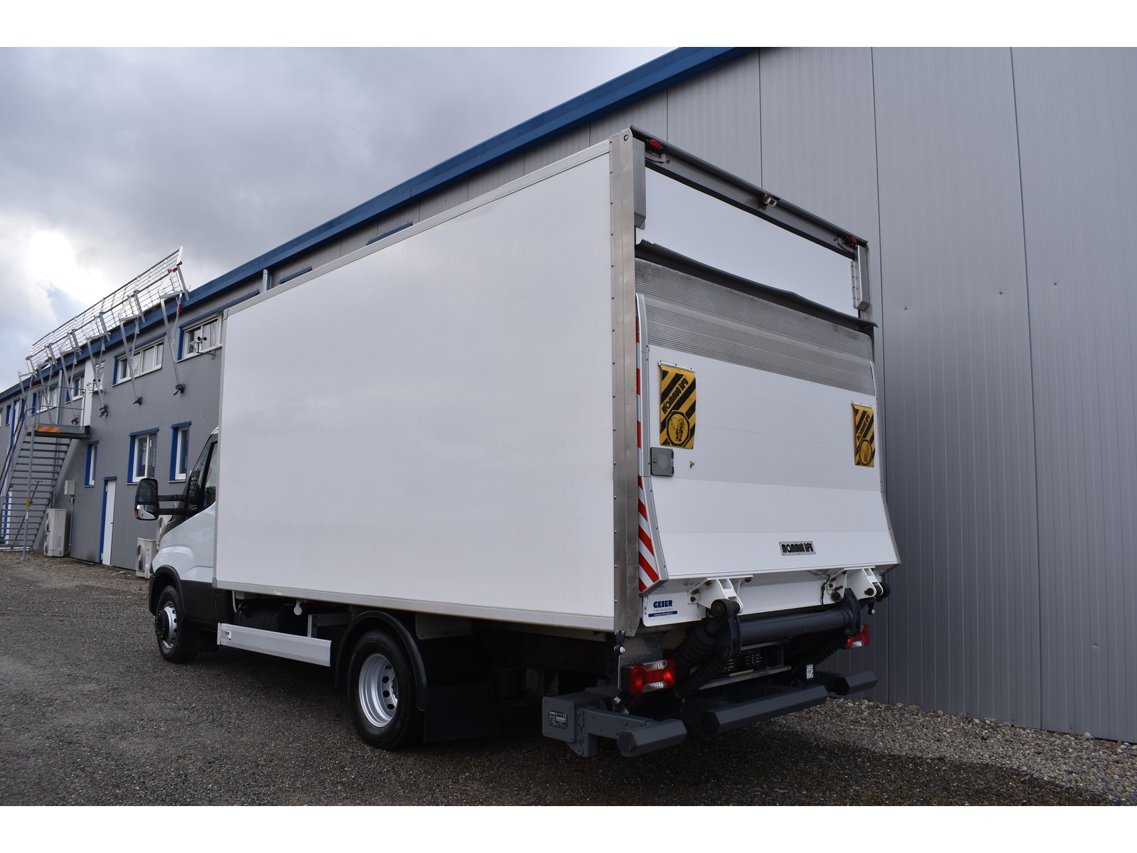 Kühlgerät, Hebebühne, Navigationssystem, Standheizung, Klima, Automatikgetriebe Radstand 3'750 mm 3 Sitze vorne Airbag Fahrer Doppelbereifung HA Klimaautomatik Kühlaggregat Carrier Pulsor 500 Kunststoffboden Ladebordwand Mammut mit 1'500 kg Tragkraft Ladebordwand-Blatt 1'400 mm mit Funkfernbedienung Luftfederung Hinterachse Multifunktionslenkrad Navigationssystem Radio Media mit Bluetooth Rückfahrkamera Seitentüre Standheizung Werkzeugkiste Zurrschienen