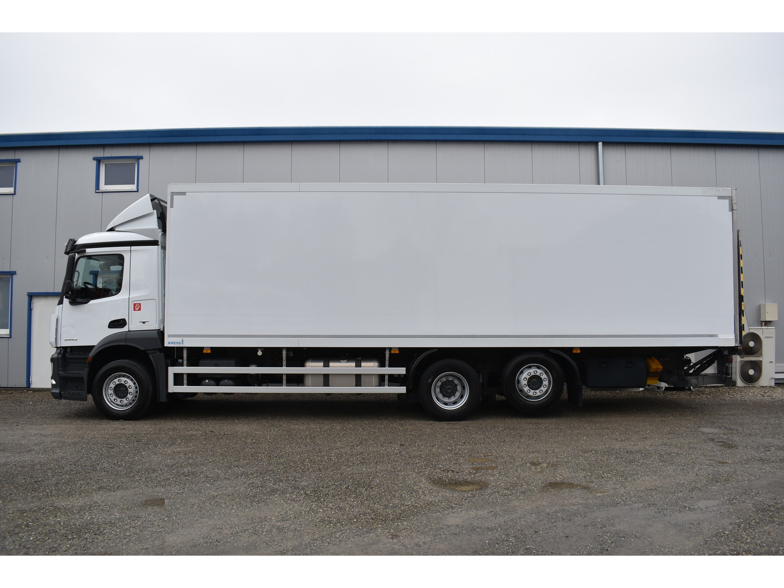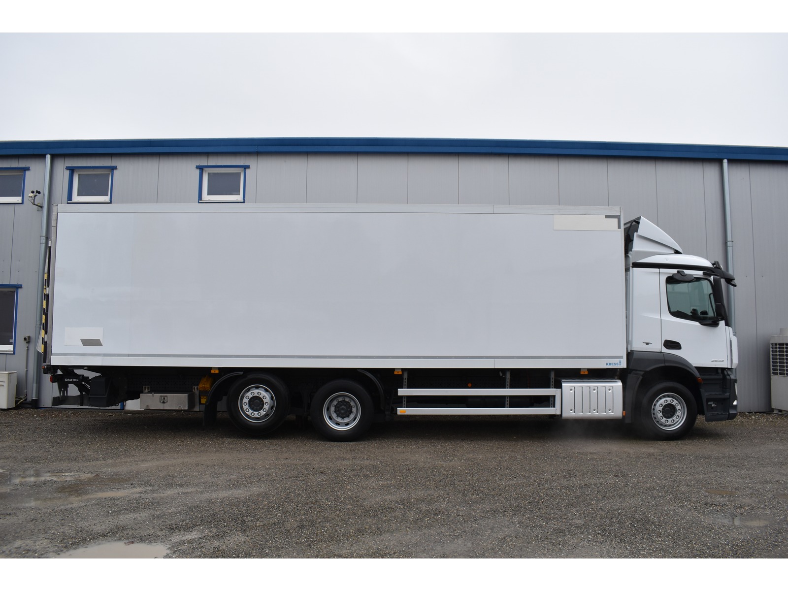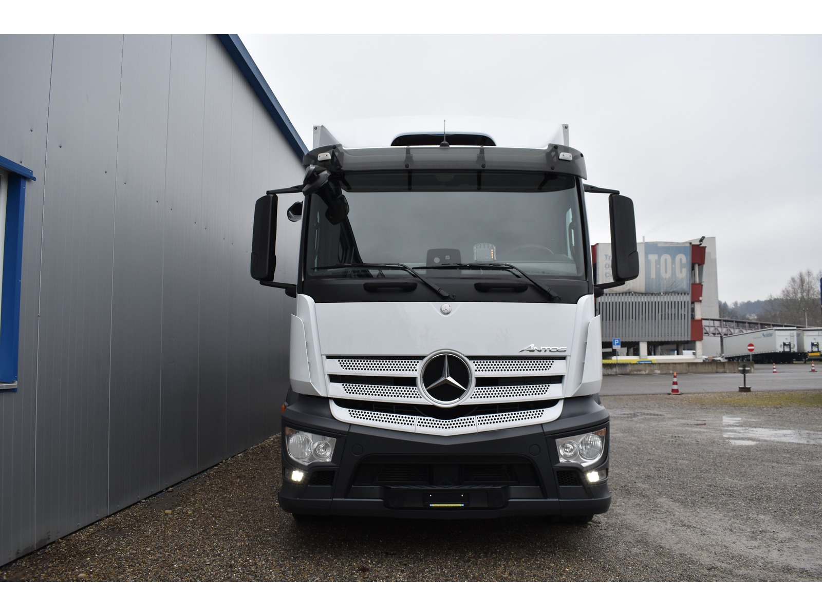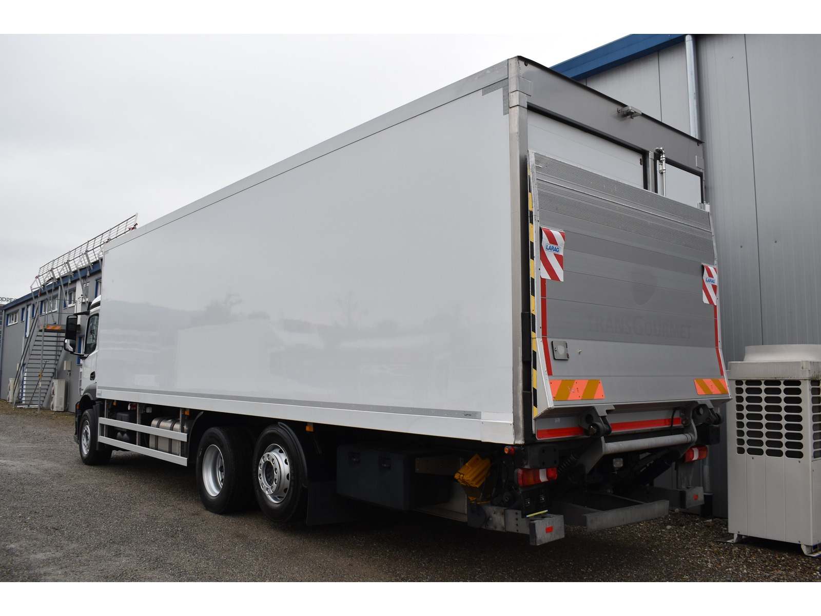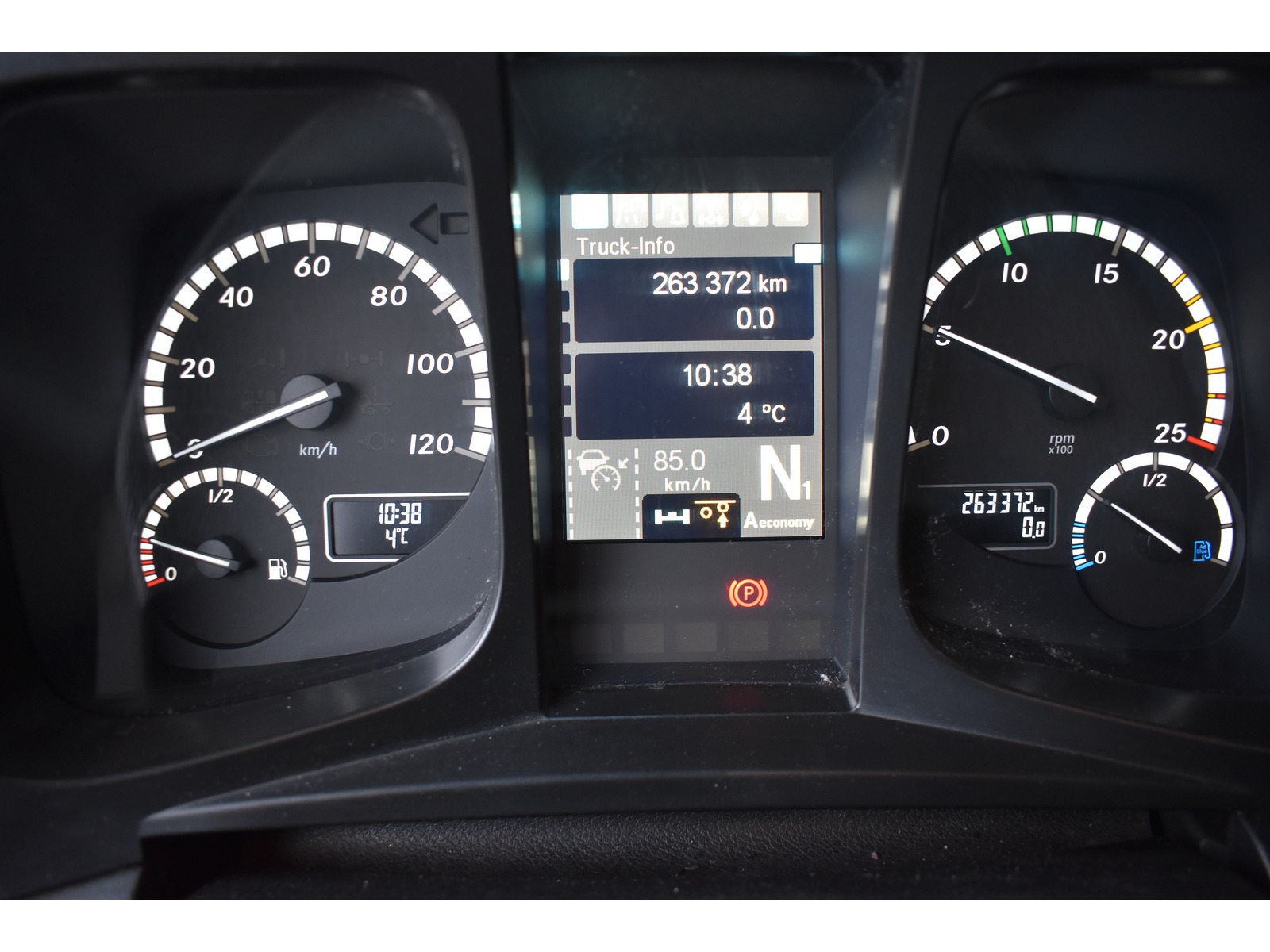 Retarder/Intarder, Kühlgerät, Hebebühne, Klima, Tempomat, 12-Gang Powershift Getriebe ClassicSpace-Kabine Radstand 5'200 mm längs verschiebbare Trennwand in der kleinen Zone Abstandsregeltempomat Anfahrassistent je 1 Zurrschiene seitlich Klimaanlage Kühlaggregat Carrier Supra 1'250 Mt Diesel- und Netzbetrieb Kunststoffboden Ladebordwand Dautel mit 1'500 kg Tragkraft Ladebordwand-Blatt 1'800 mm Luftfederung Hinterachse Multifunktionslenkrad Nachlaufachse liftbar-gelenkt Retarder Rolltor links pneumatisch öffnend zusätzlich 1 Flügeltüre rechts Rückfahrkamera Sitzheizung Spurassistent Wandstärke 50 mm Werkzeugkiste