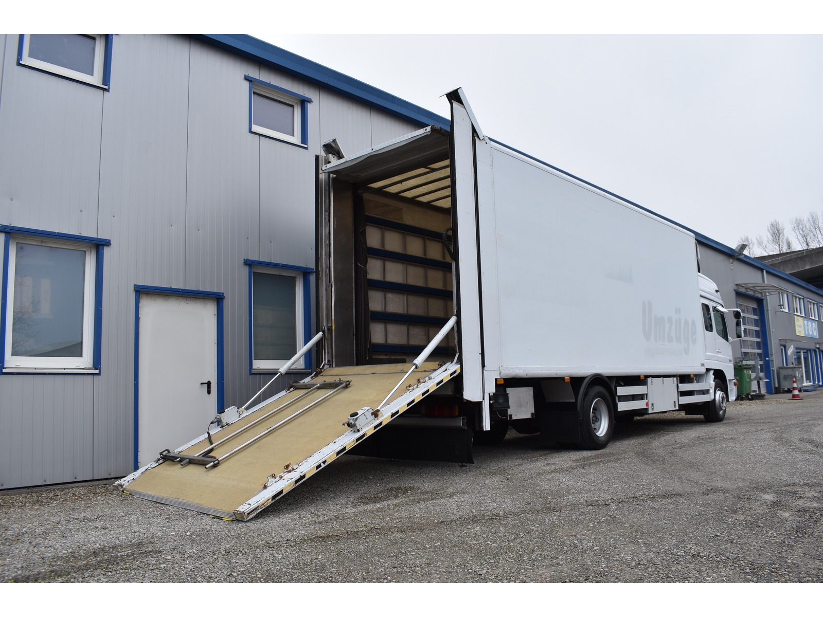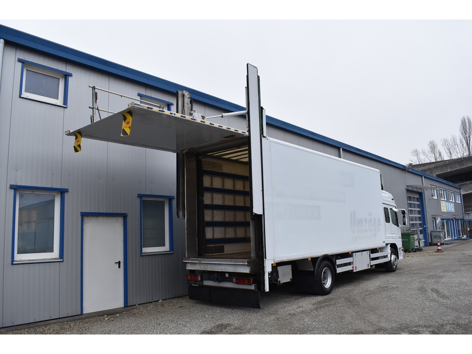 | Zubehör | El. Fensterheber, Standheizung, Anhängerkupplung, Hebebühne, 12-Gang Schaltgetriebe Radstand 5'360 mm Doppelkabine mit 6 Sitzplätzen analoger Tachograph Anhängerkupplung mit 3'500 kg Anhängelast elekt. Glas-Schiebe-Hebedach Holzfussboden Ladebordwand Dhollandia mit 1'500kg Tragkraft + 2 hydraulische Abstützungen + Lift-Funktion Ladebordwand-Blatt 2'800 mm Luftfederung Hinterachse Motorbremse Scheibenbremsen Standheizung Teppich-Holz Leisten, Werkzeugkiste, Zentralverriegelung |