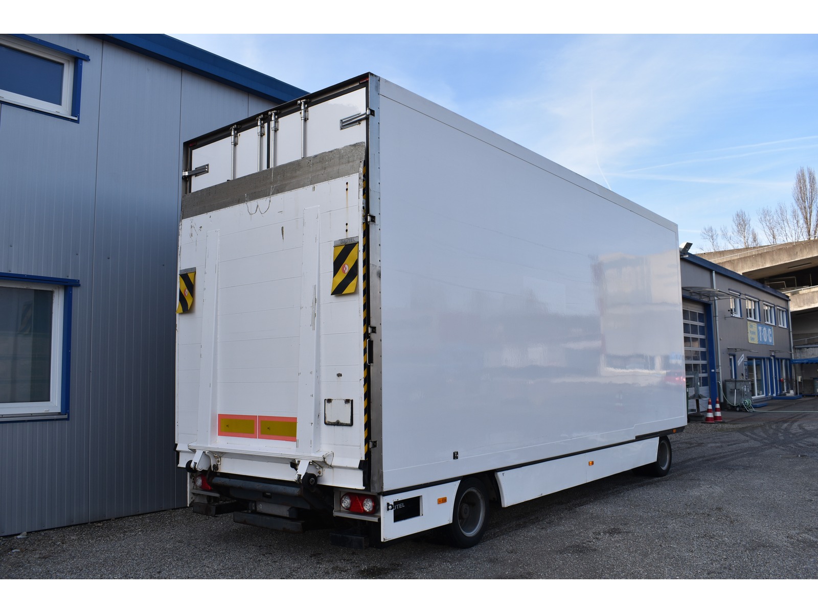 | Zubehör | Deichsel verstellbar Doppelbereifung EG-Bremsanschlüsse Heckflügeltüren Kühlaggregat Thermoking SL-100 Kunststoffboden Ladebordwand Dautel mit 1'750 kg Tragkraft Ladebordwand-Blatt 2'500 mm Vollluftfederung Werkzeugkiste Zurrschienen |