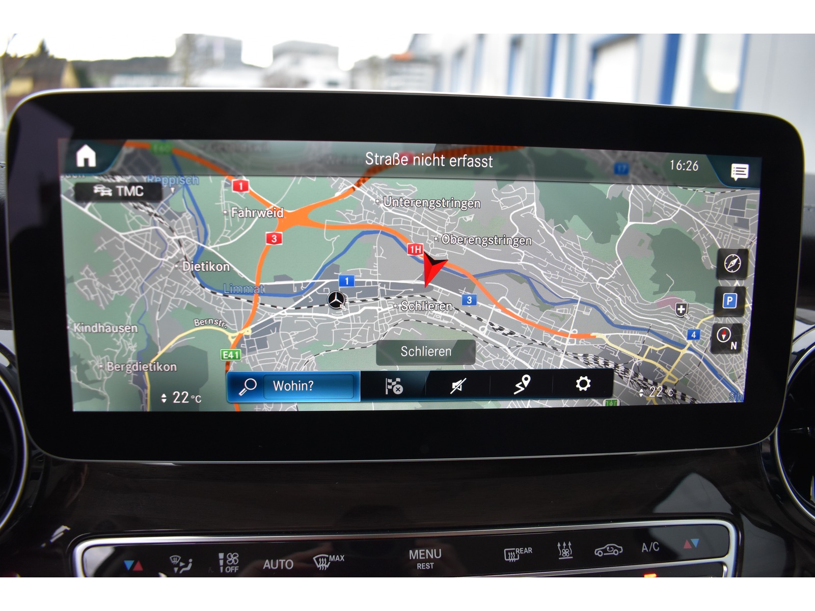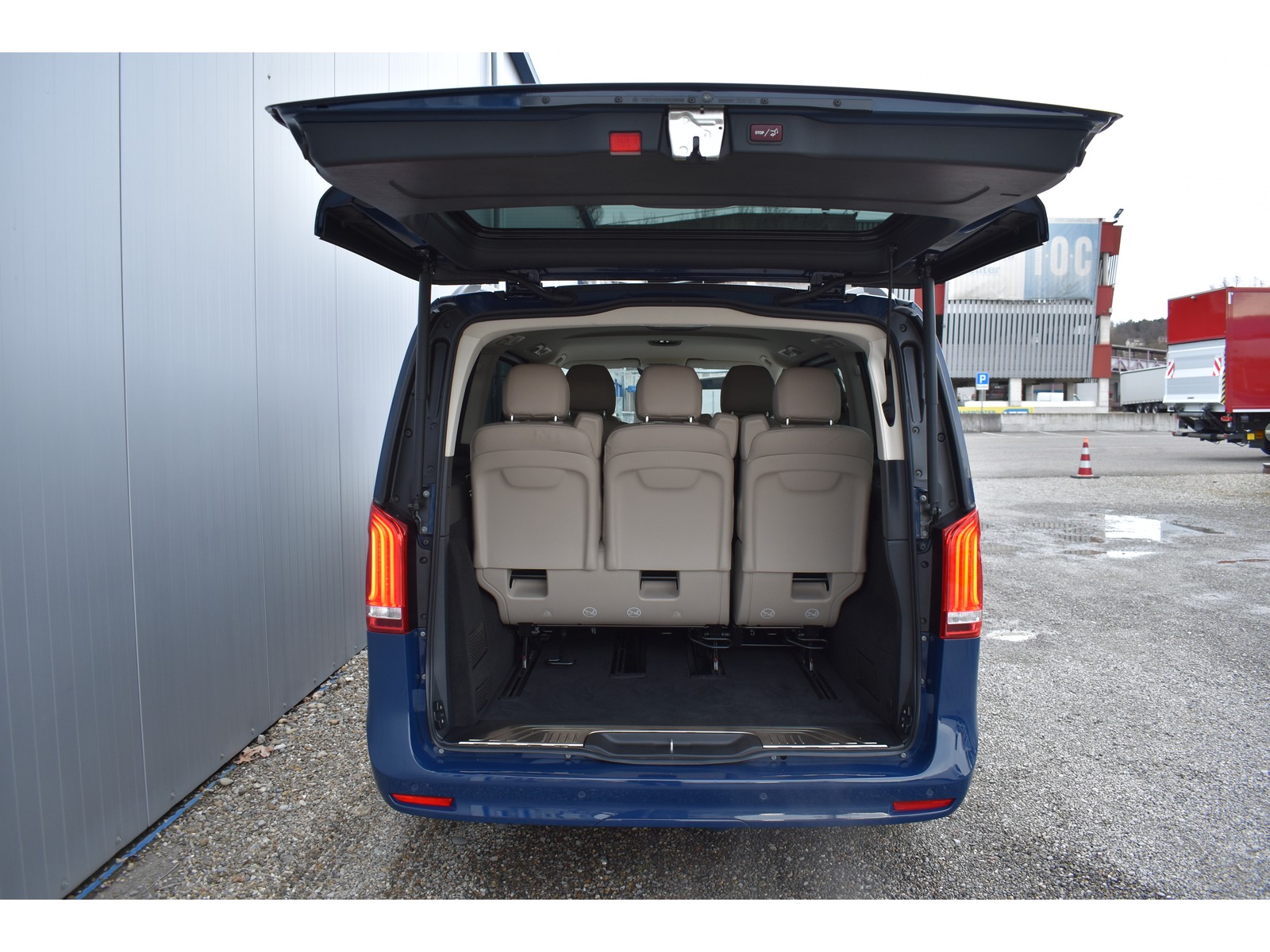 El. Fensterheber, El. Aussenspiegel, Zentralverriegelung, Tempomat, Multifunktionsanzeige, ABS, Klima, Standheizung, Navigationssystem, Traktionskontrolle, Anhängerkupplung, Dieselpartikelfilter, - LED-Scheinwerfer - 360°-Kamera - Burmester Soundsystem - Tisch im Fond wegklappbar - 7 Sitzplätze - 2 Einzelsitze 1.Sitzreihe und 3er Sitzbank in der 2.Sitzreihe - Abstandsregeltempomat Distronic Plus - Anhängerkupplung abnehmbar mit 2'500 kg Anhängelast - Beifahrersitz mit Sitzheizung/Sitzklimatisierung und Memory-Funktion - Colorverglasung im Fond - Eco-Start-Stopp Funktion - Fahrersitz mit Sitzheizung/Sitzklimatisierung und Memory-Funktion - Heckklappe elektrisch mit seperat zu öffnender Heckscheibe - Klimaautomatik zusätzlich im Fond - Ledersitze Leder nappa beige - Licht- und Regensensor - Luftfederung - Multifunktionslenkrad - Navigationssystem - Radio Media mit Bluetooth (DAB) - Schiebetüre links und rechts elektrisch - Spurassistent - Standheizung - Zentralverriegelung Komfortschliessanlage mit Funkfernbedienung
